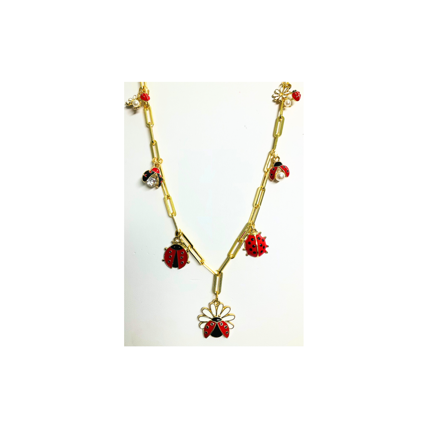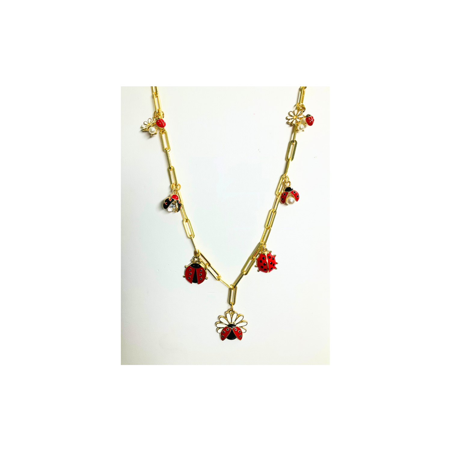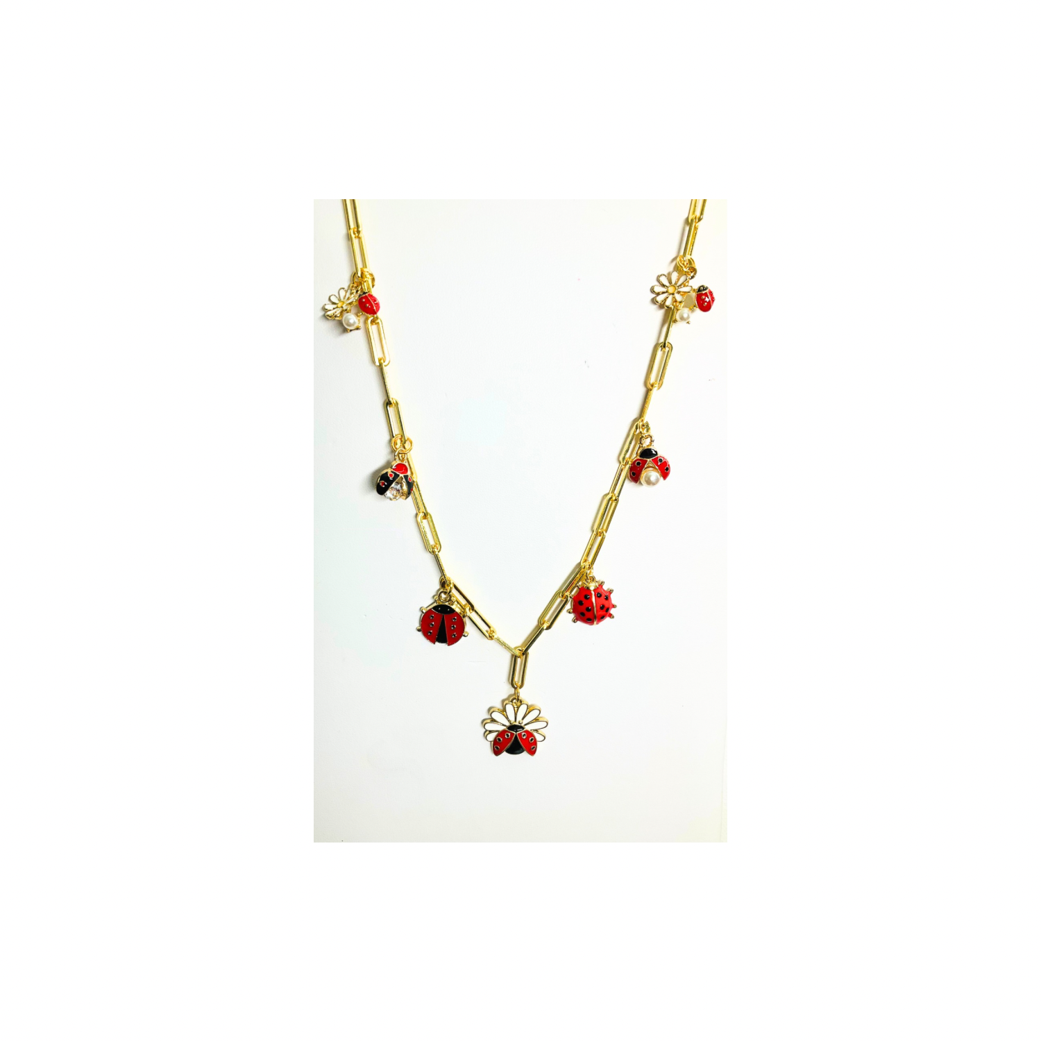 - Elegant Design: This necklace features a gold paperclip chain adorned with a ladybug charm. It includes red beads and floral accents, perfect for women. πΈ