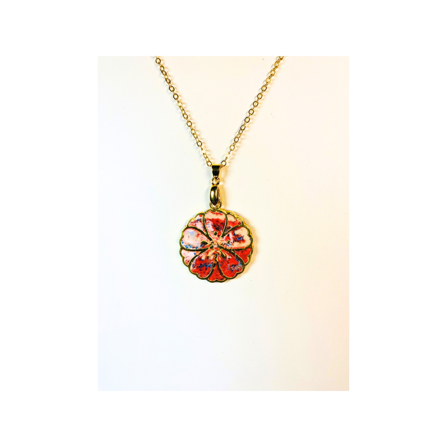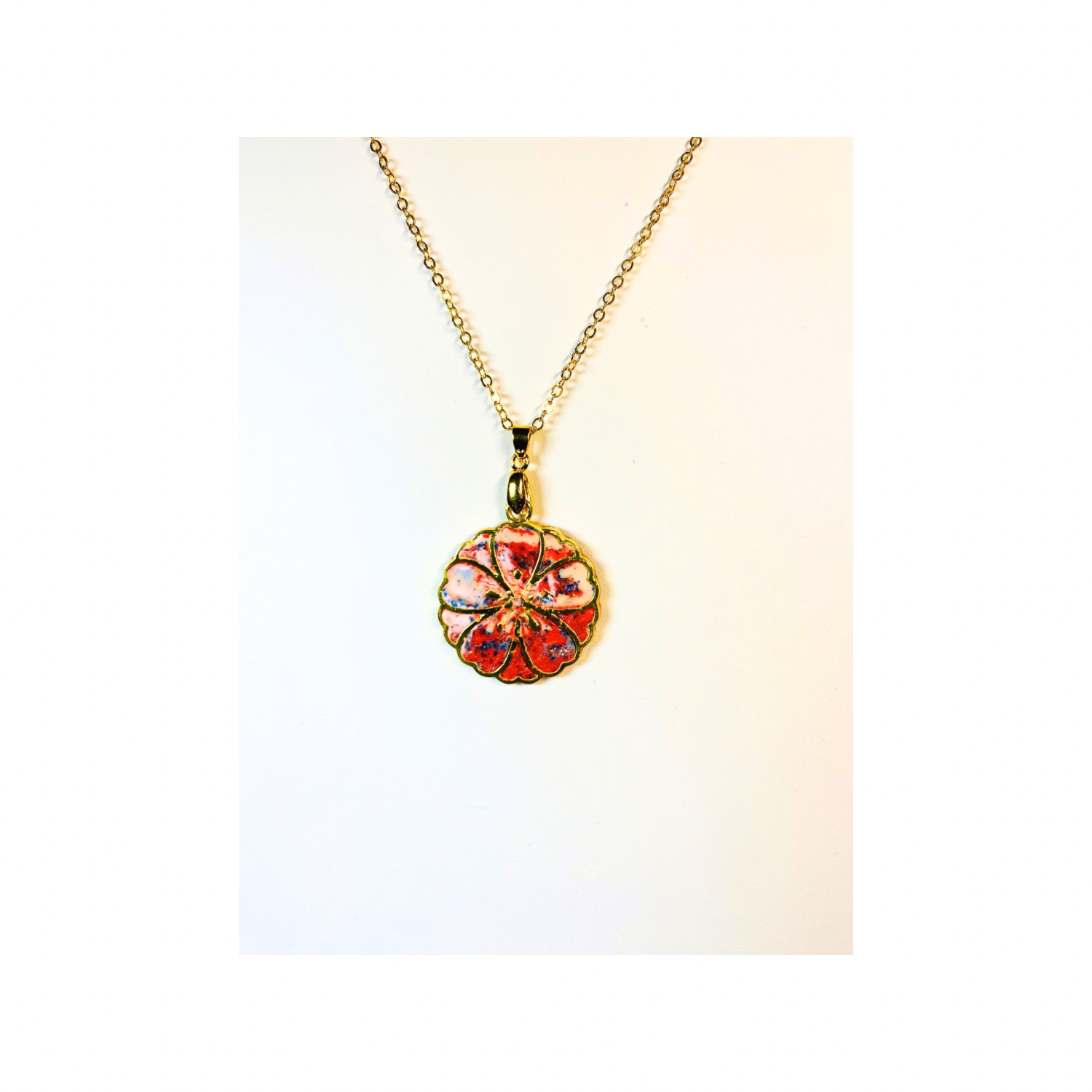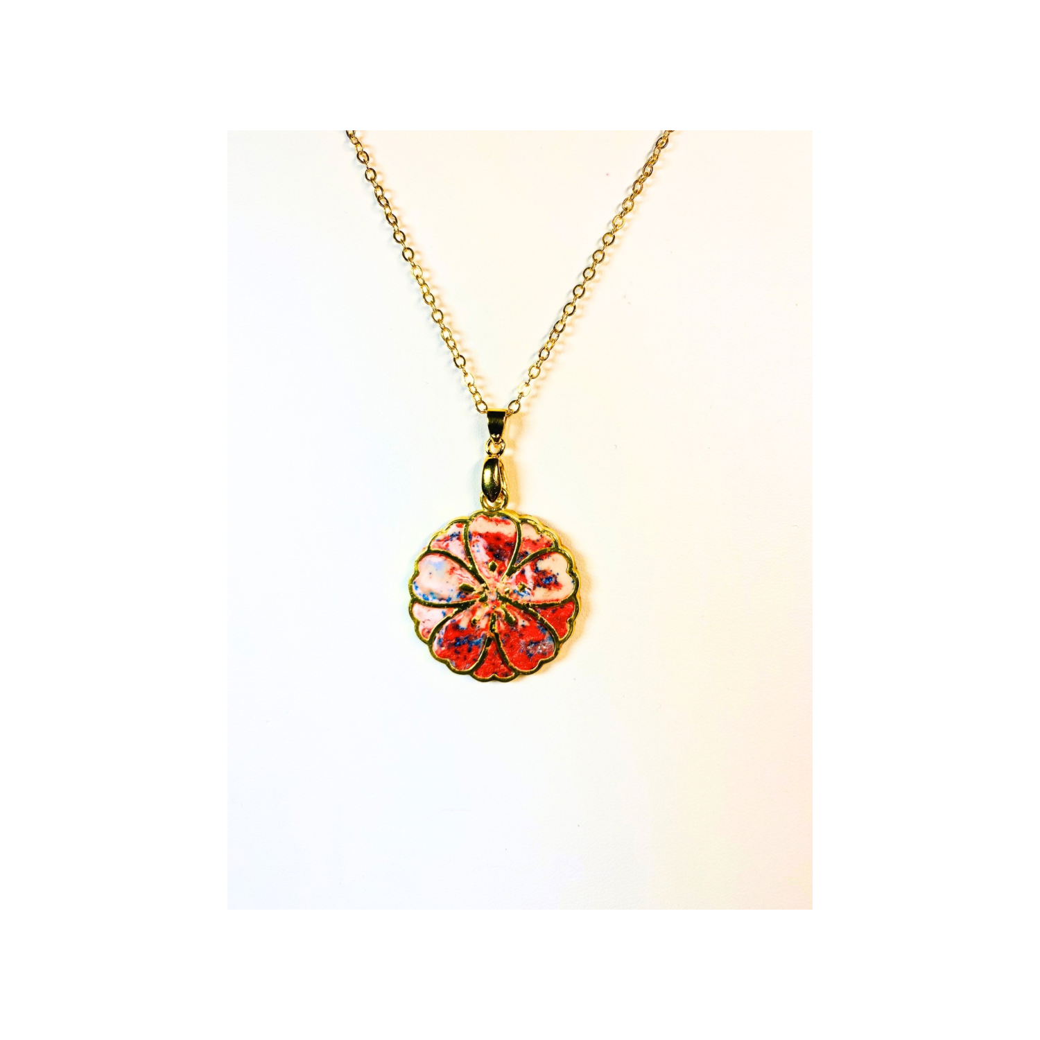 Gold Trimmed Flower Necklace with Blues and Pinks