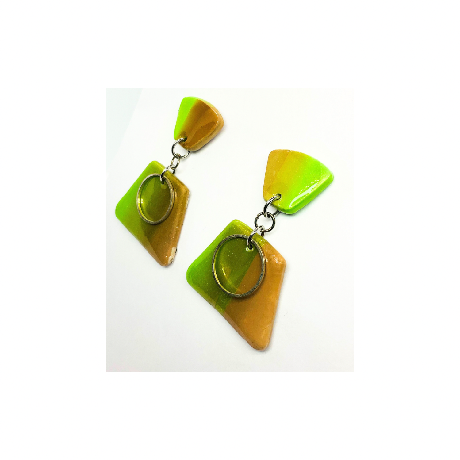 Elevate your accessory game with these exquisite Green and Brown Dangle Earrings, crafted from handmade polymer clay. Each pair features a unique combination of green and brown colors, making them stand out in your jewelry collection.