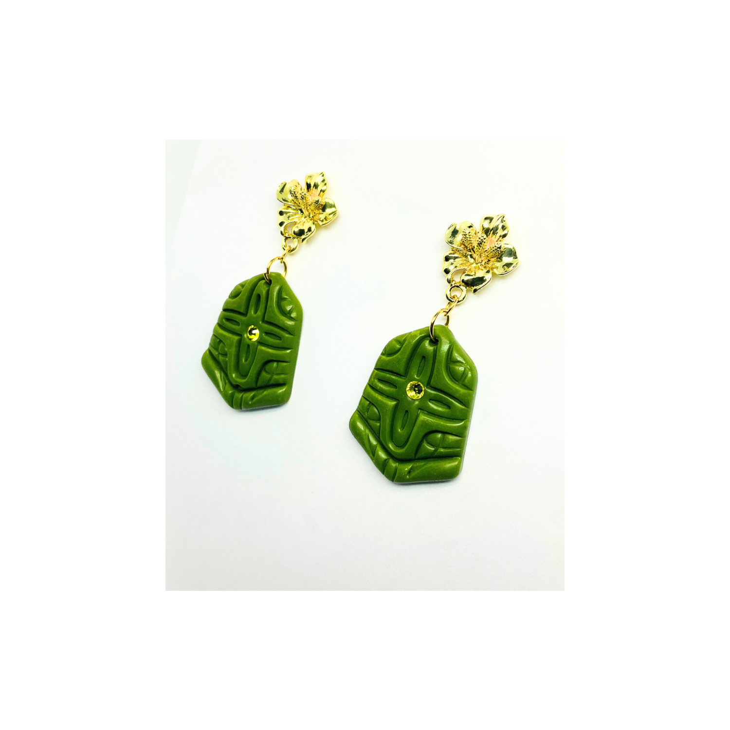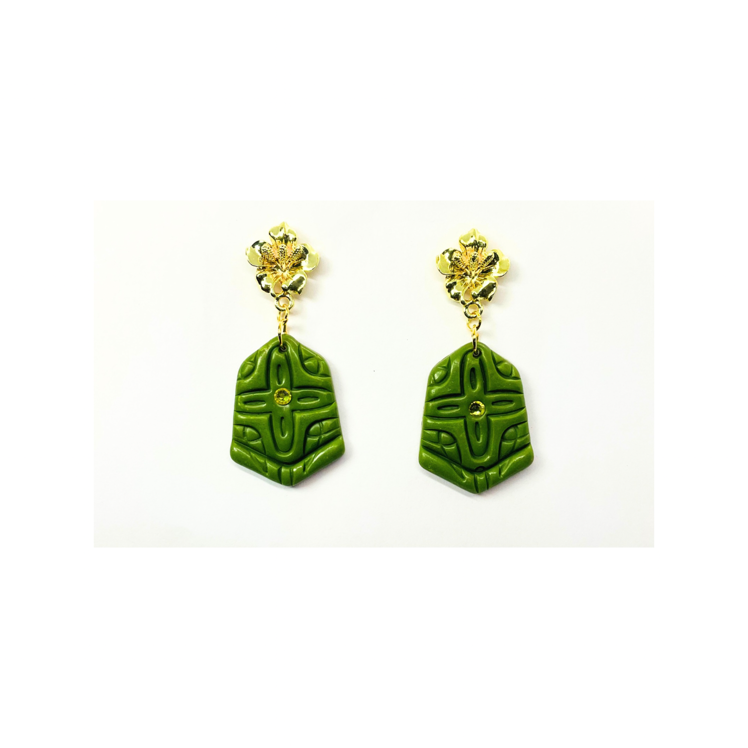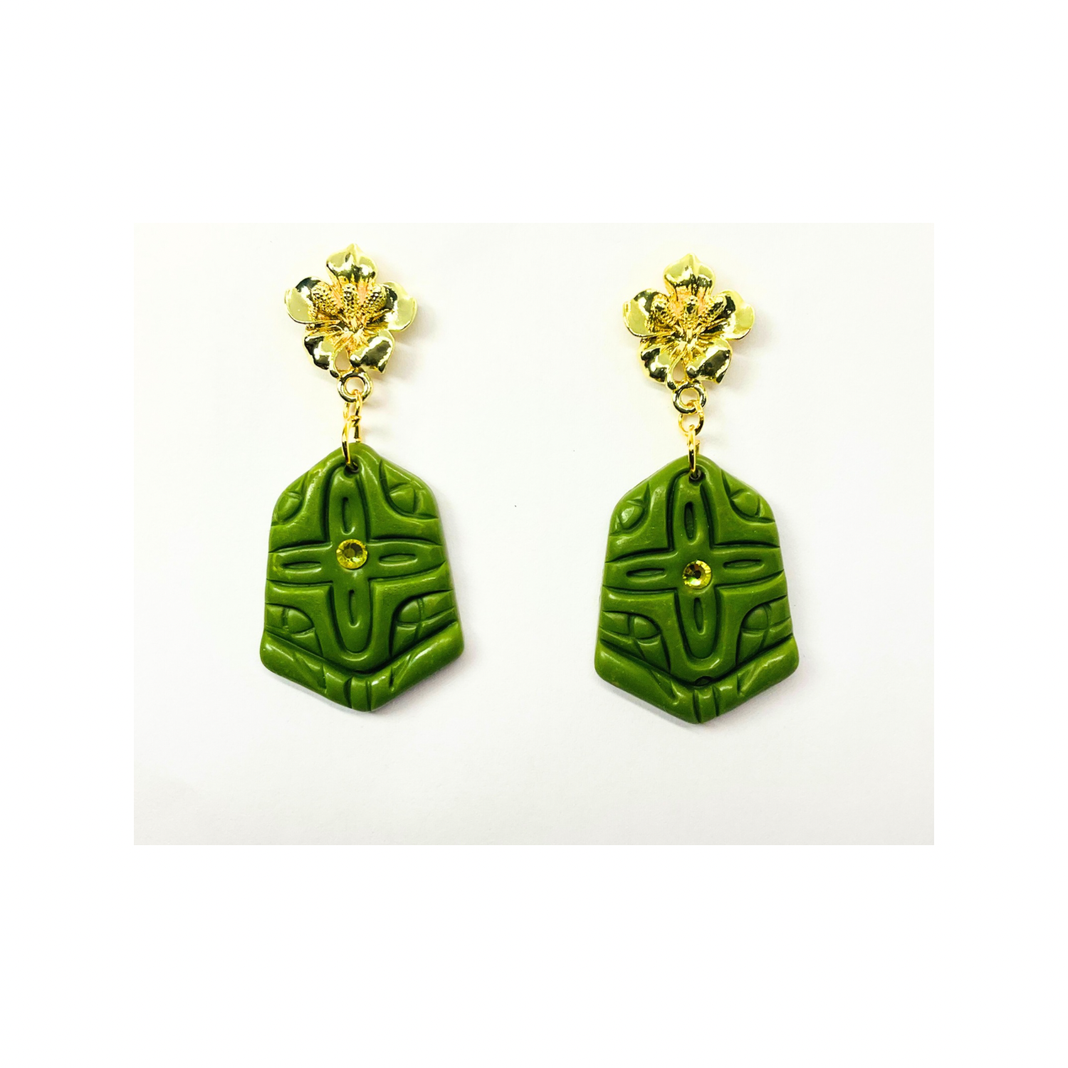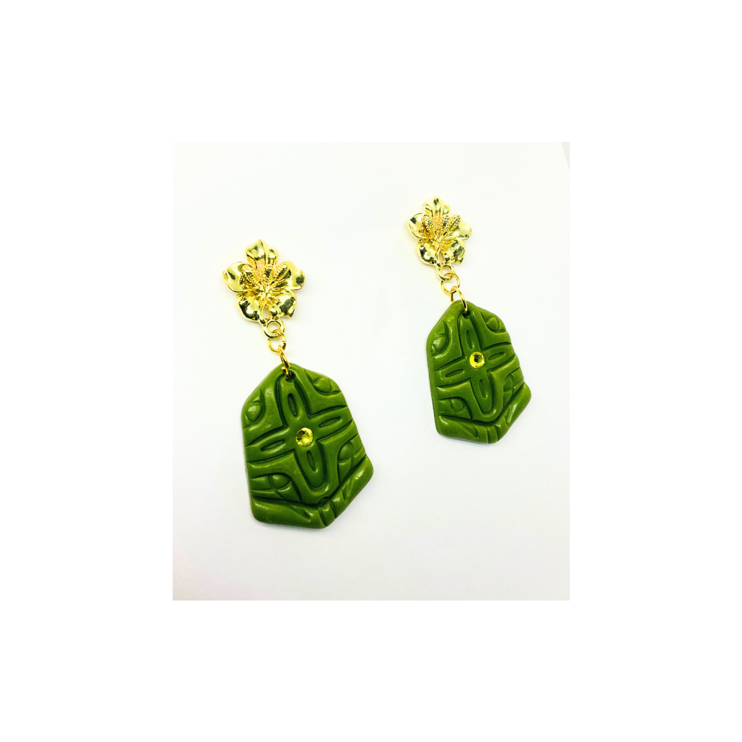 Elevate your accessory game with these stunning Green and Gold Stud Dangle earrings.