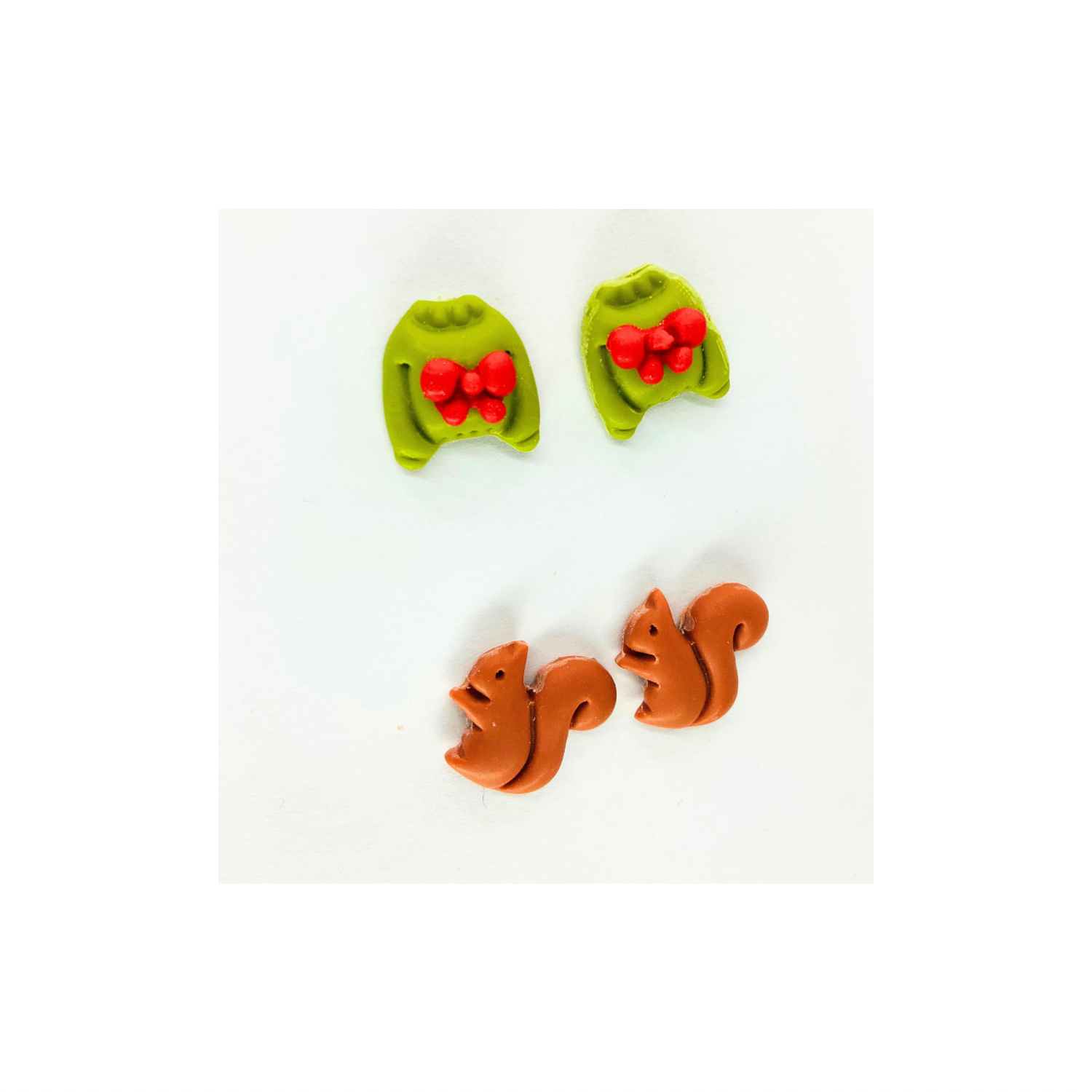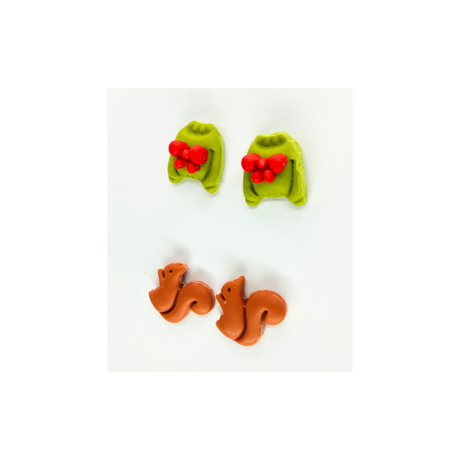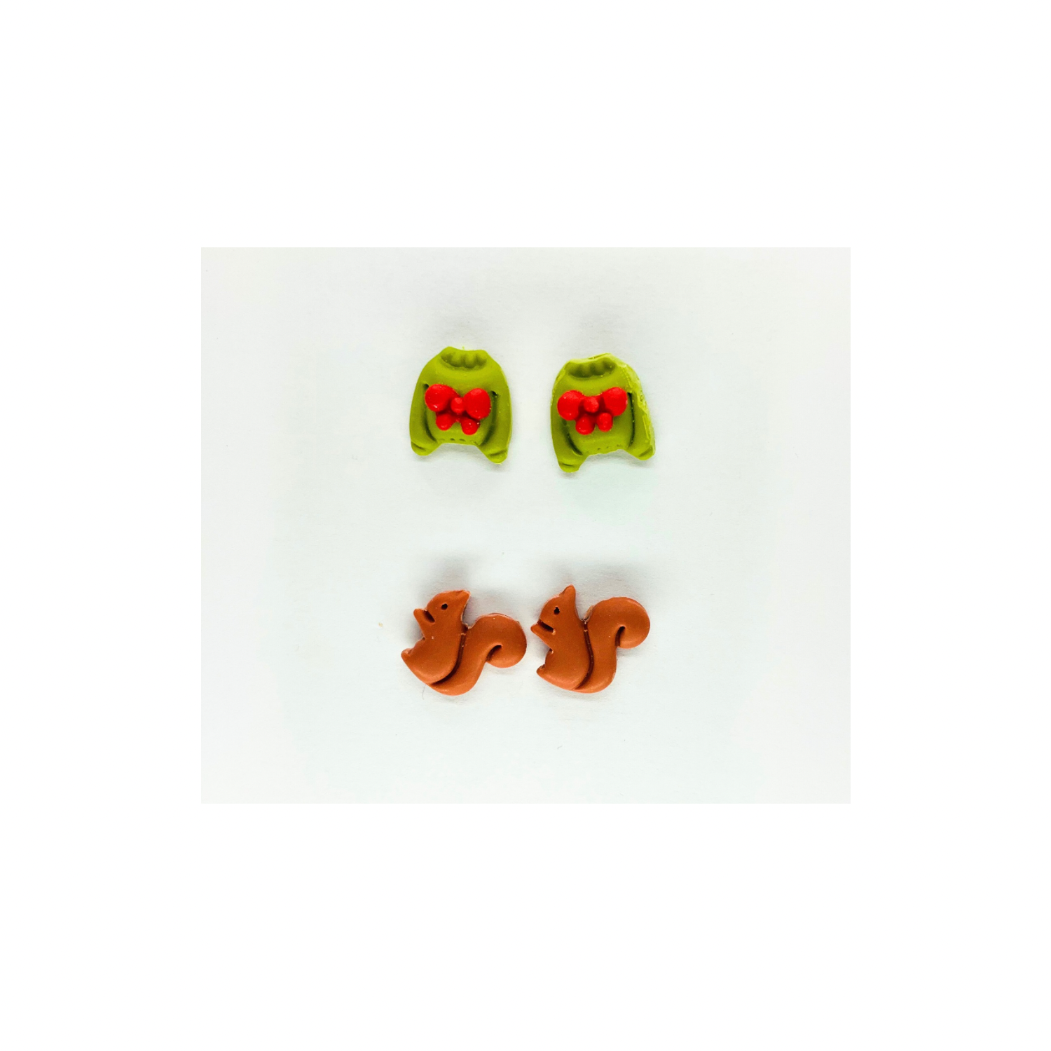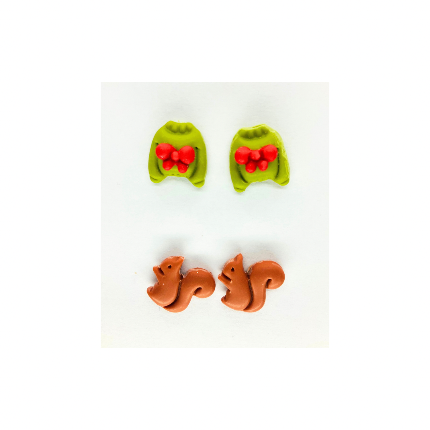 This product is designed for festive outfits. The green sweatshirt with the red bow and brown squirrel stud earrings creates a cohesive and festive look. It's an excellent choice for holiday parties and gatherings.