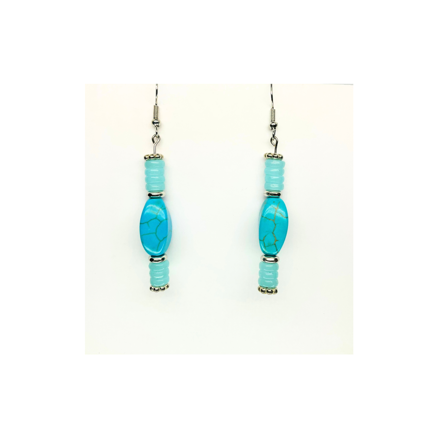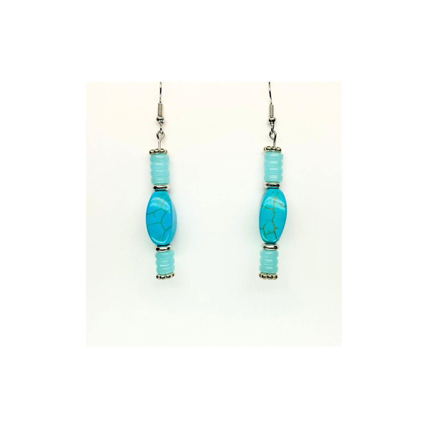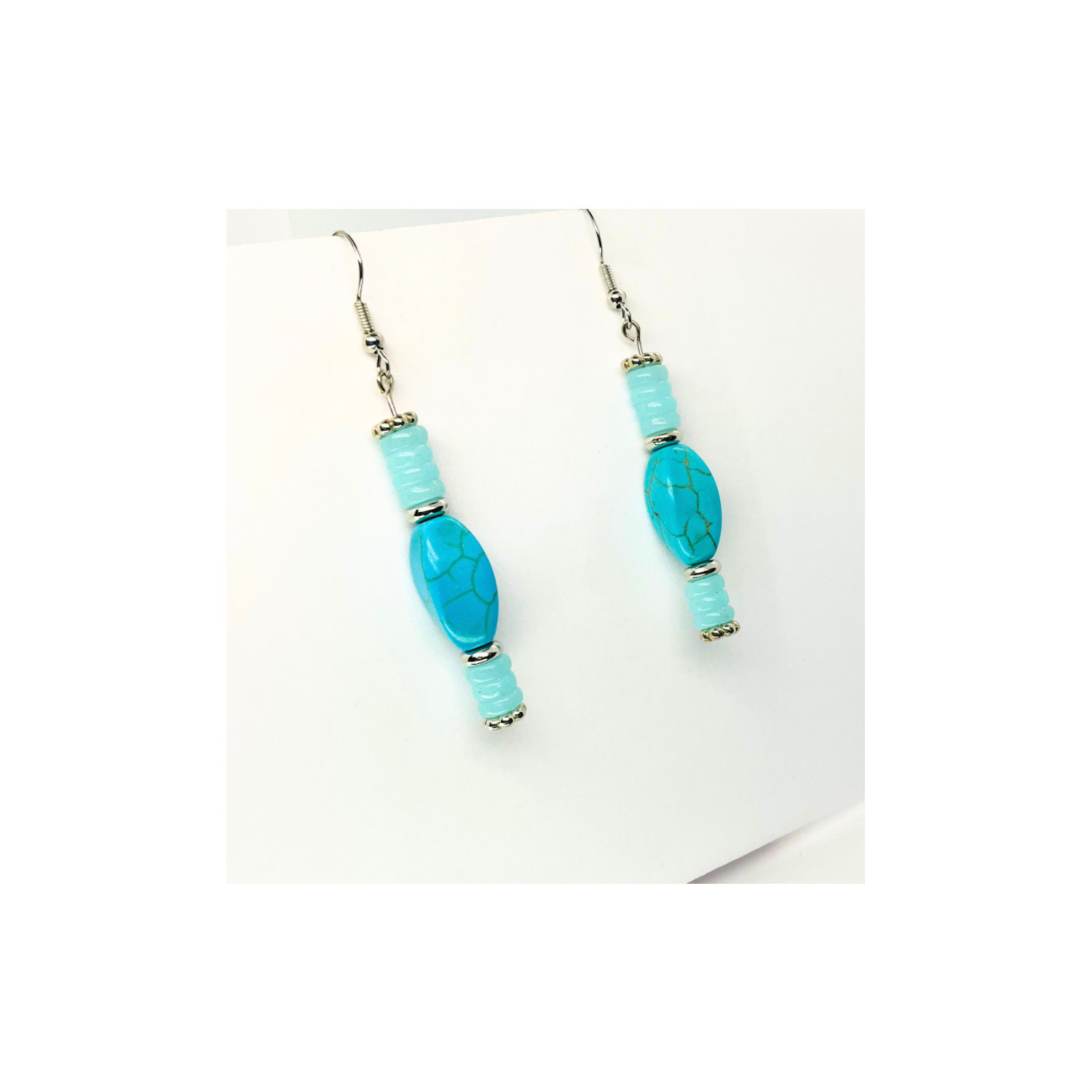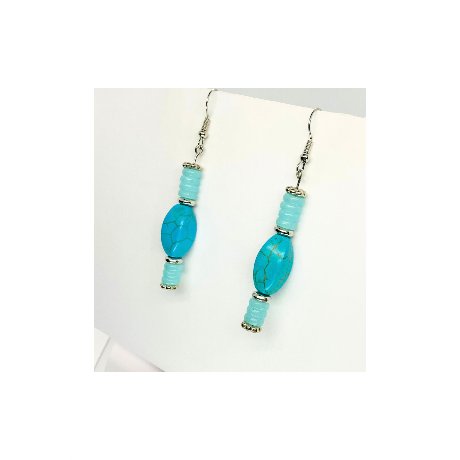 Howlite Turquoise Collection Dangle Earring - Light Blue Beaded Design Earrings