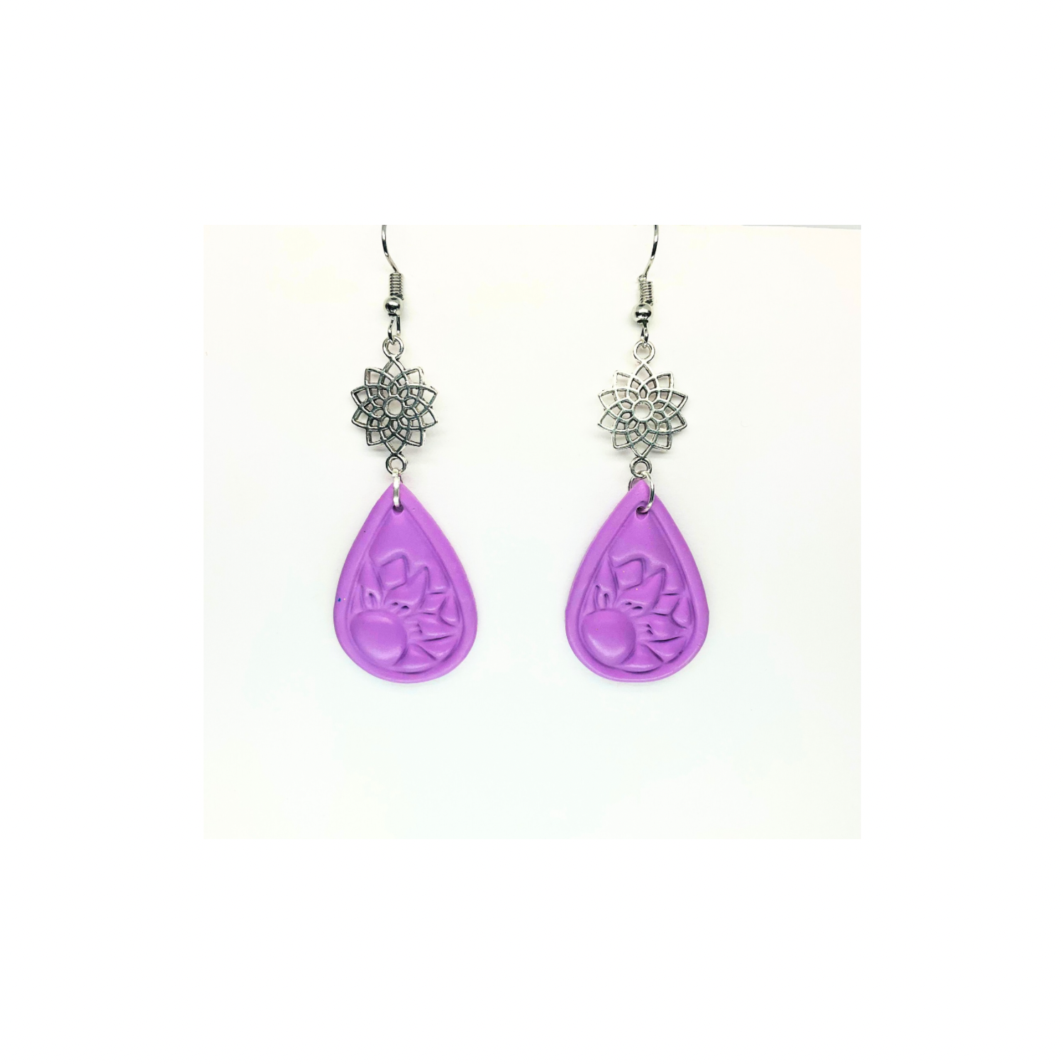 🌸 Lilac Pressed Sunflower Teardrop Dangle Earrings