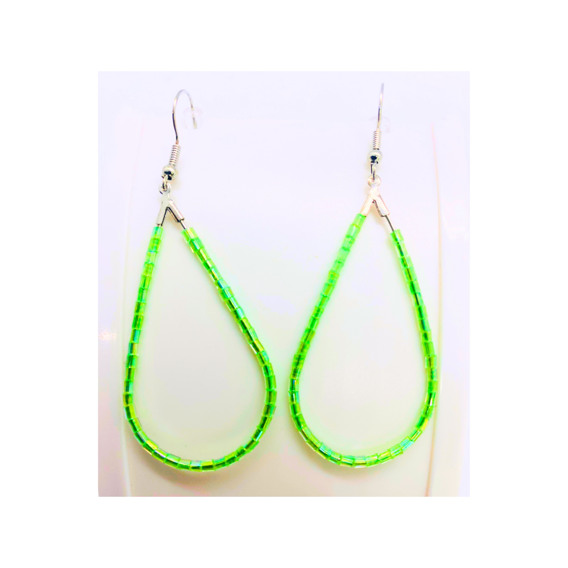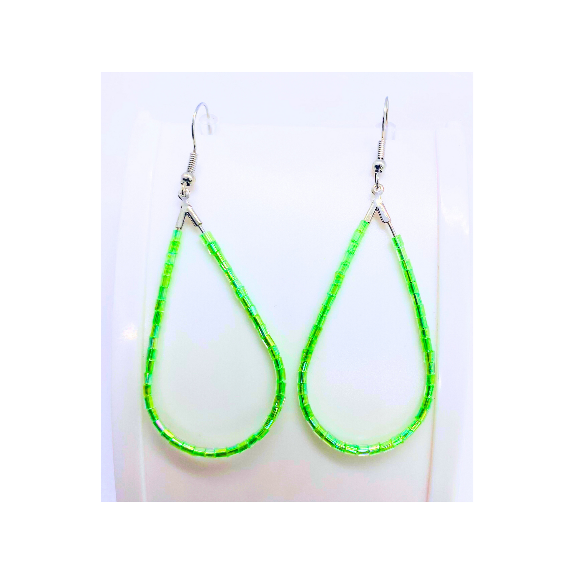 Lime Green Bugle Bead Teardrop Dangle Earring