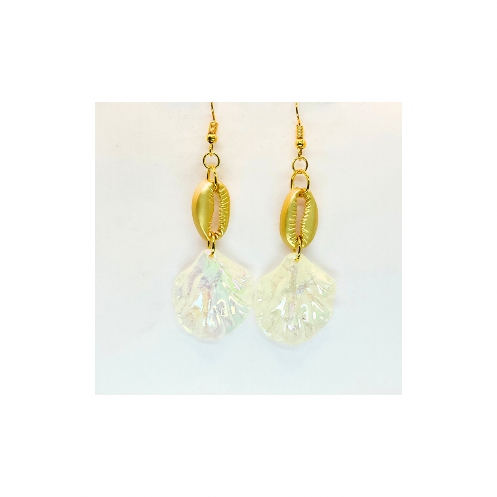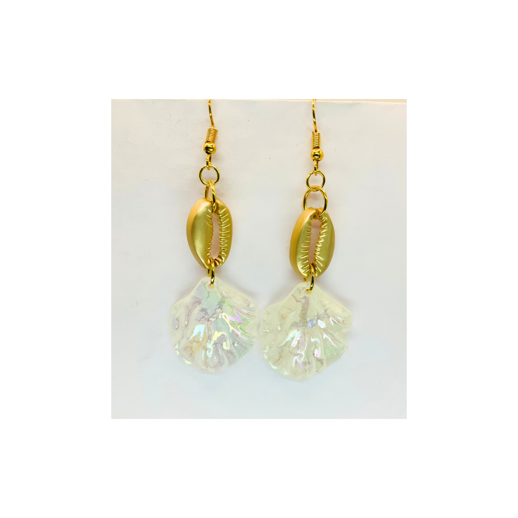Mermaid Collection Crackle Cream Shell and Gold Dangle Earring with Unique Design Elements