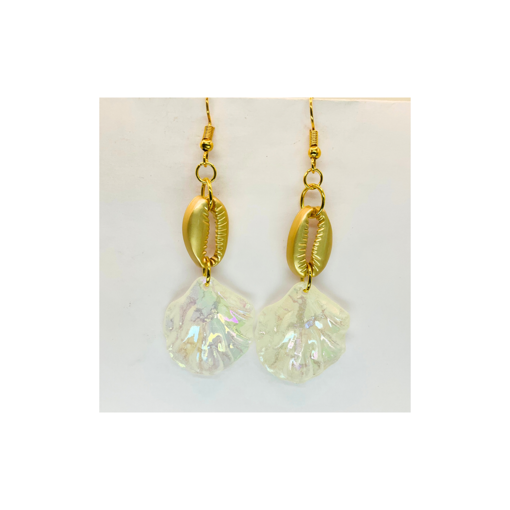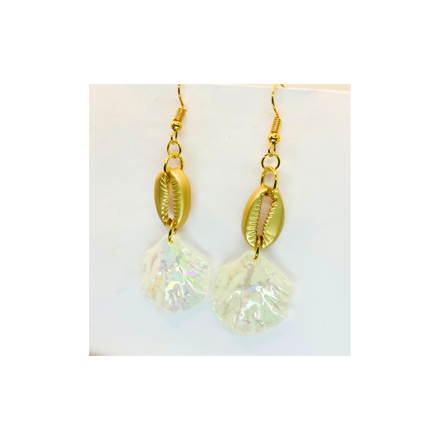 ✨ Discover the Mermaid Collection Crackle Cream Shell and Gold Dangle Earring! ✨