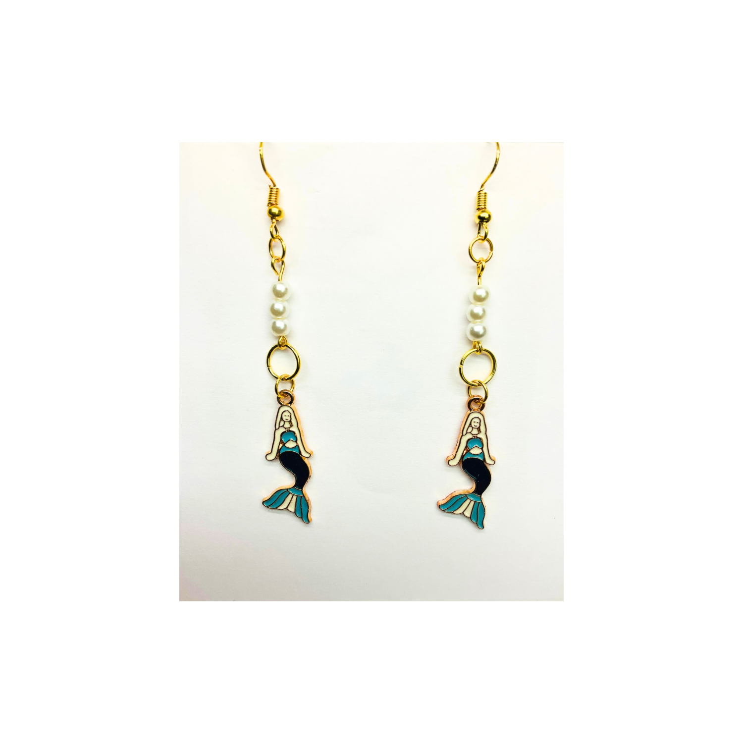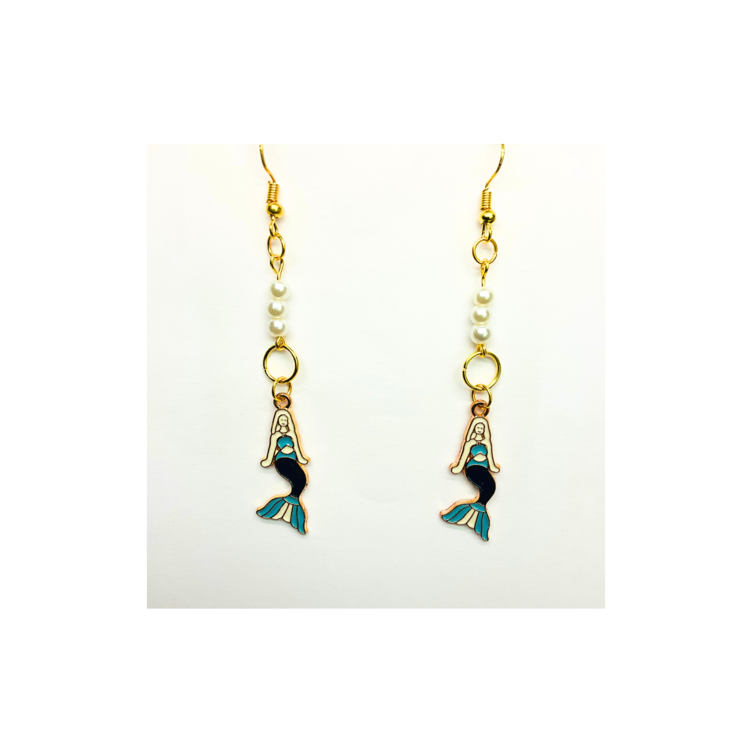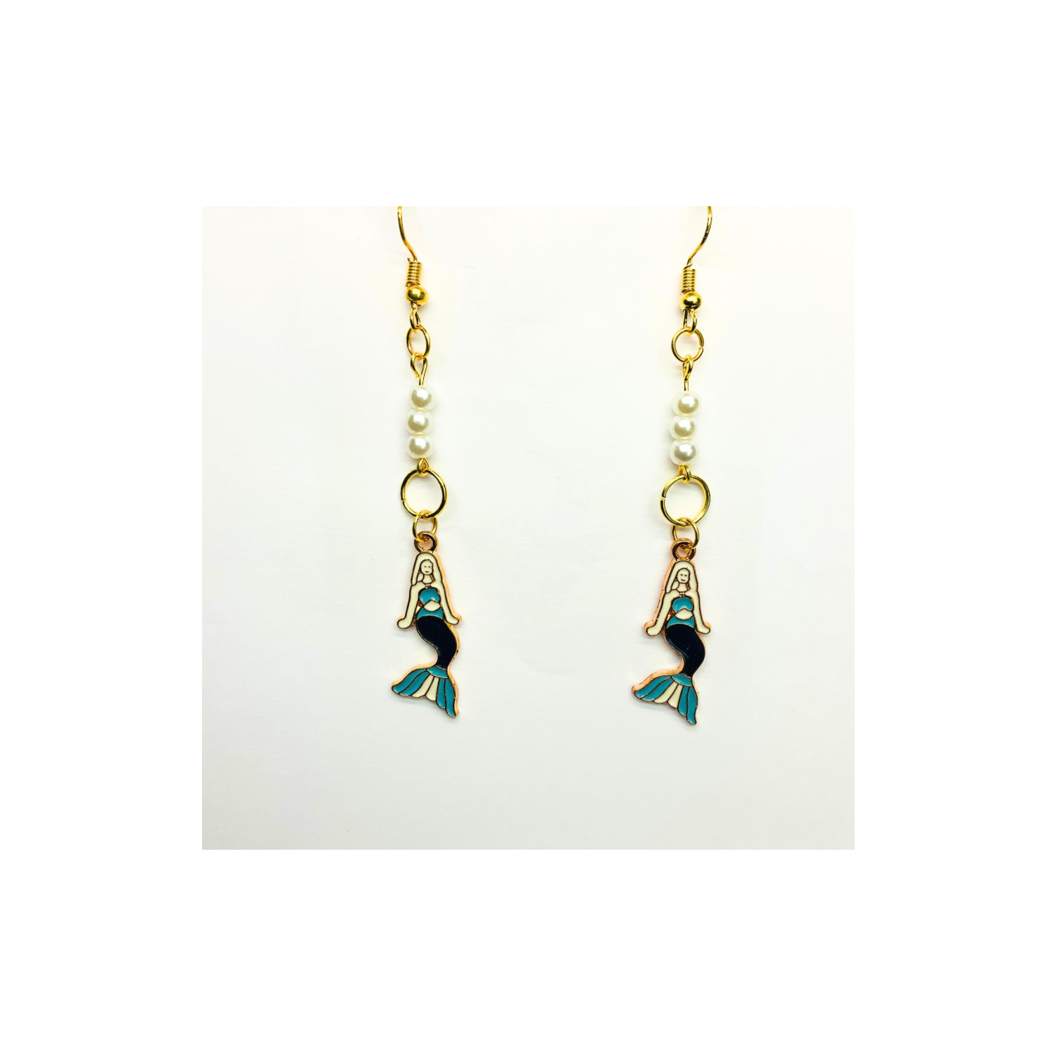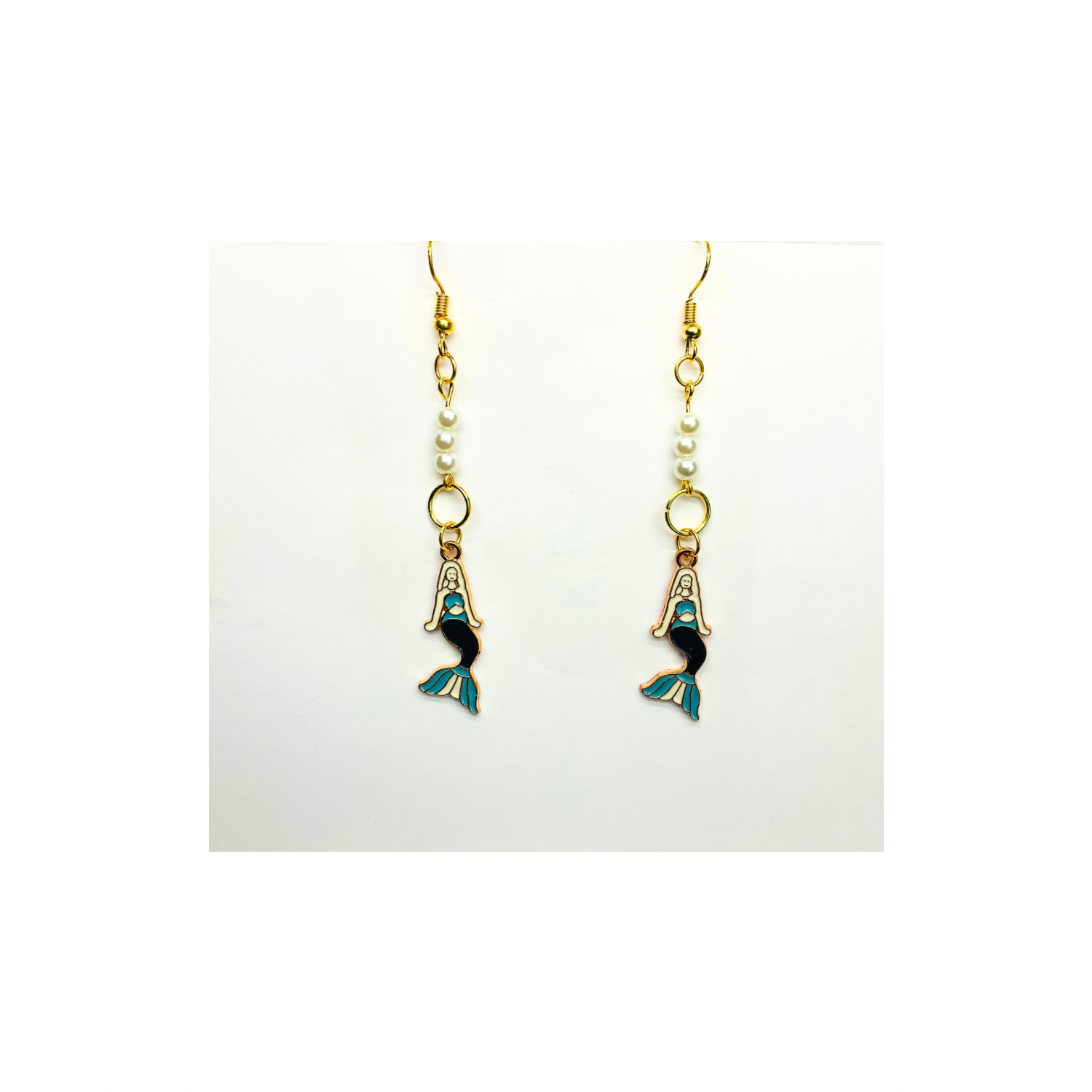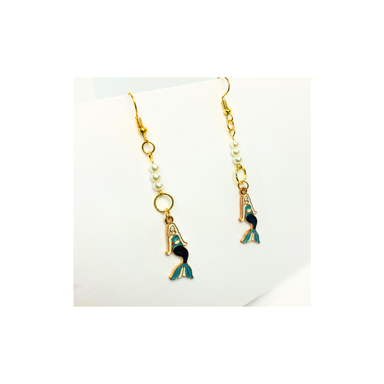 - These earrings are part of the Mermaid Collection, featuring a charming gold mermaid charm. Perfect for adding a touch of whimsy to your outfit. The design is simple yet captivating, making it a versatile accessory for various occasions.