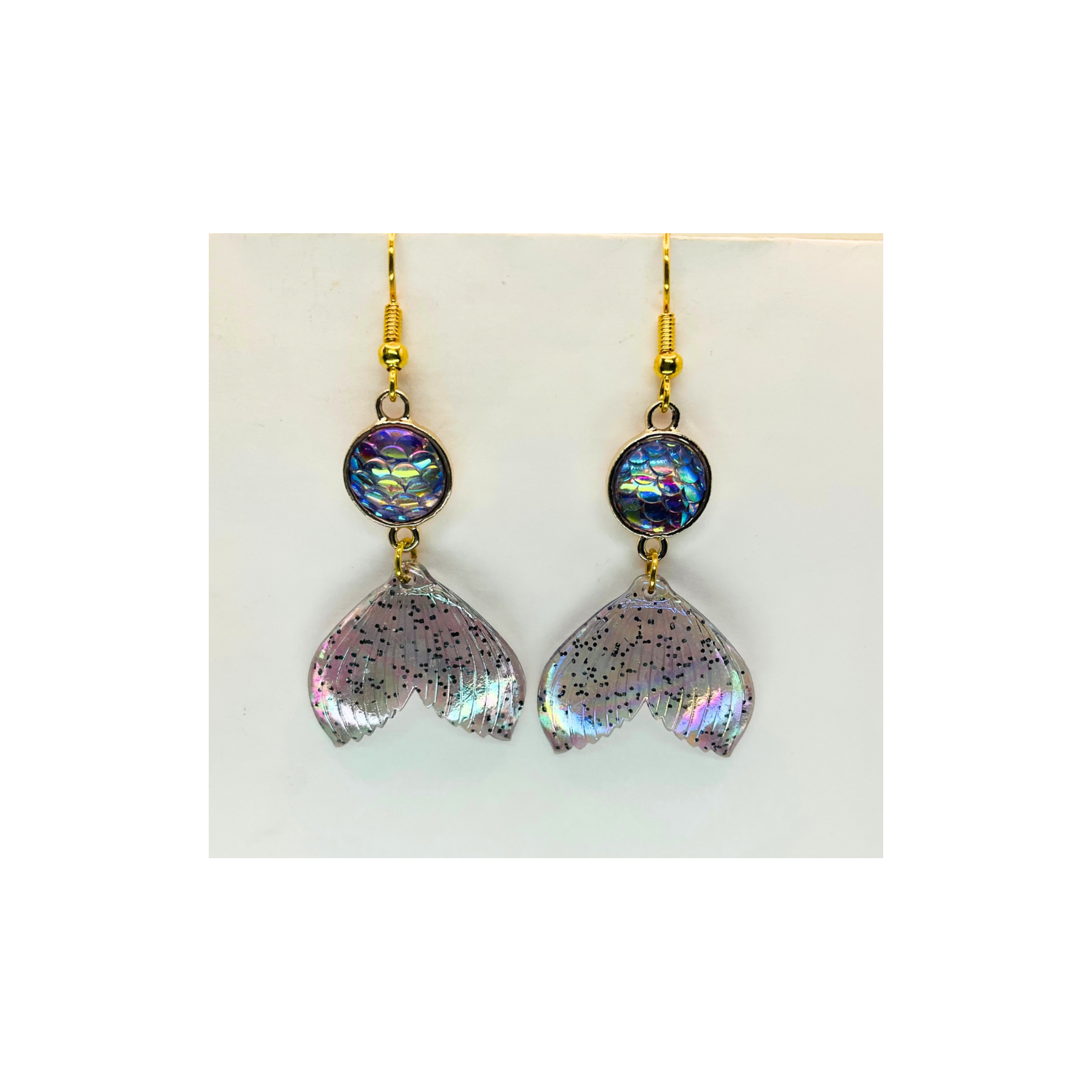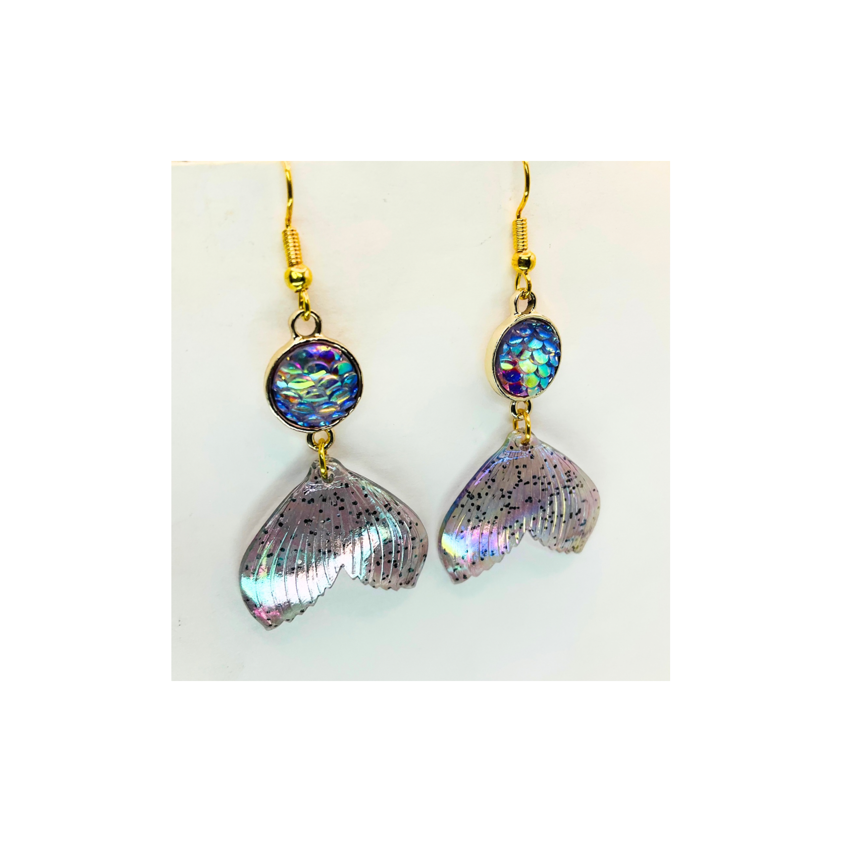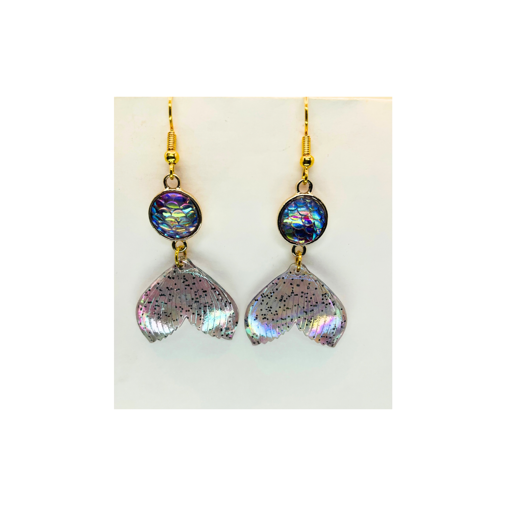 Mermaid Iridescent Tail Dangle with Iridescent Circle Bead Earrings