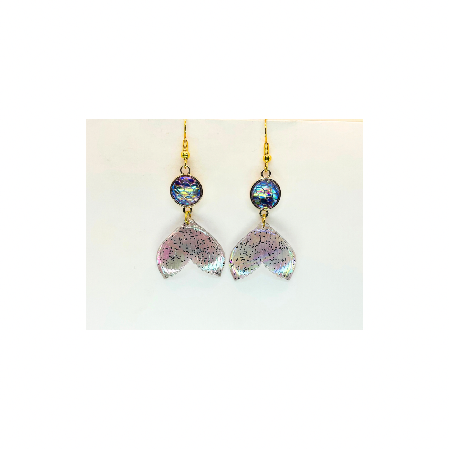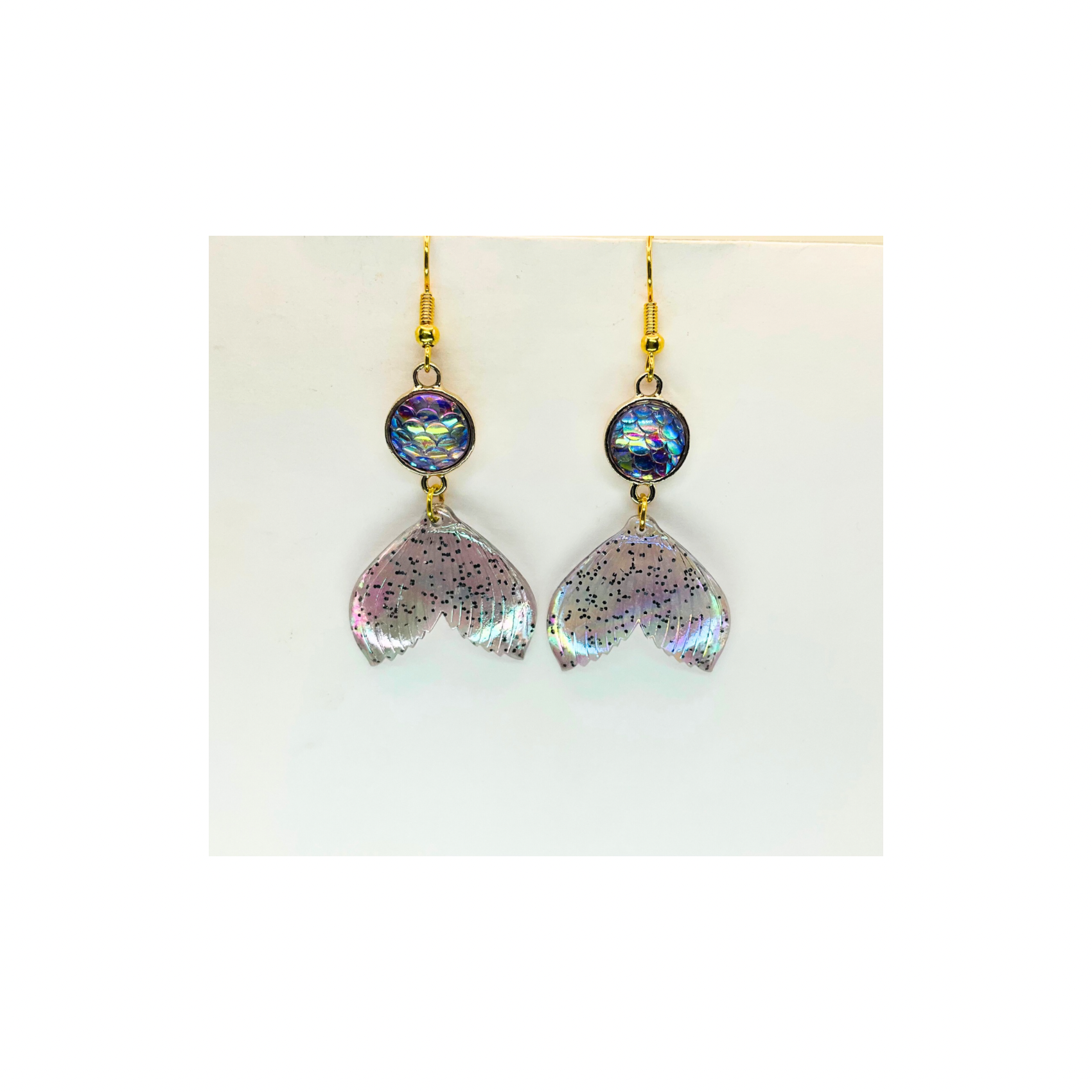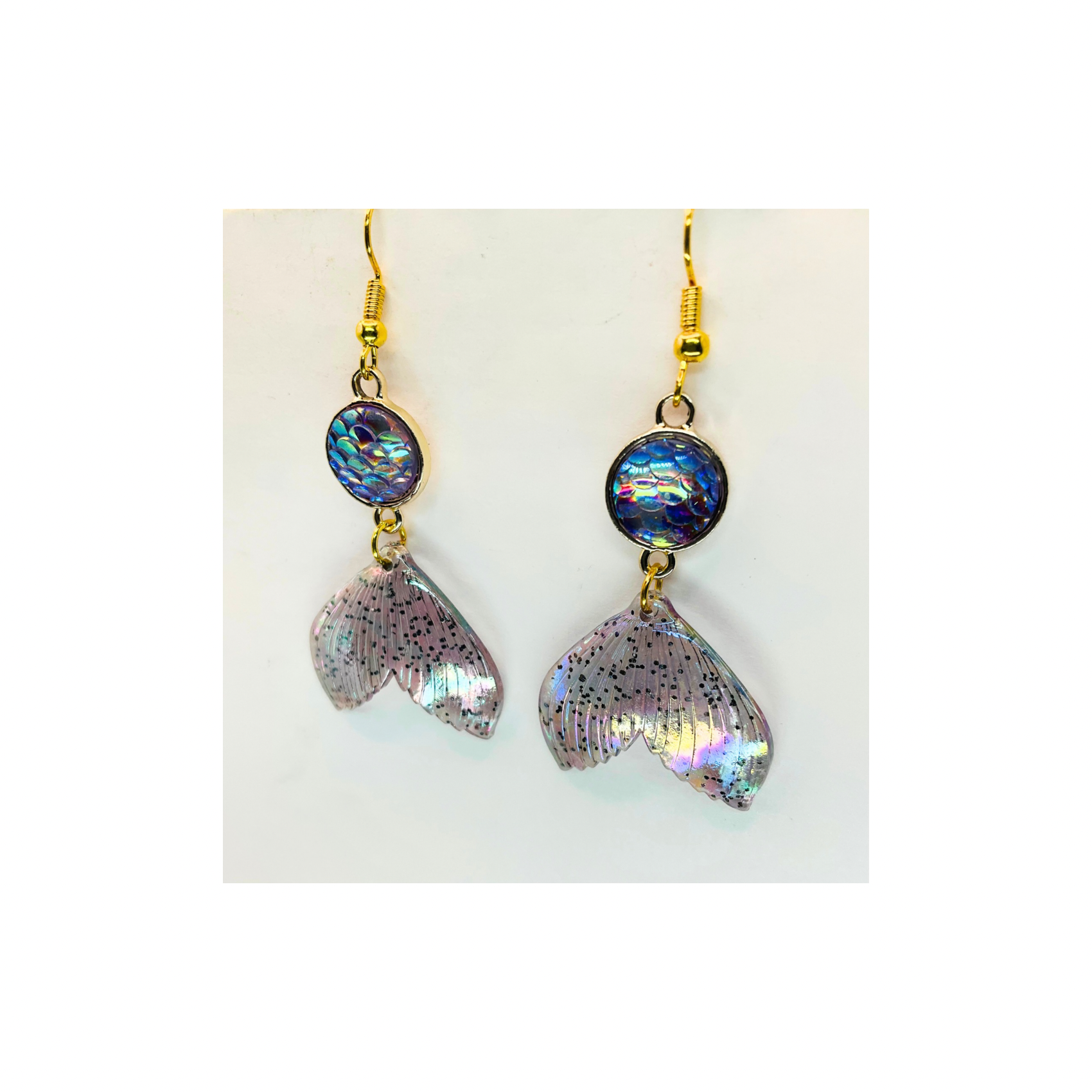 Mermaid Iridescent Tail Dangle with Iridescent Circle Bead Earrings