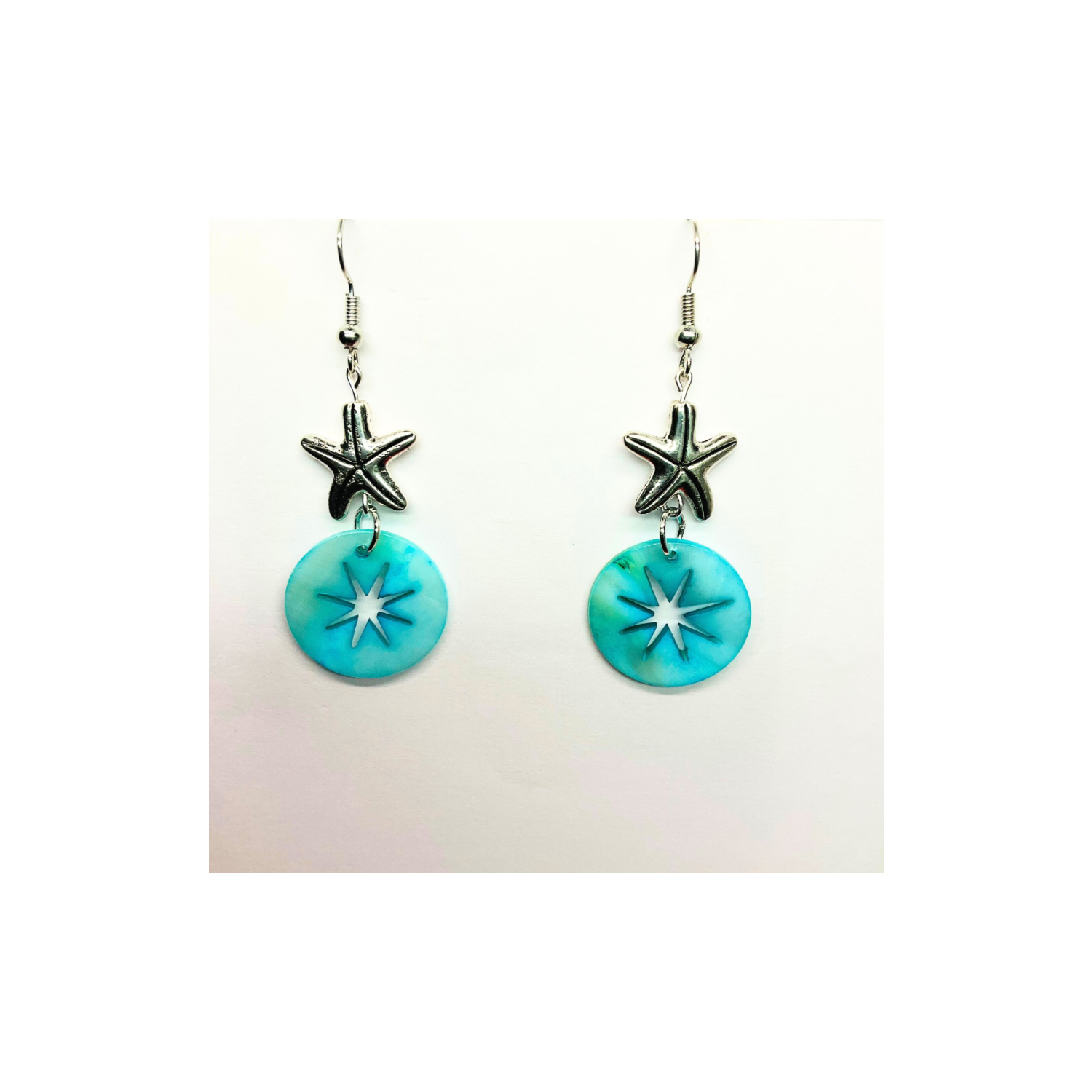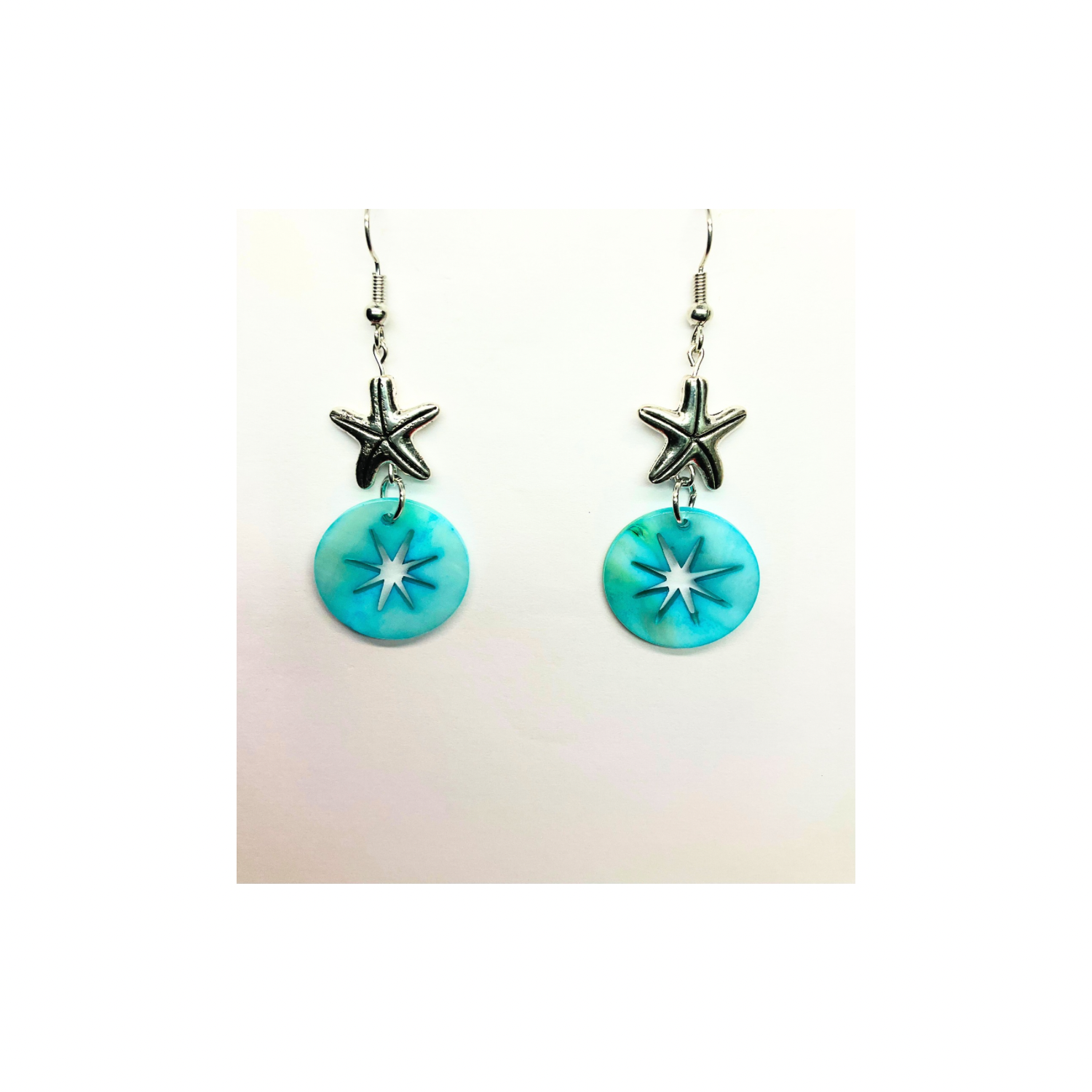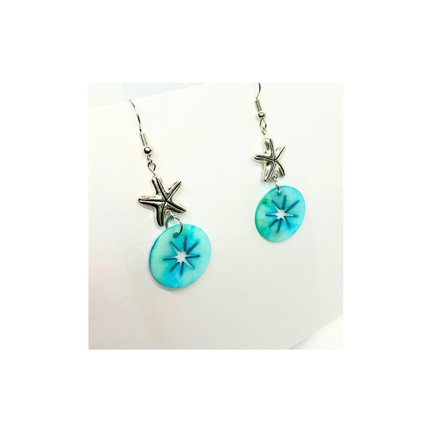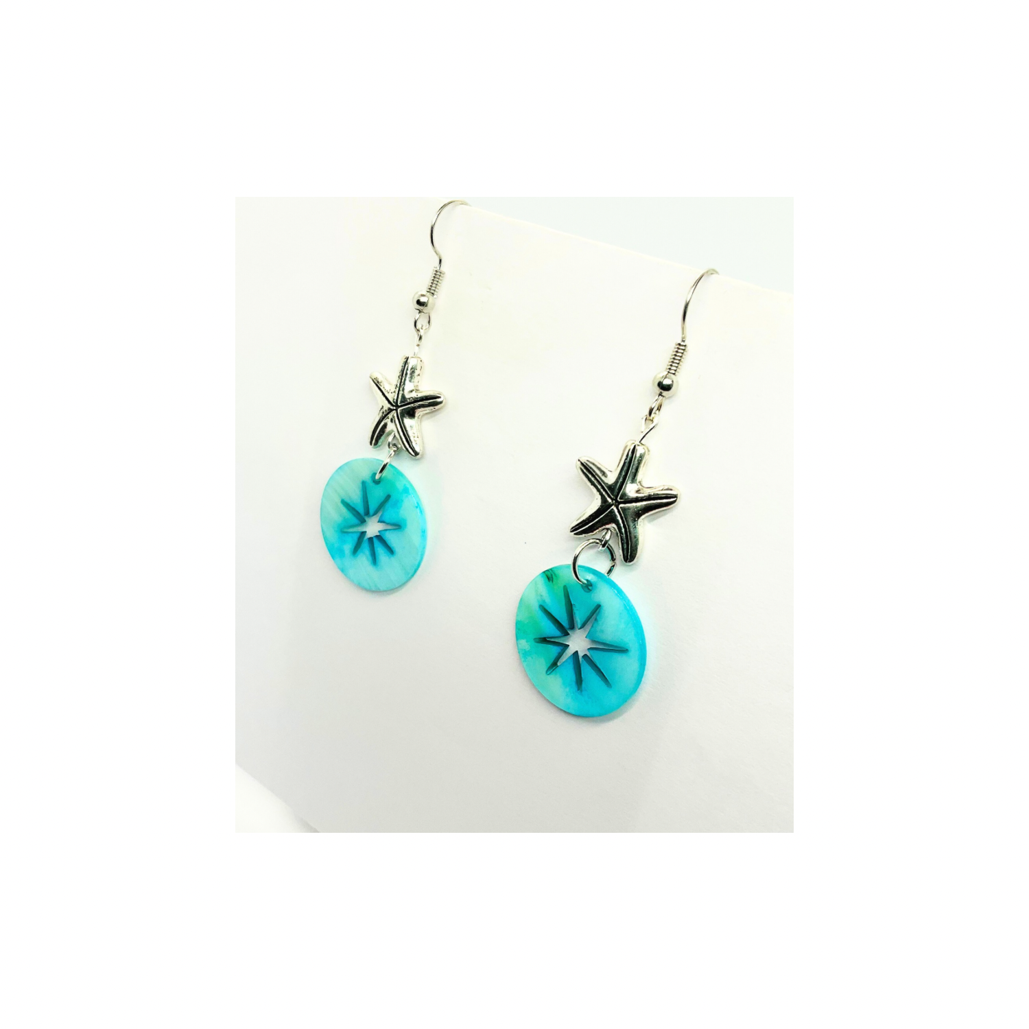 Embrace the allure of the ocean with these elegant dangle earrings. The design features a striking blue starfish, capturing the essence of marine life. Perfect for adding a touch of nature's beauty to your ensemble. These earrings are a delightful choice for any occasion.