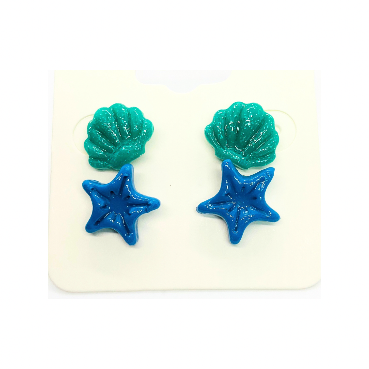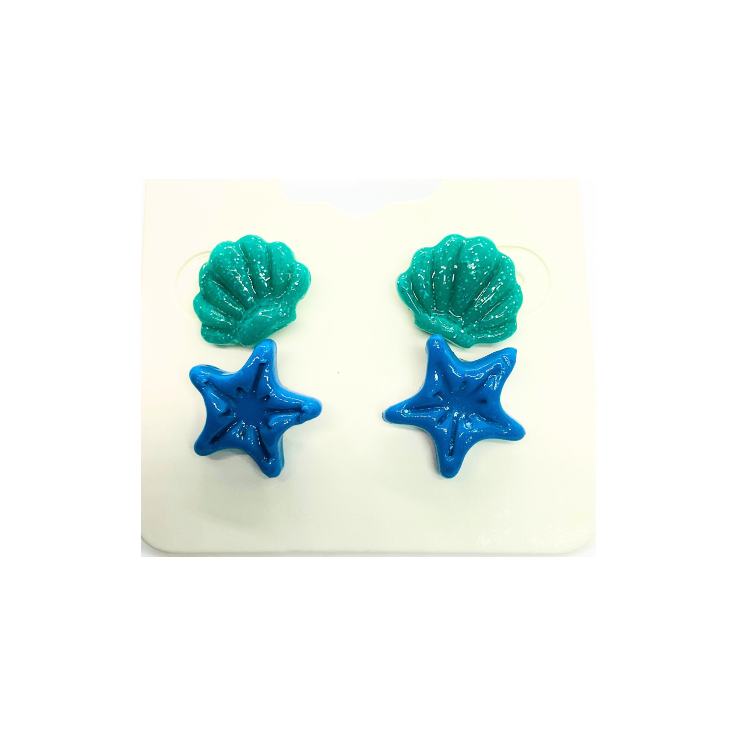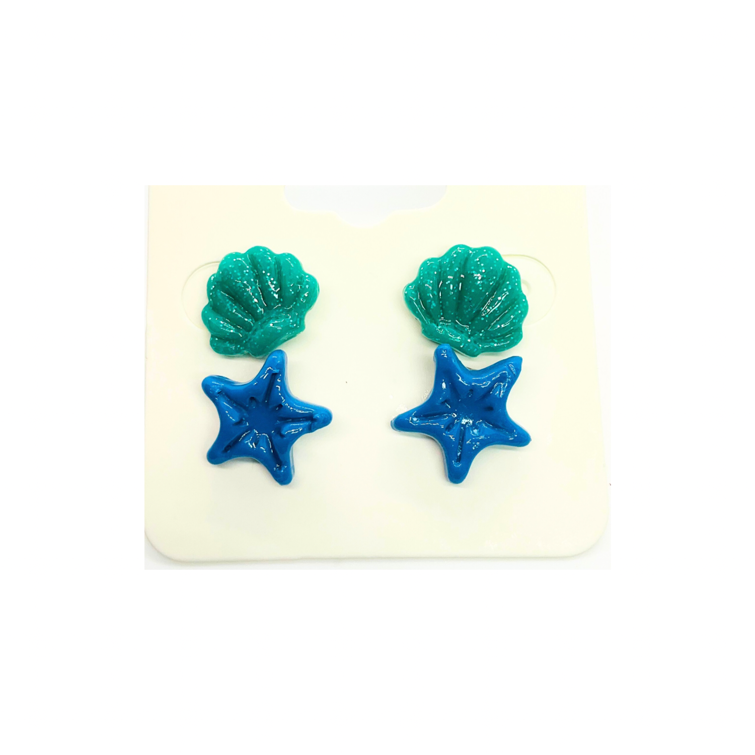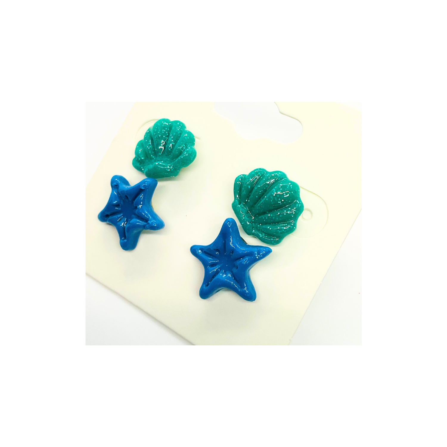 Explore the allure of the sea with our Green Shell and Blue Starfish Stud Earrings. These elegant pieces capture the essence of marine life. The green shell and blue starfish design offers a unique touch to any outfit. Perfect for those who love a touch of nature's charm.