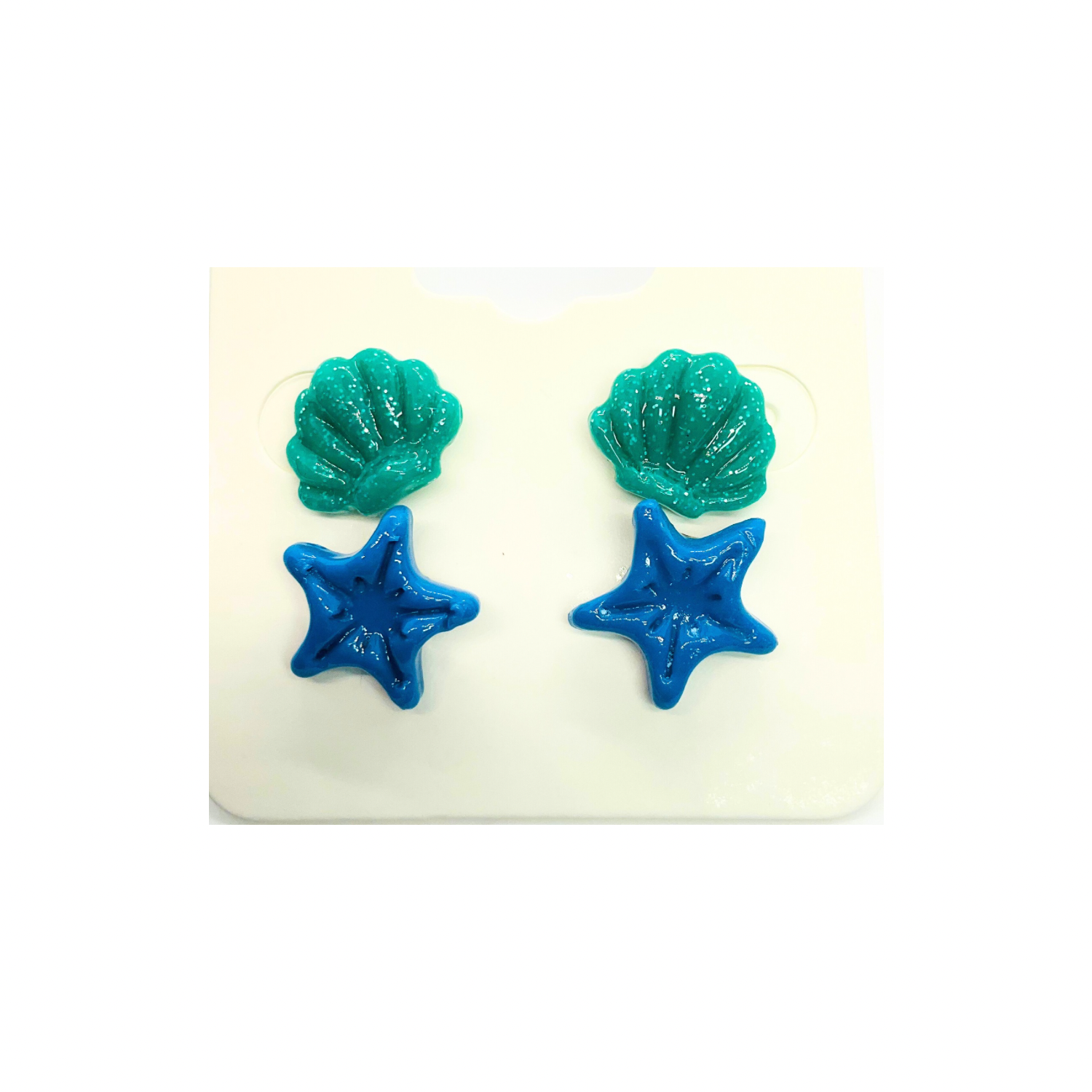 Ocean Collection Green Shell and Blue Starfish Stud Earrings for Women