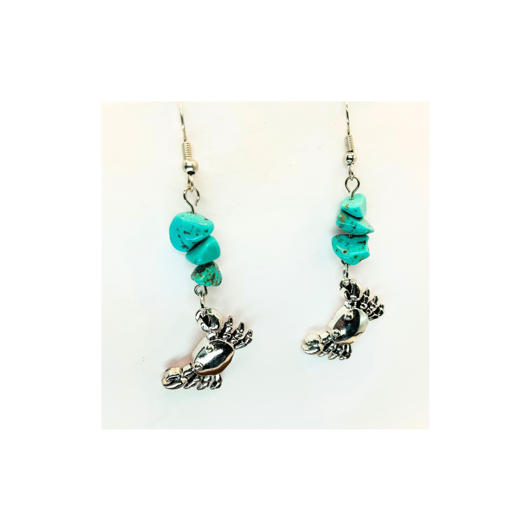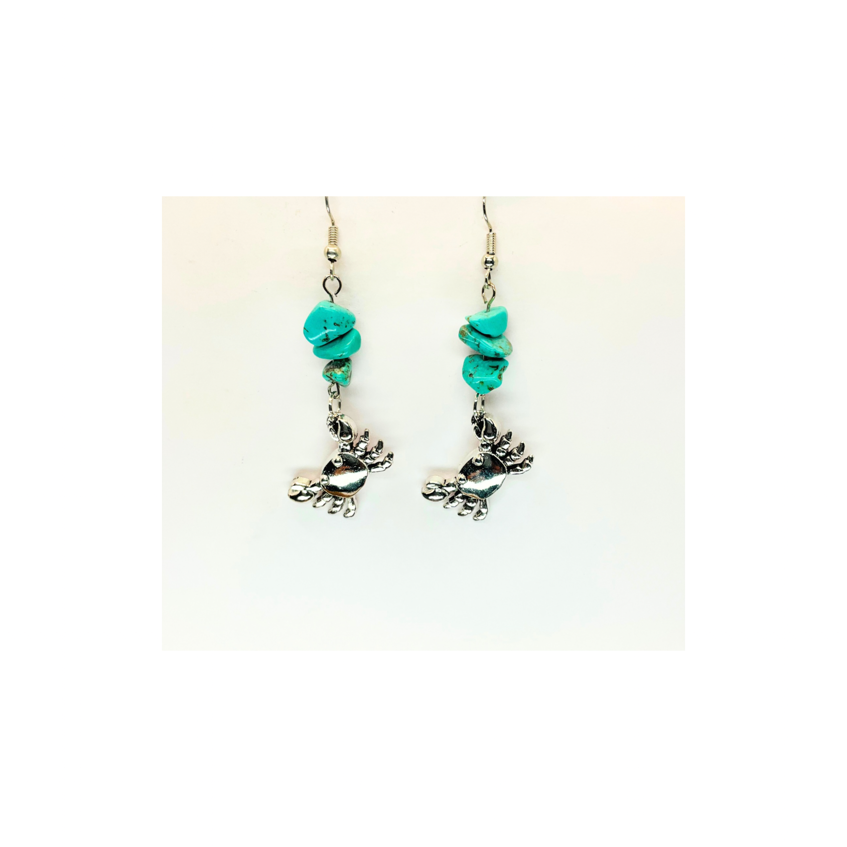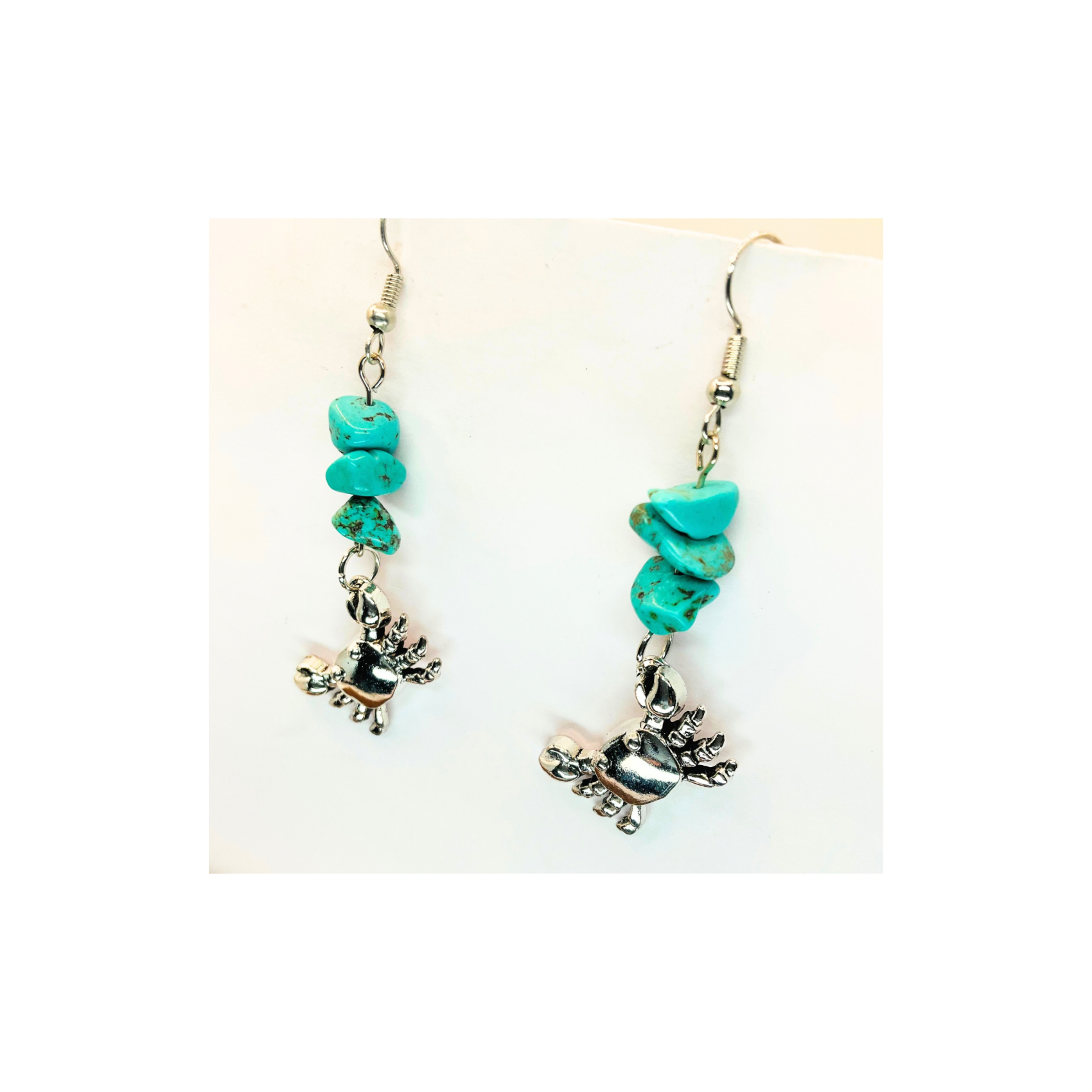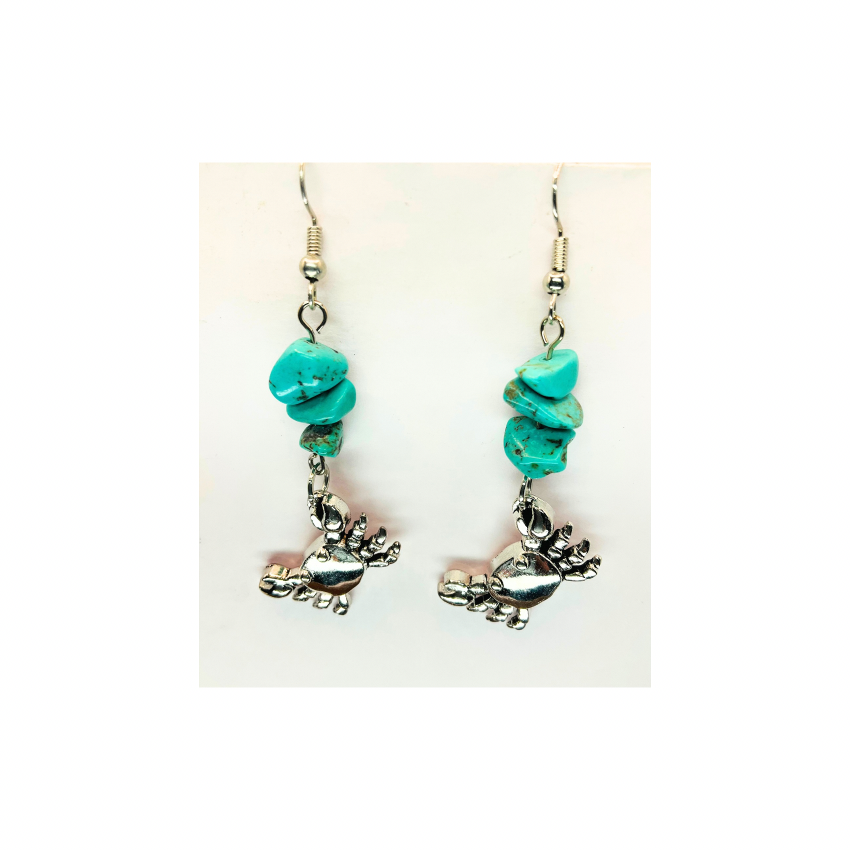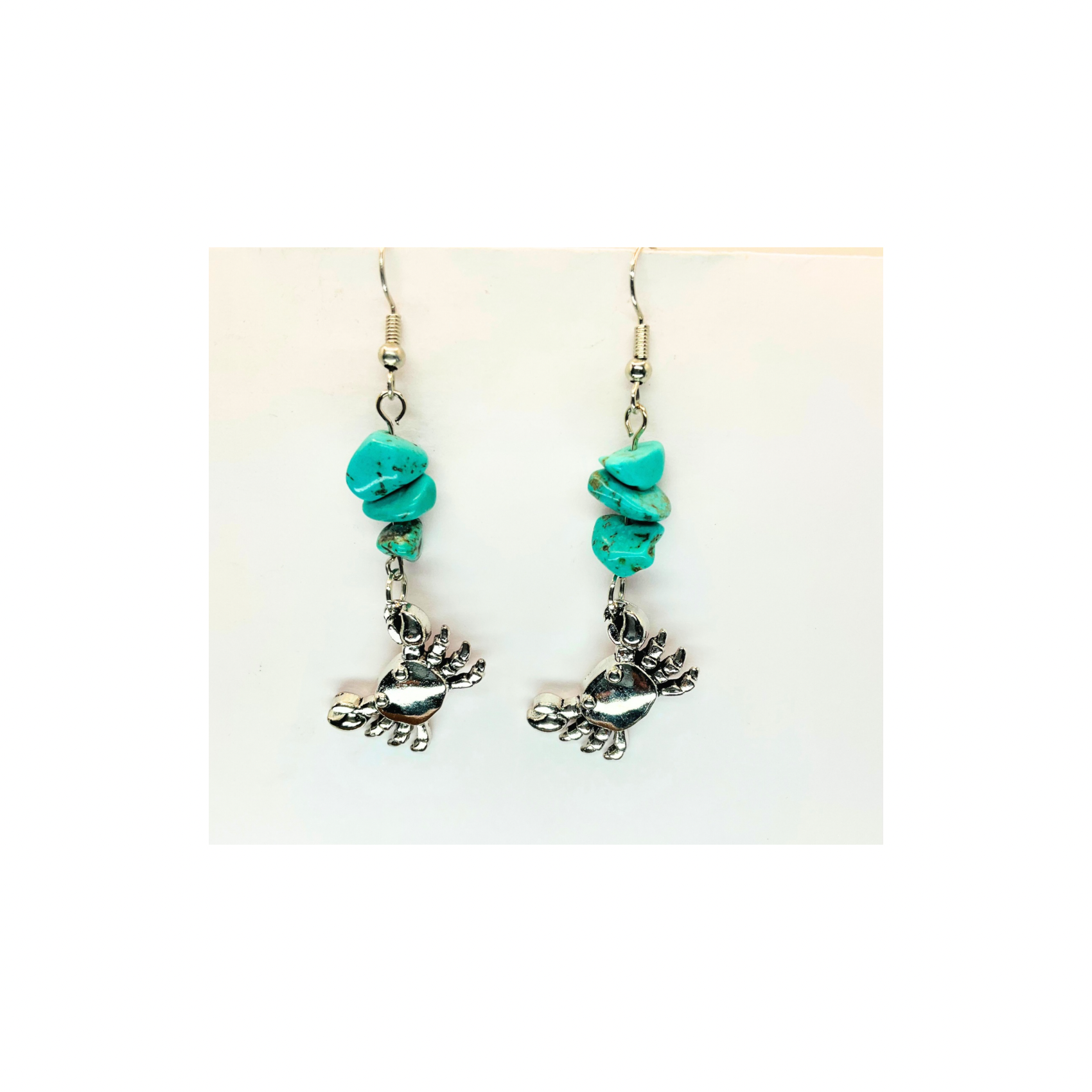 Ocean Collection Silver Crab Dangle with Turquoise Bead Earrings