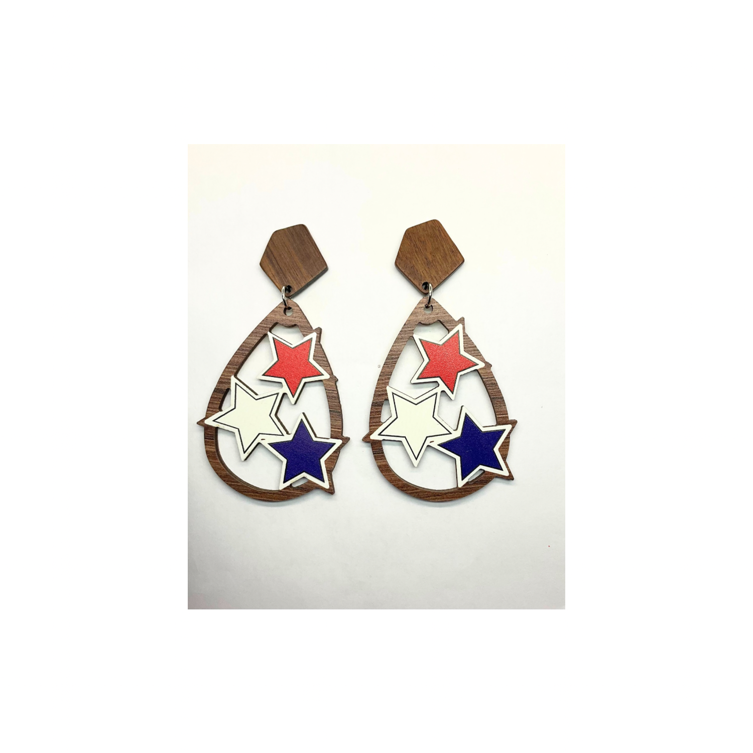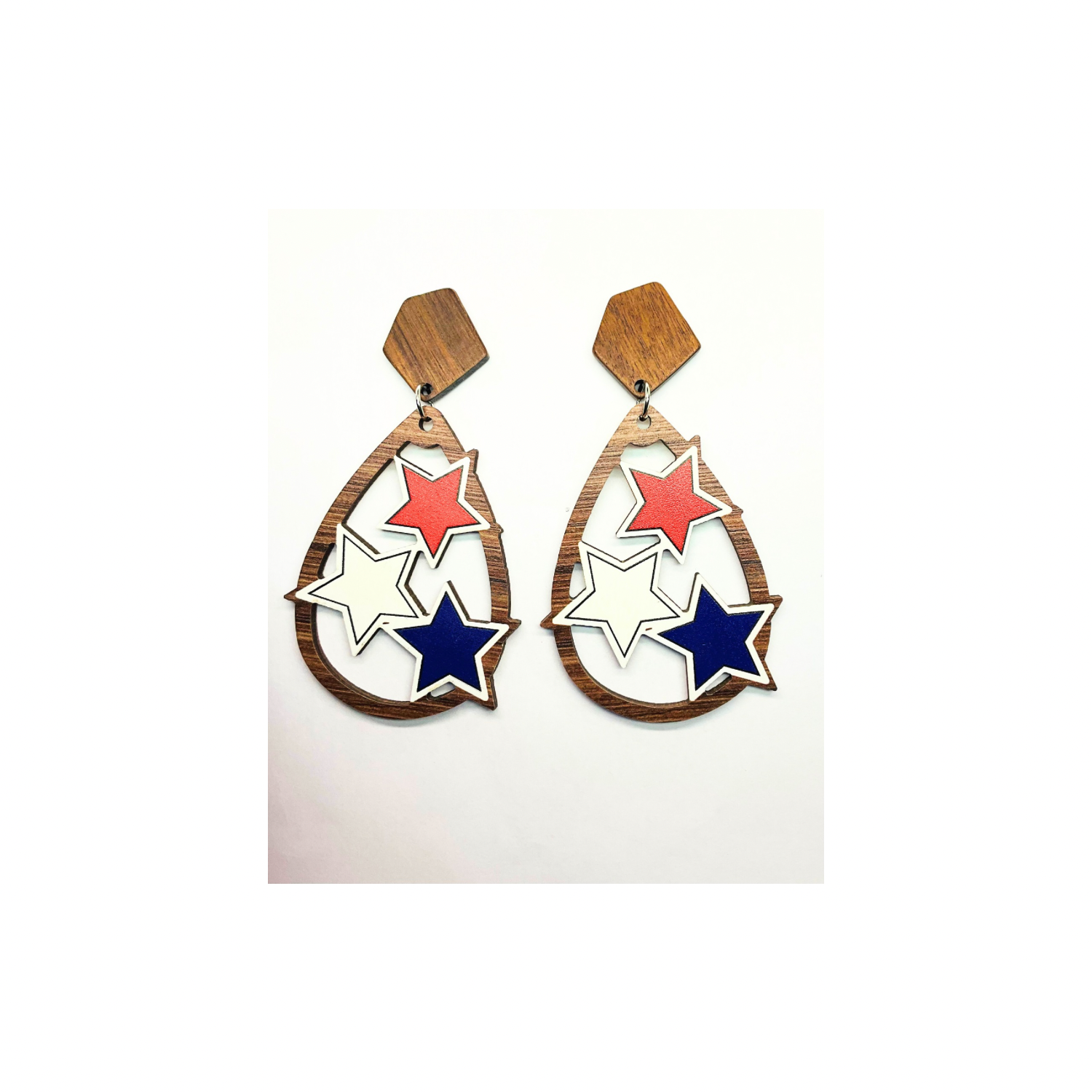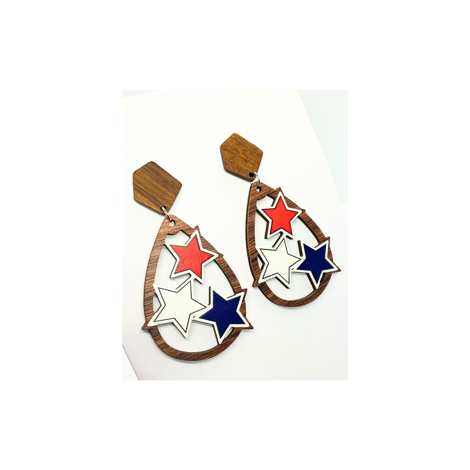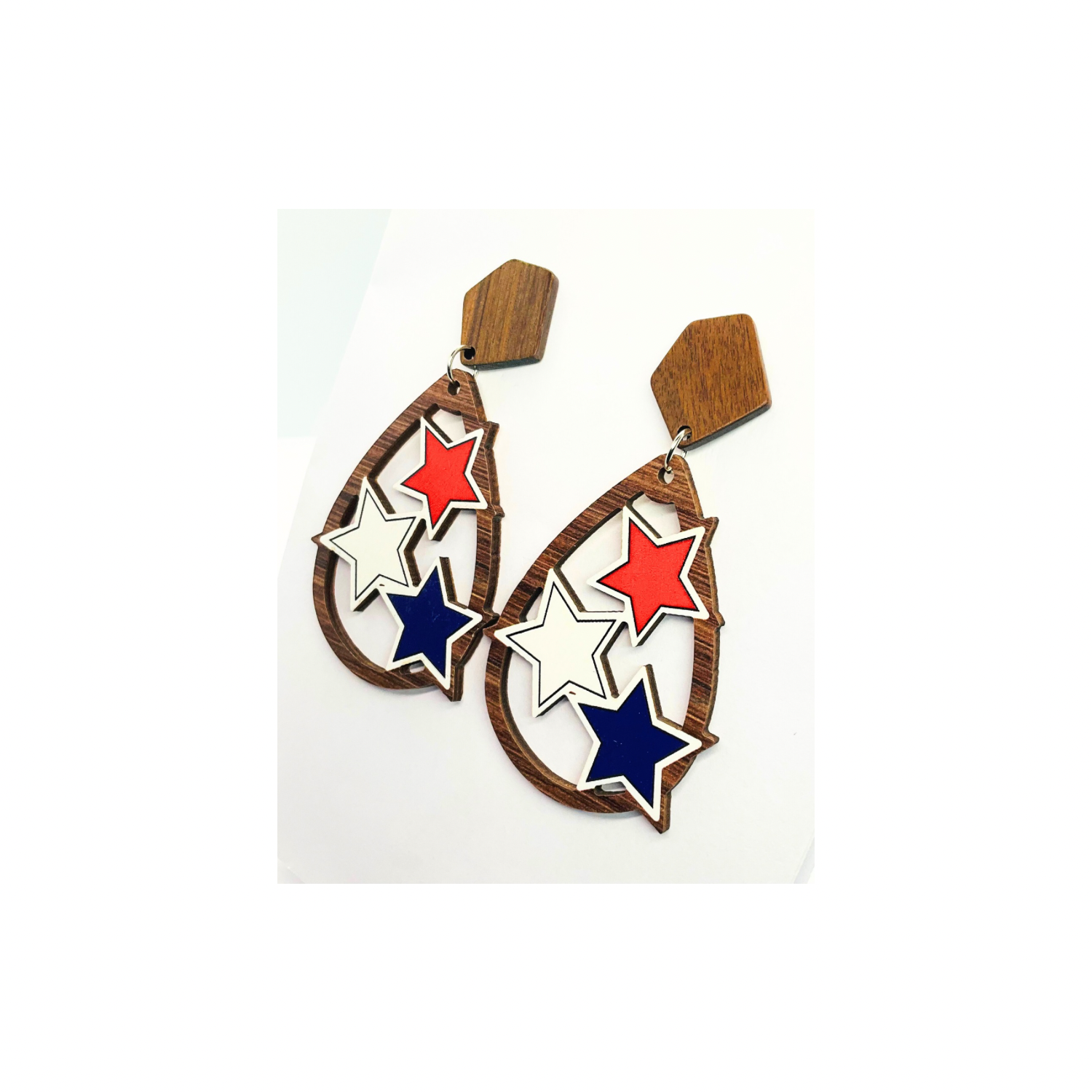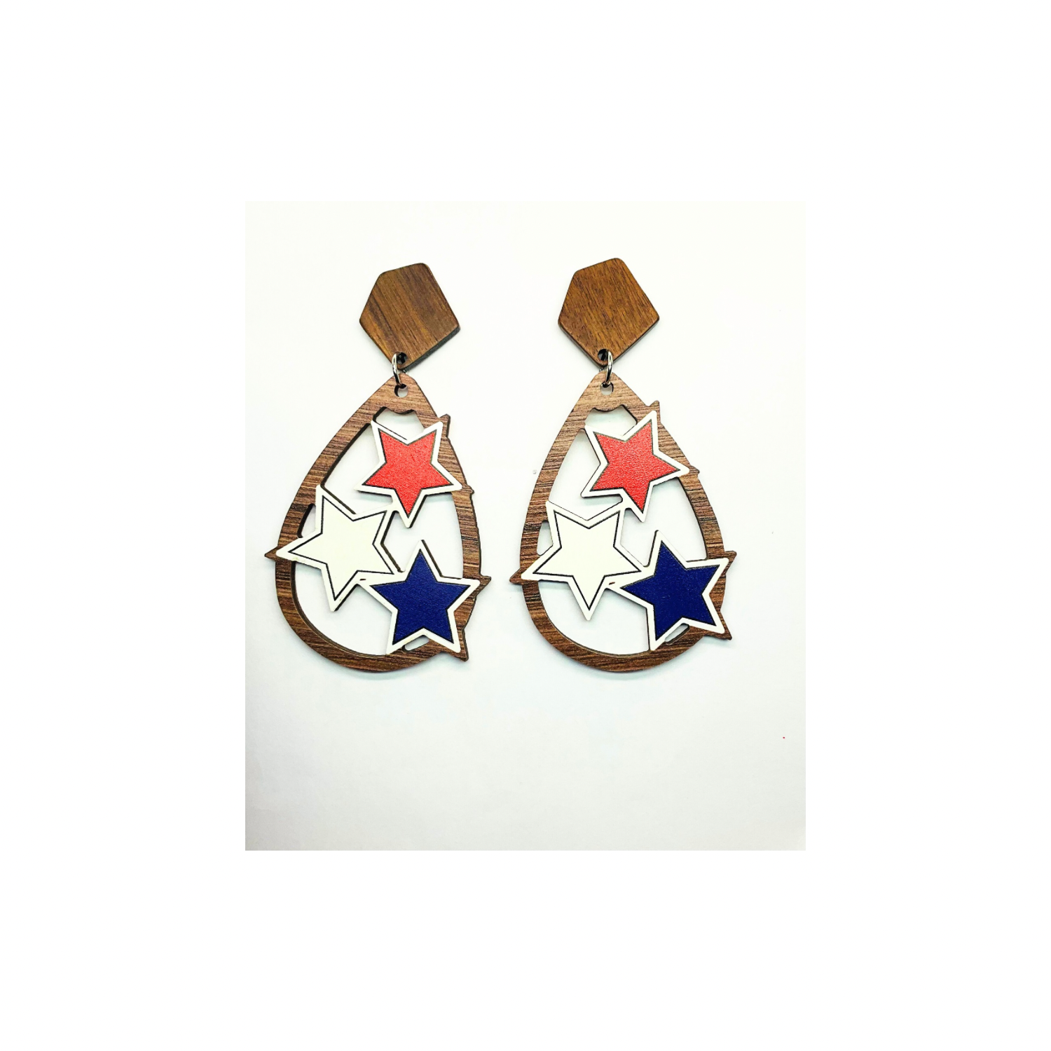 Patriotic Collection Red White Blue Wood Star Teardrop Dangle Earrings for Female Patriotic Jewelry