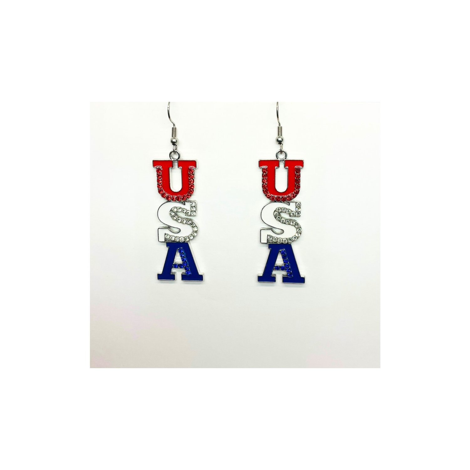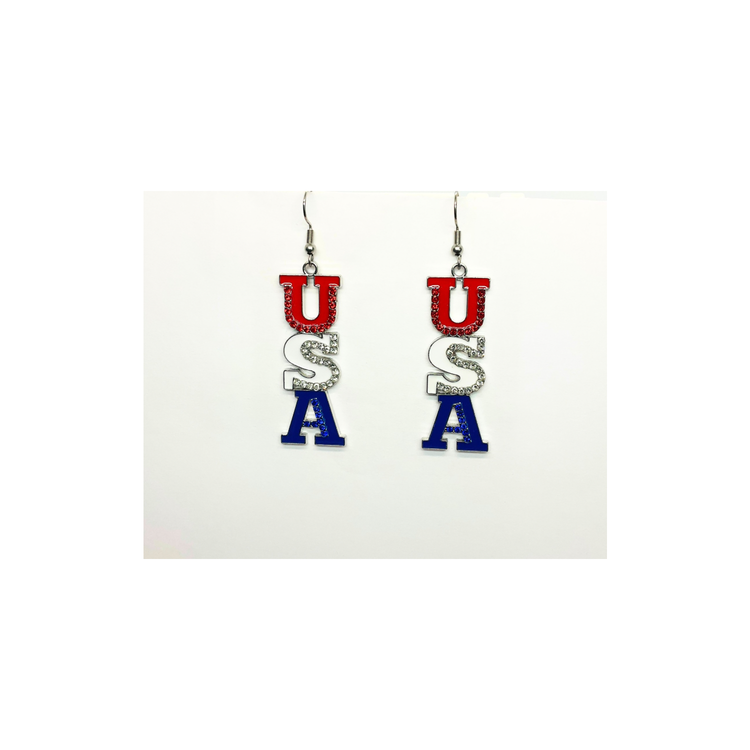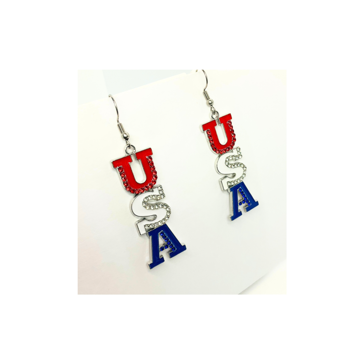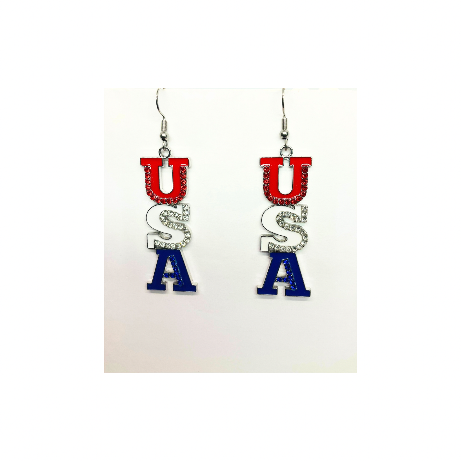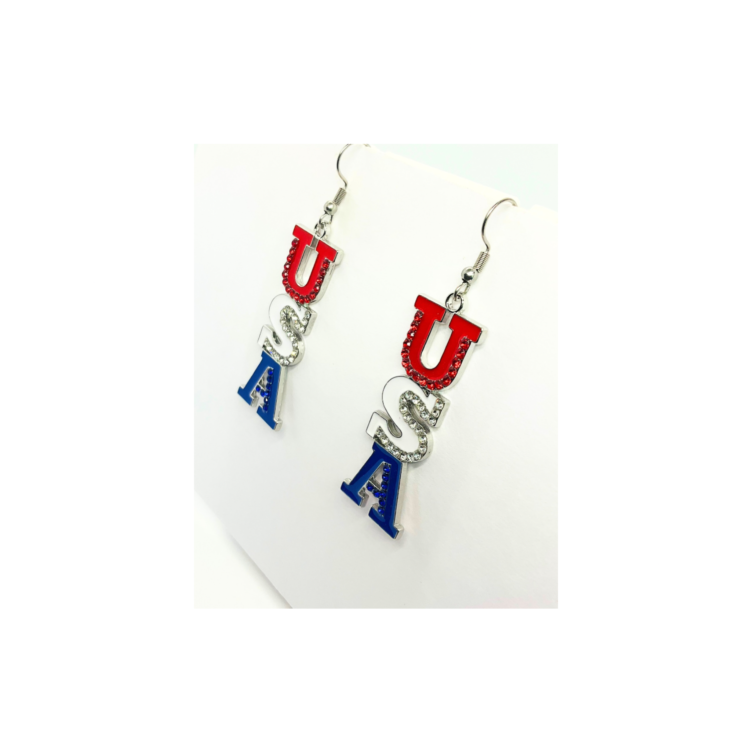 Embrace your patriotism with these dangling earrings. Perfect for women who love to show their pride, these accessories feature a stunning rhinestone design. The earrings are part of the Patriotic Collection, ensuring you stand out with a touch of American spirit. Ideal for any occasion where you want to express your love for the USA.