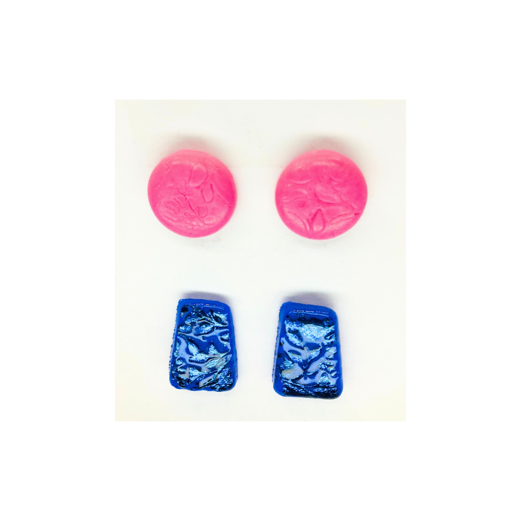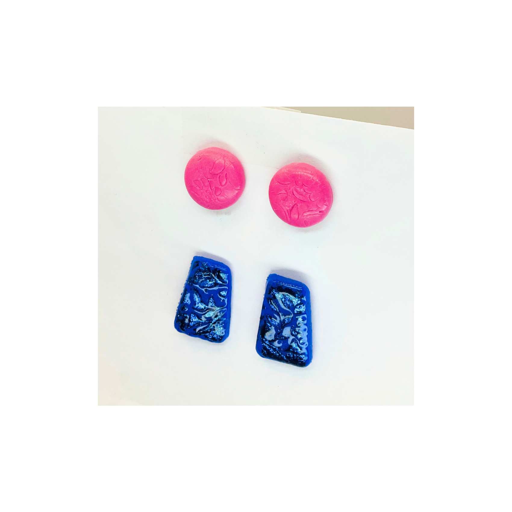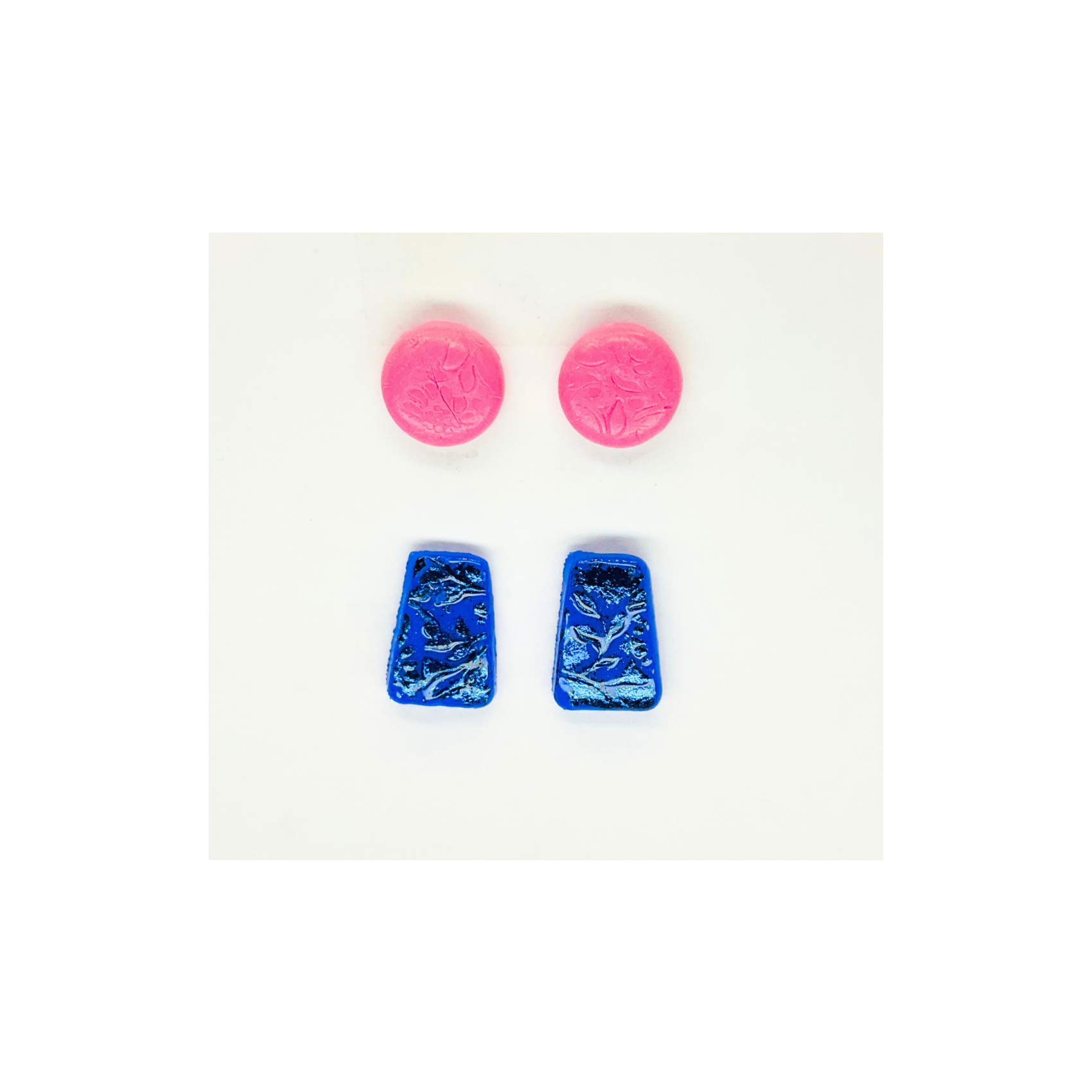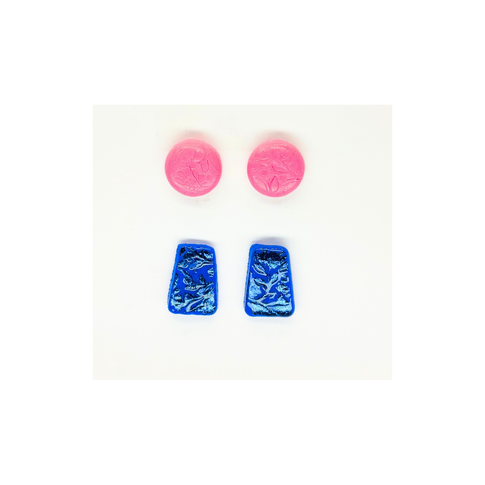 Pink Button and Sparkle Blue Stud Earrings-Crafting By BB
