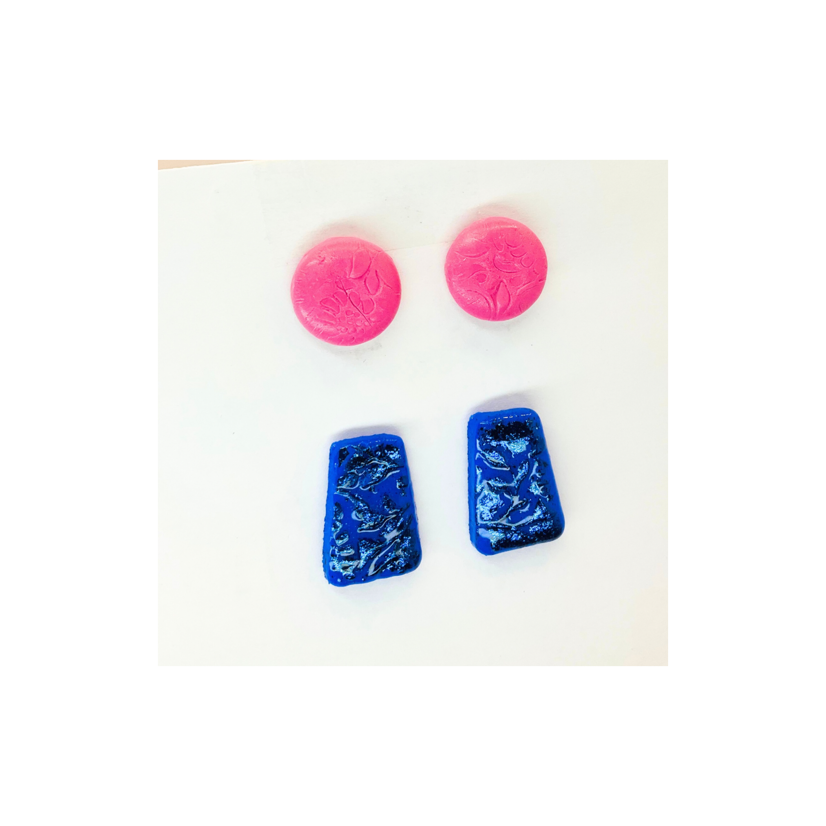 Discover the charm and elegance of these handcrafted Pink Button and Sparkle Blue Stud Earrings, expertly crafted by Crafting By BB. Made with high-quality materials, these lovely earrings feature vibrant pink button accents paired with shimmering blue clay studs, creating a playful yet sophisticated look. Perfect for adding a pop of color to any outfit, these stud earrings are versatile enough for everyday wear or special occasions.