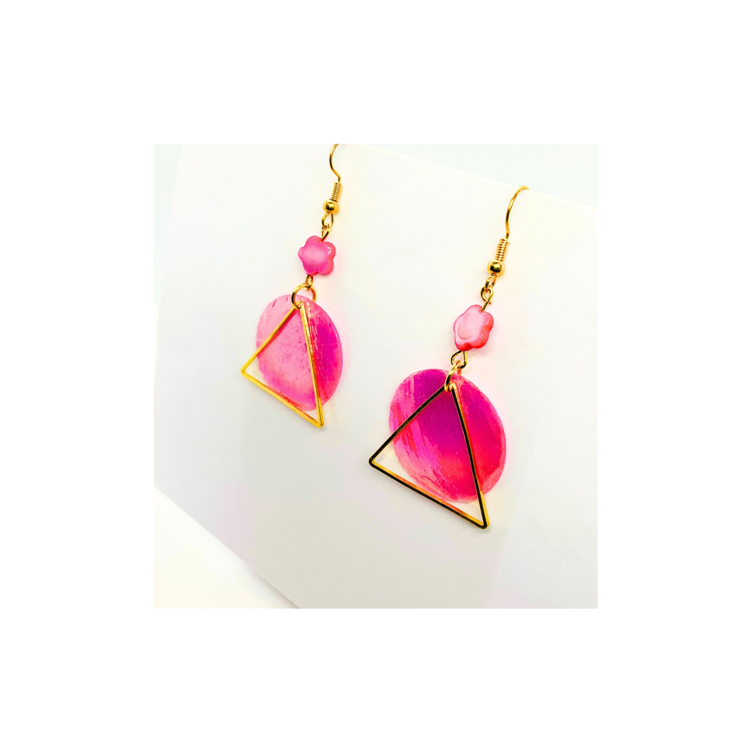 β¨ Elegant Design: The Pink Shell Collection features a striking Bright Pink Circle with a Gold Triangle Dangle. This unique design captures attention with its bold color and geometric shapes. Perfect for those who love a touch of modern flair in their jewelry.