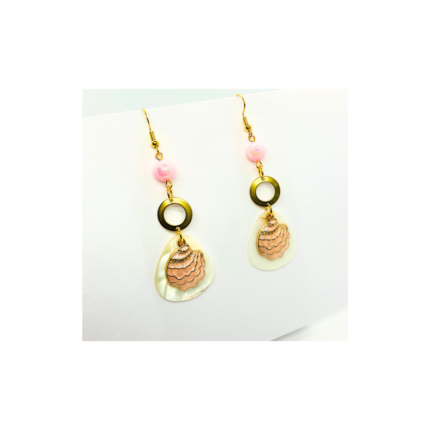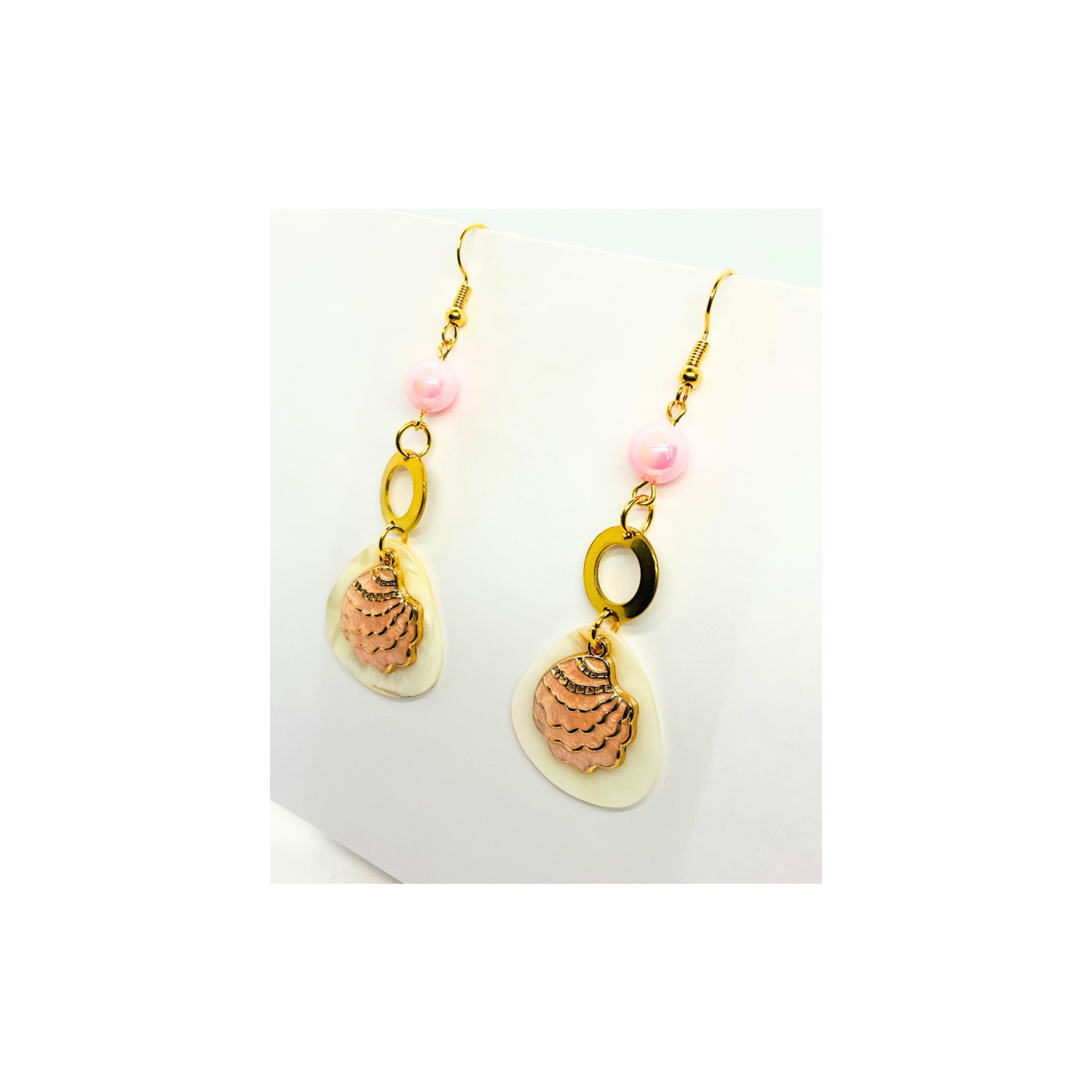 β¨ Elegant Design: The Pink Shell Collection features a unique dangle design. These earrings showcase a pink shell with a bead detail, adding a touch of sophistication. Perfect for those who appreciate subtle elegance in their accessories.