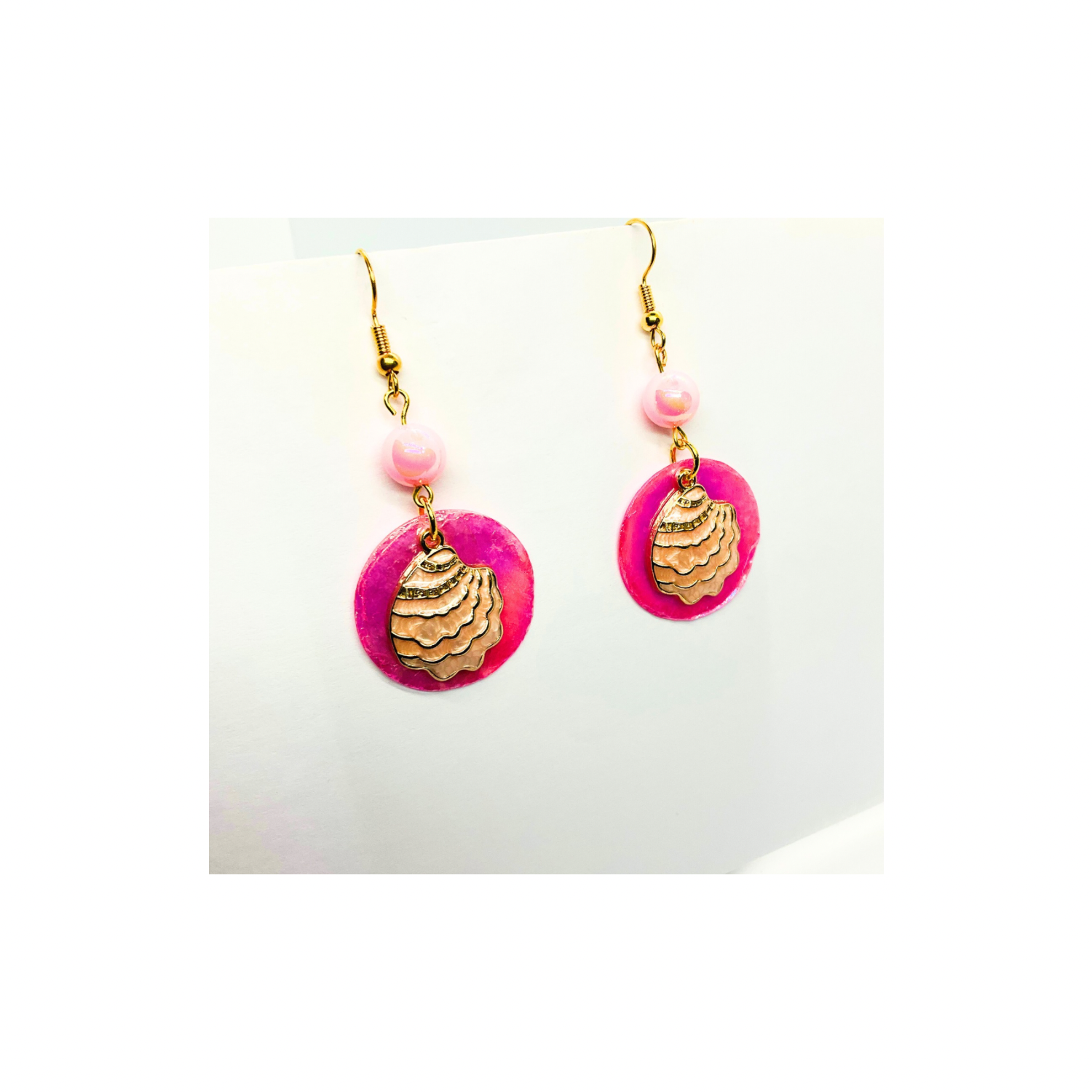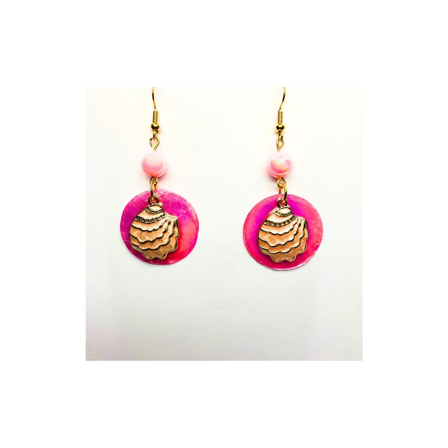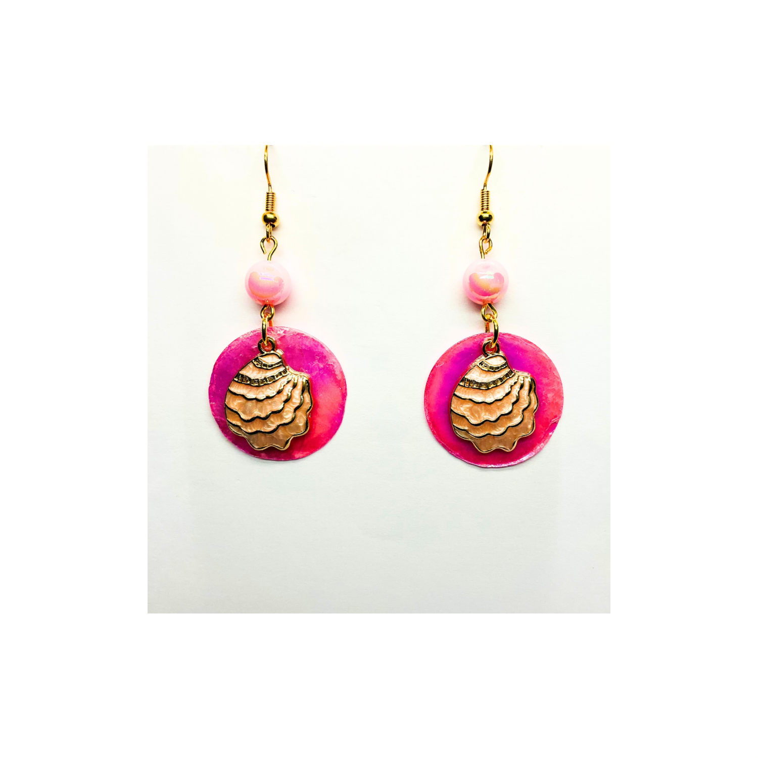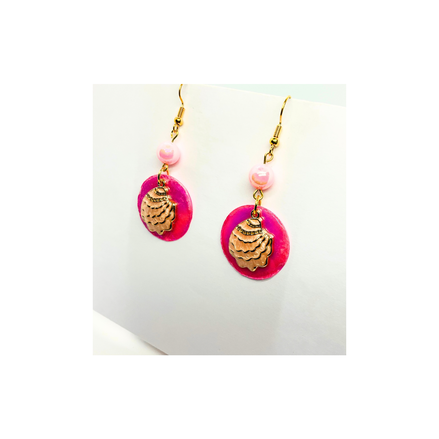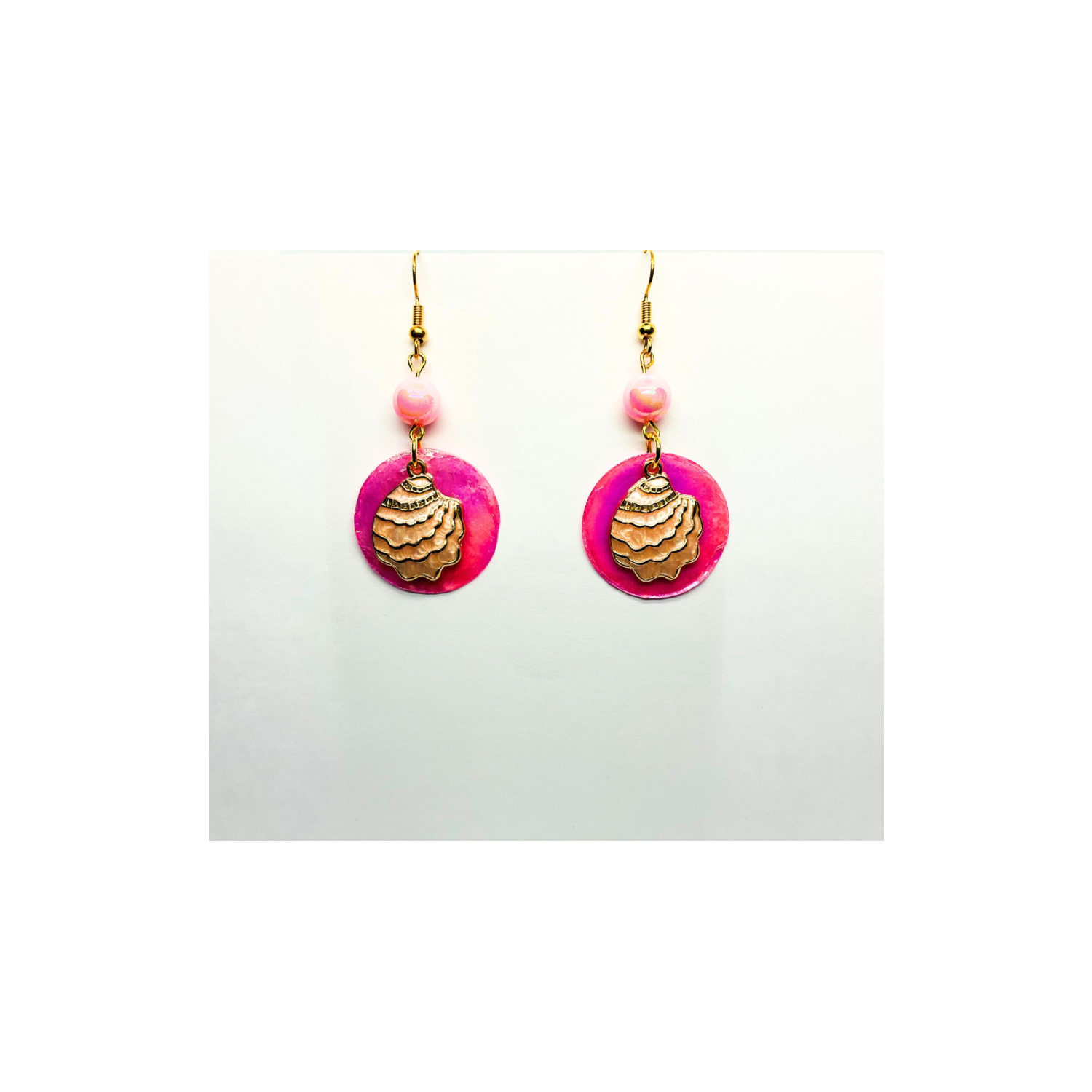 ๐ธ Pink Shell Collection Round Pink with Shell Dangle Earrings ๐ธ