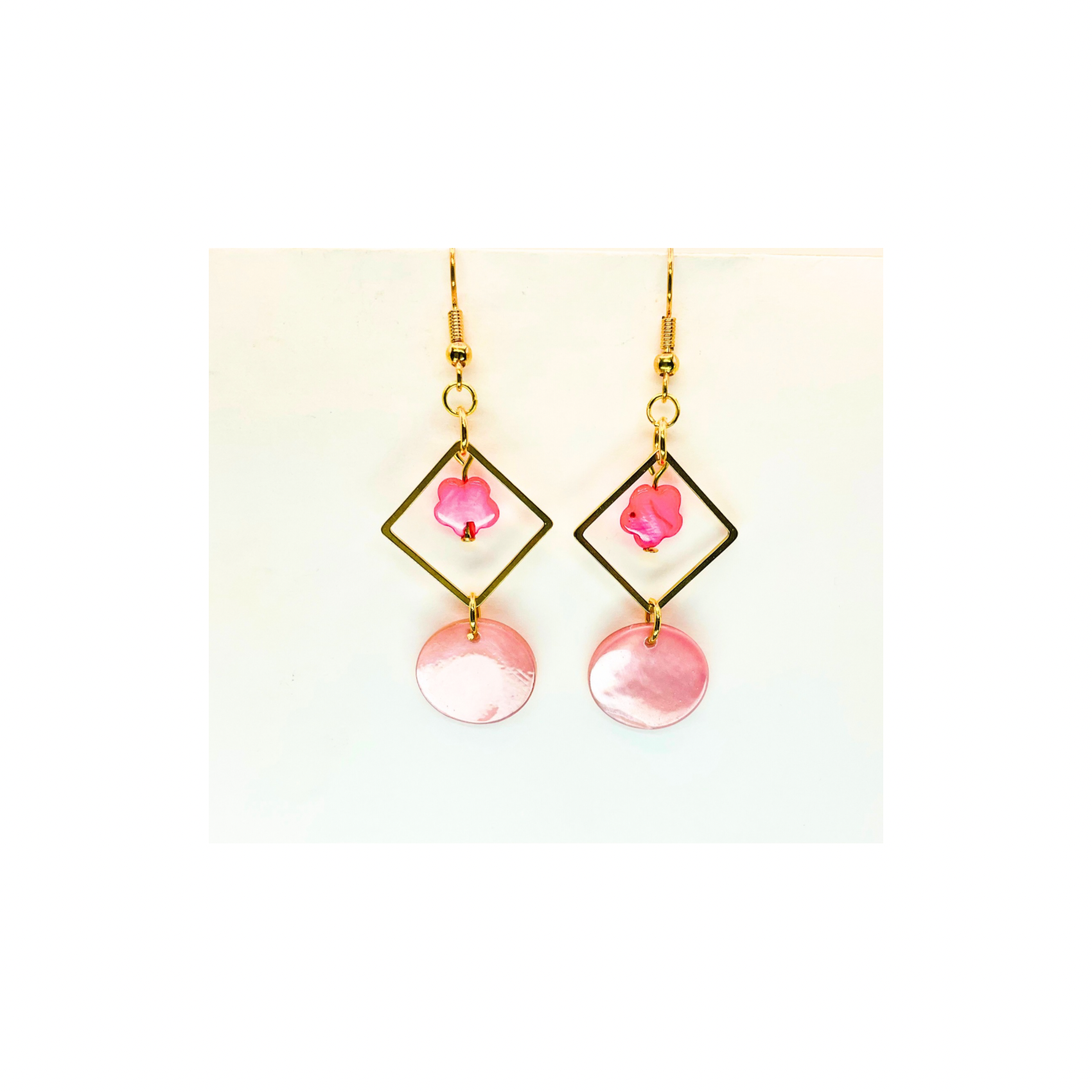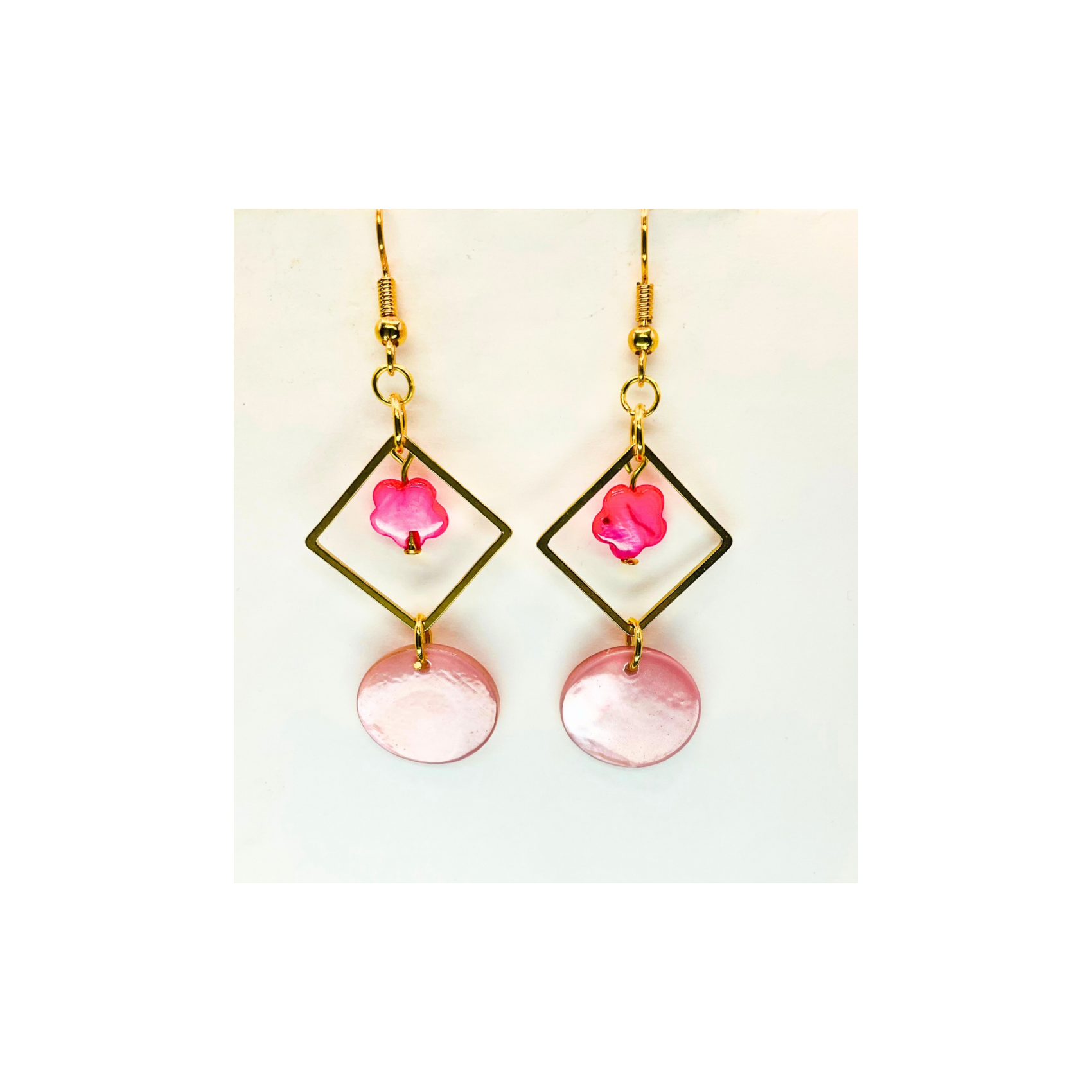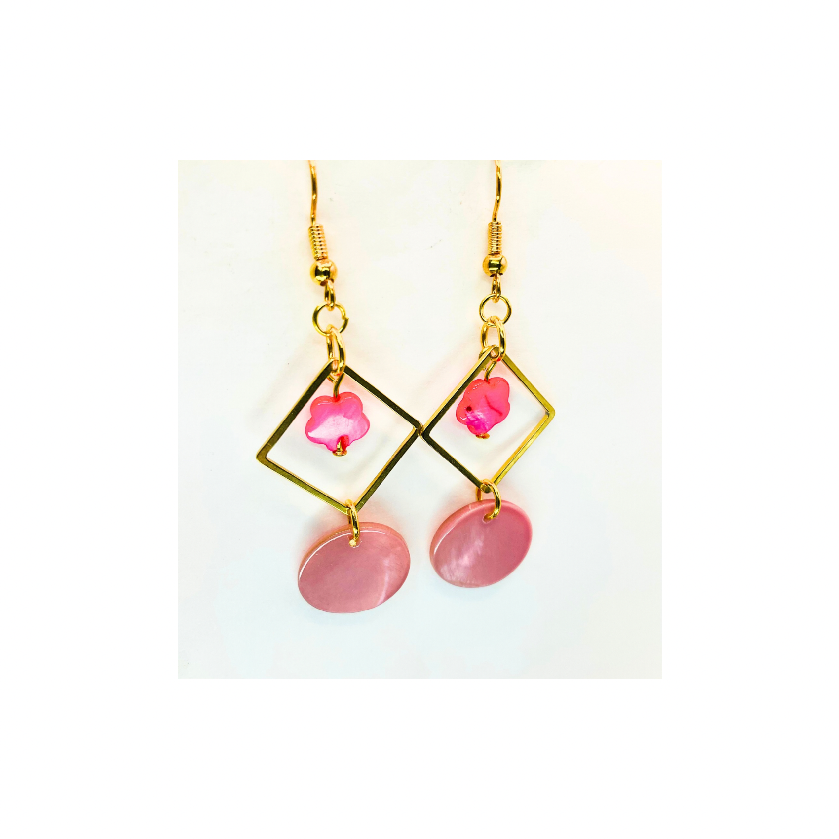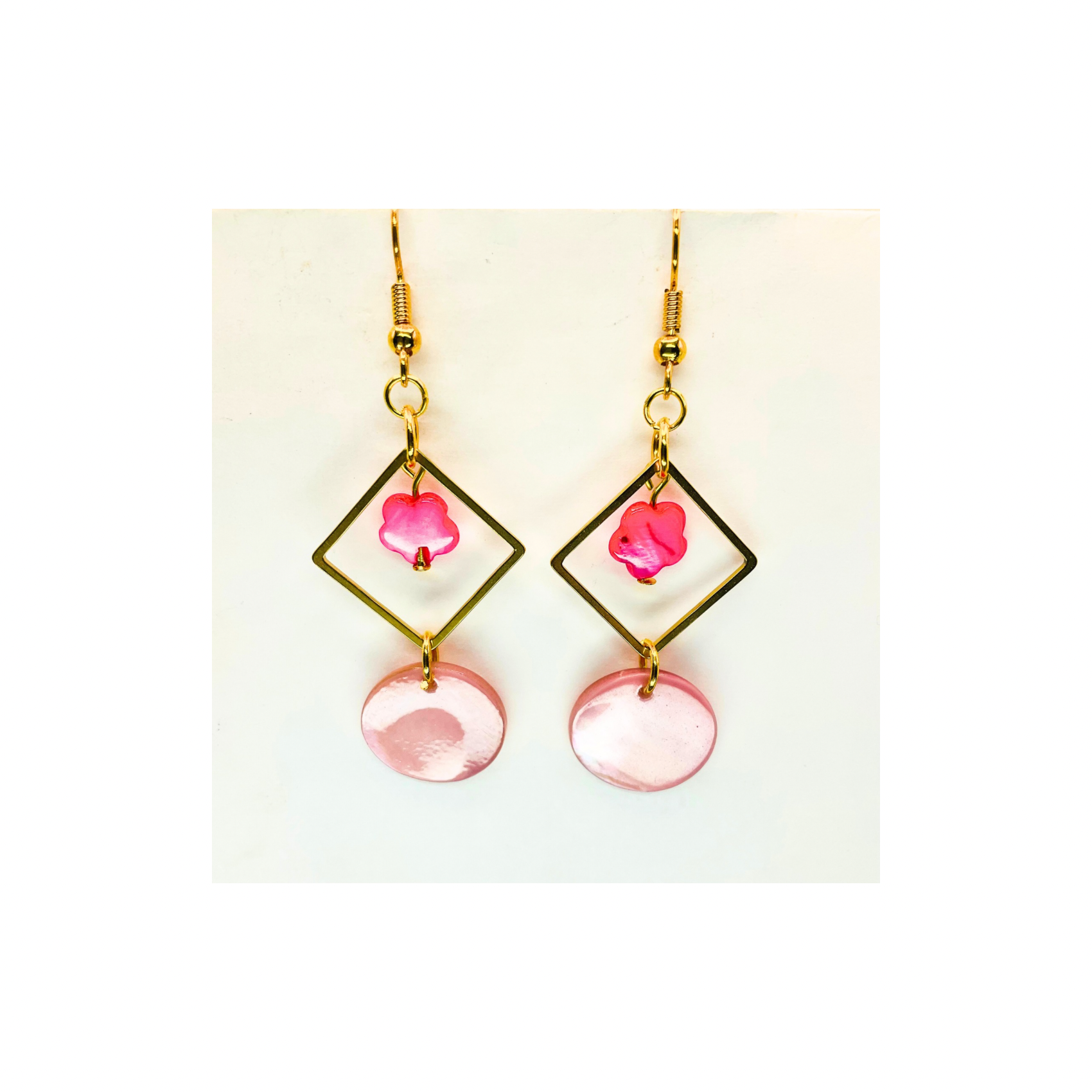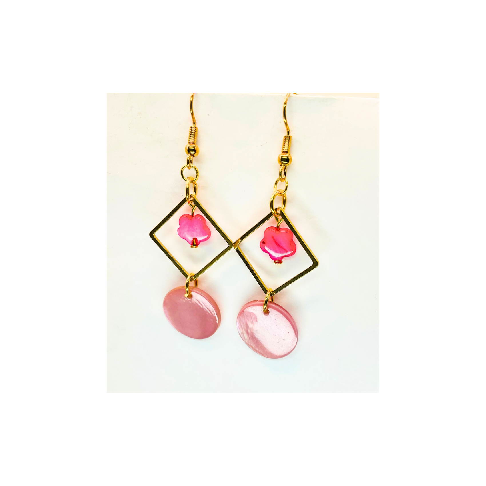 Pink Shell & Gold Square Earrings, Nautical Style Jewelry for Vacation, Great Gift for Her