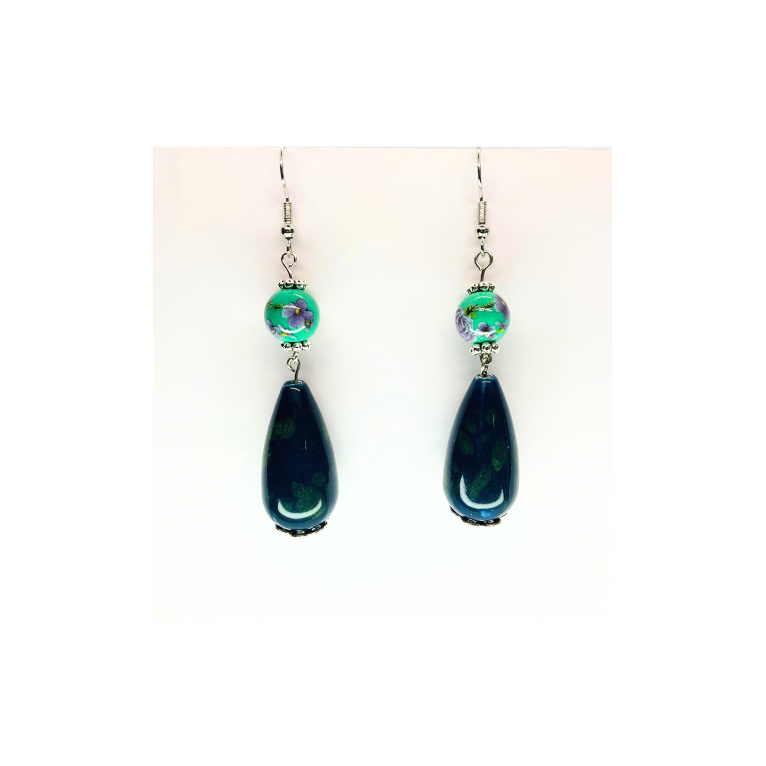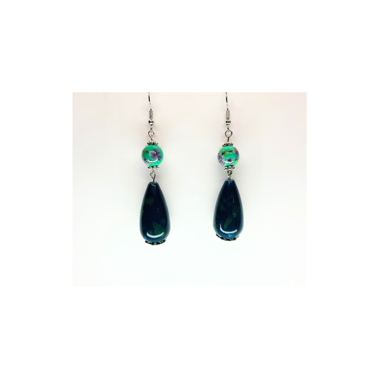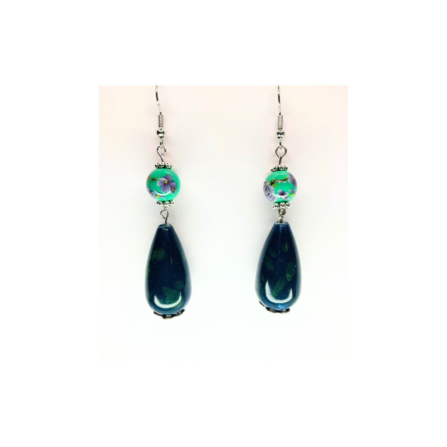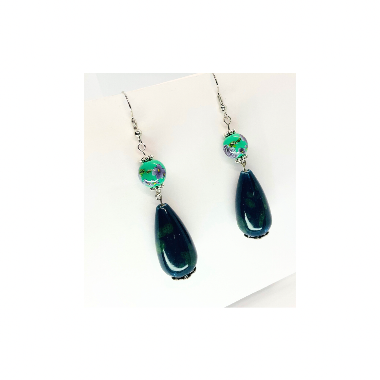Porcelain Bead Collection Teal Teardrop Dangle Earrings - Elegant Female Jewelry with Classic Porcelain Finish and Subtle Dangle Design