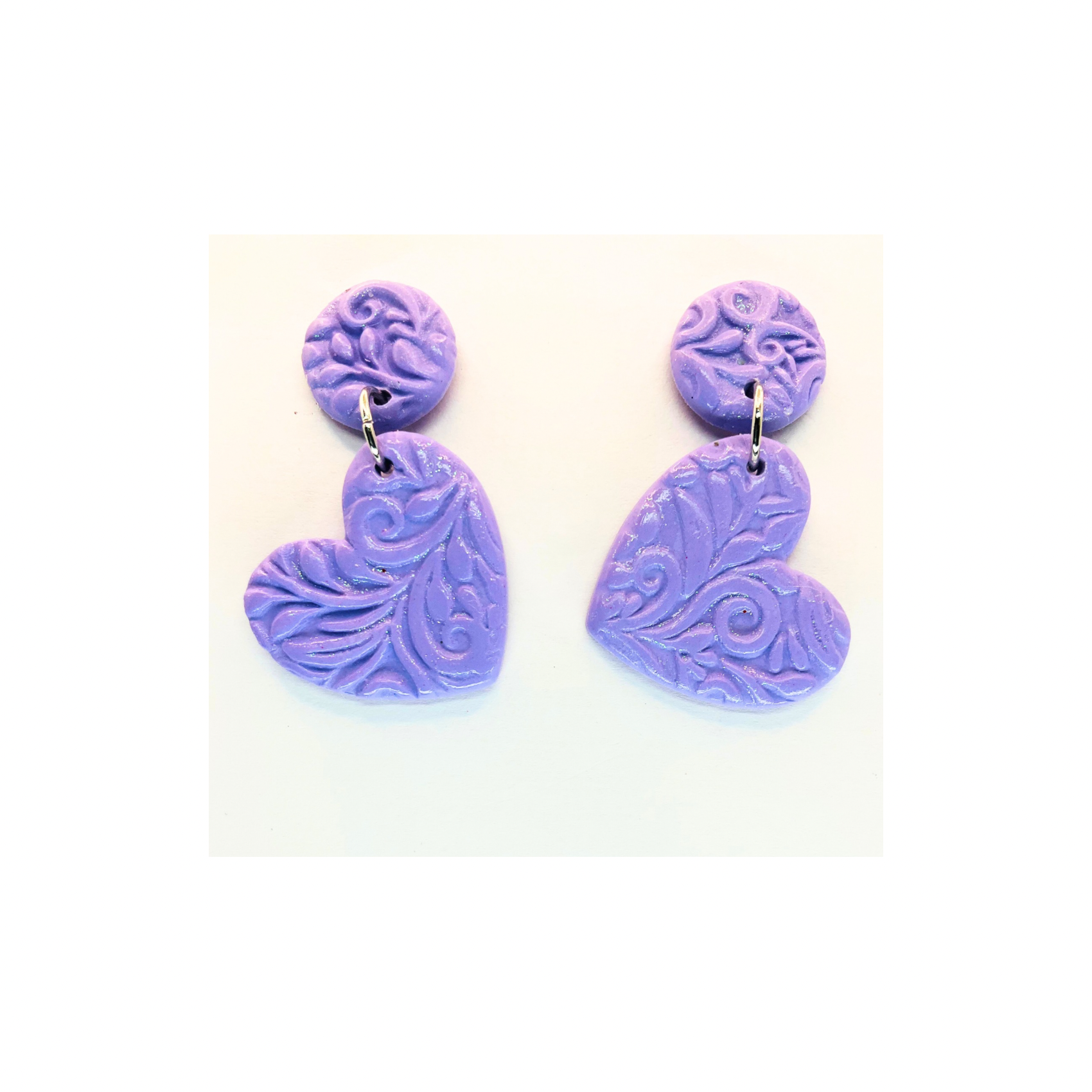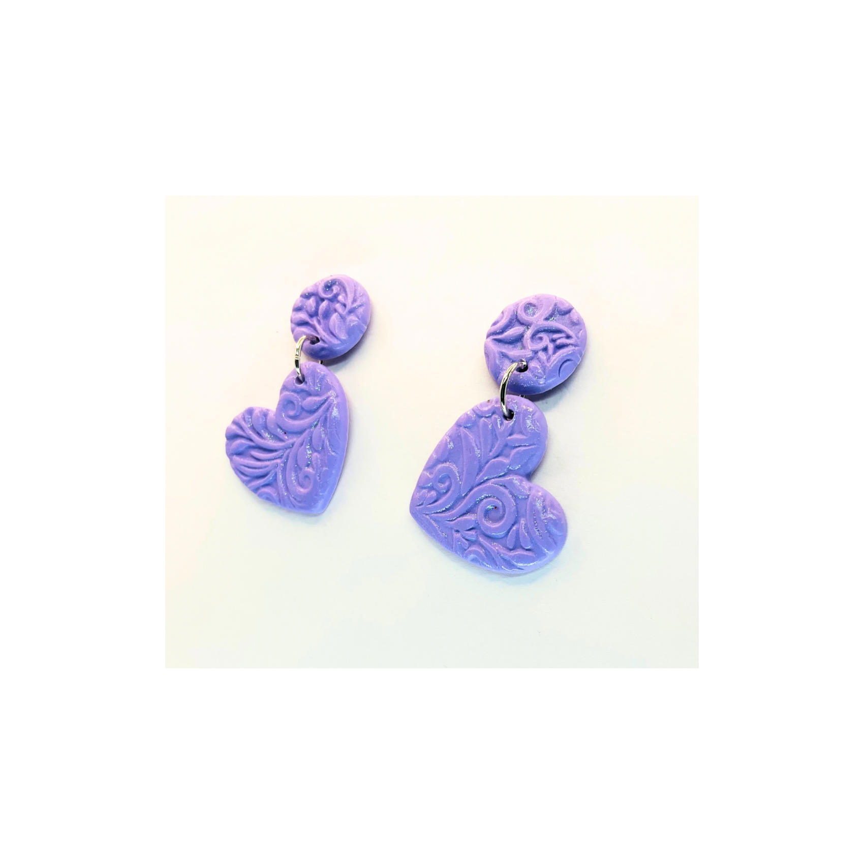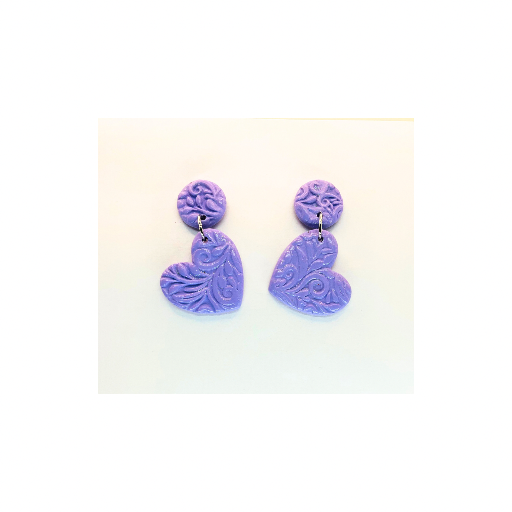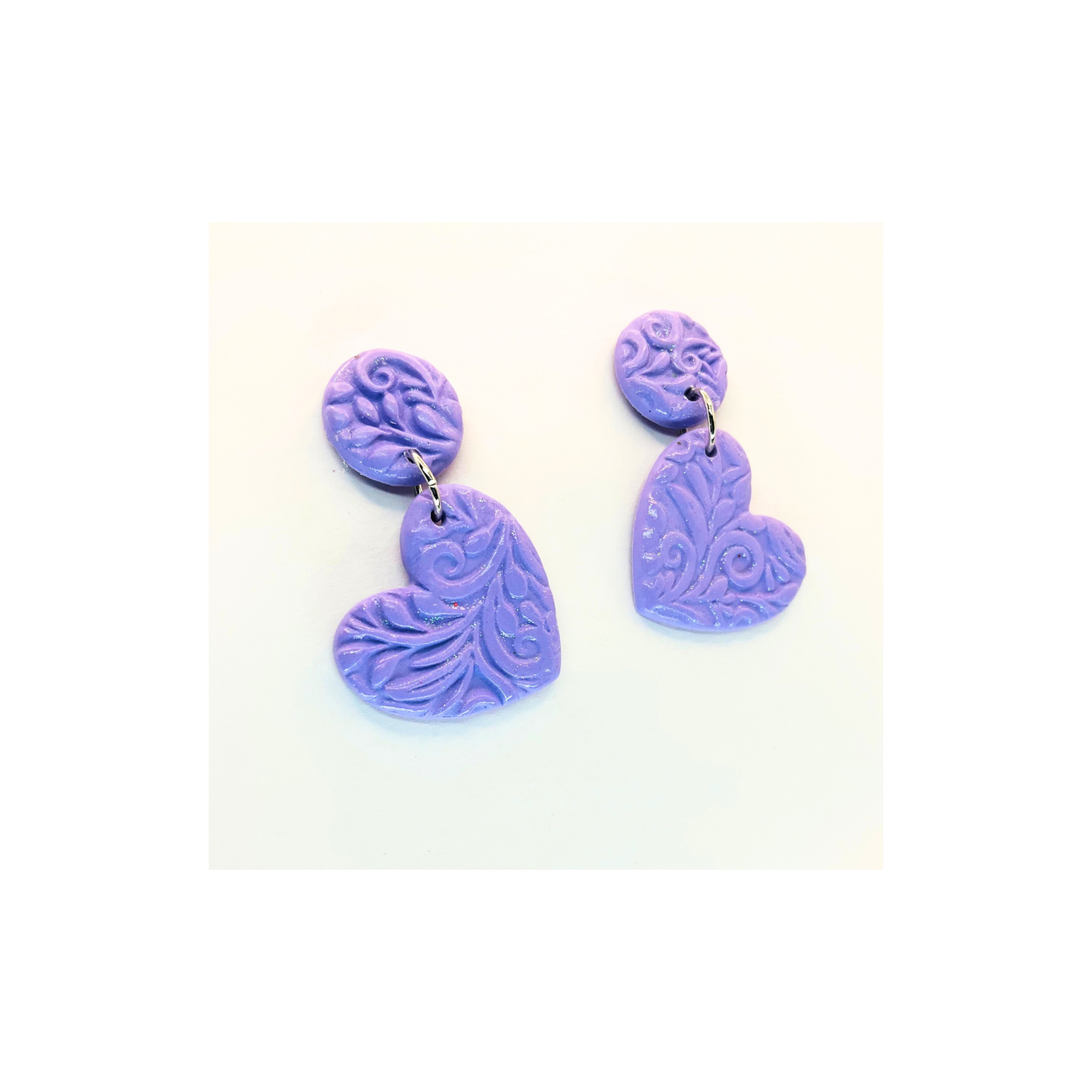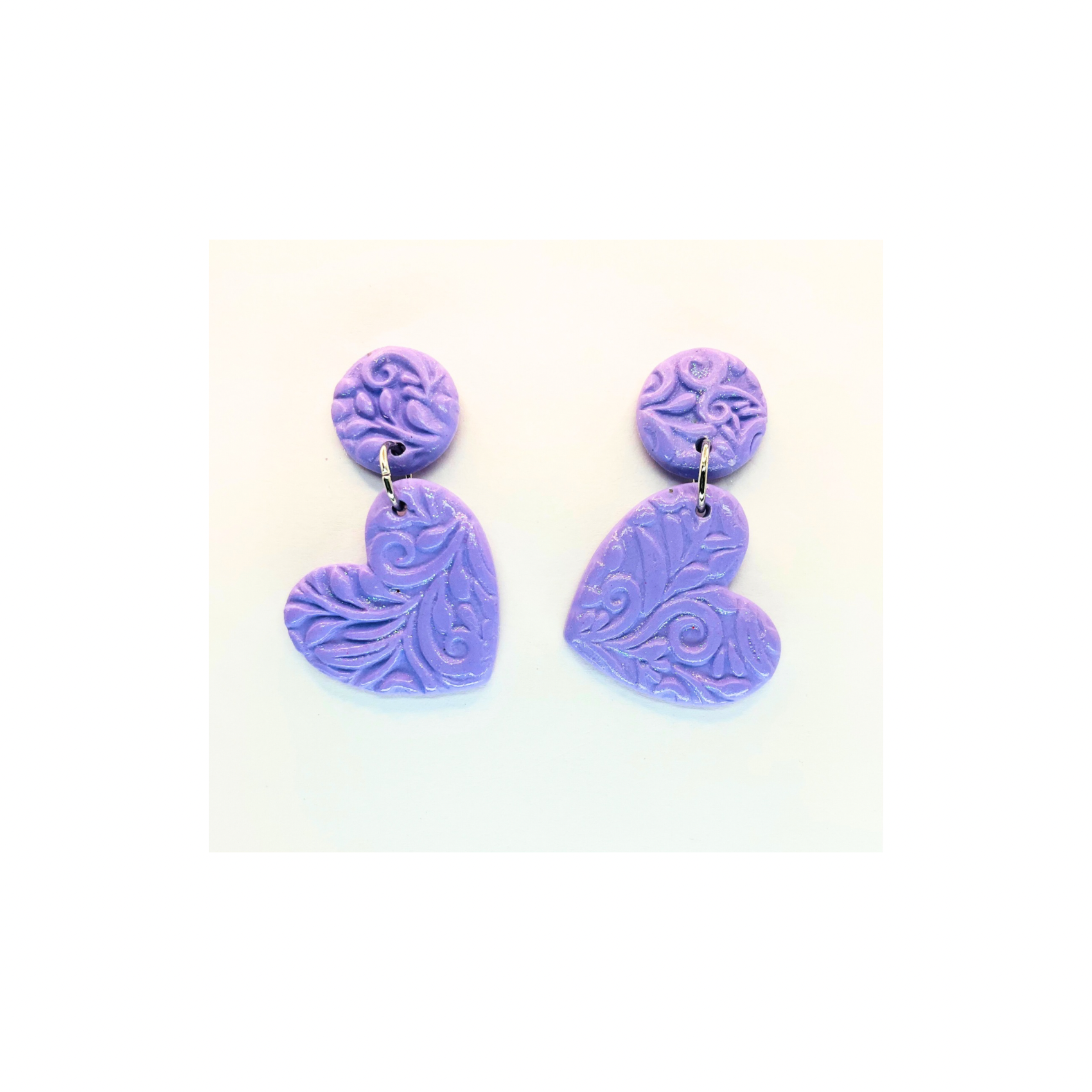 Stud Purple Heart Dangle Earrings with Cute Button Studs – Romantic Jewelry Gift for Women