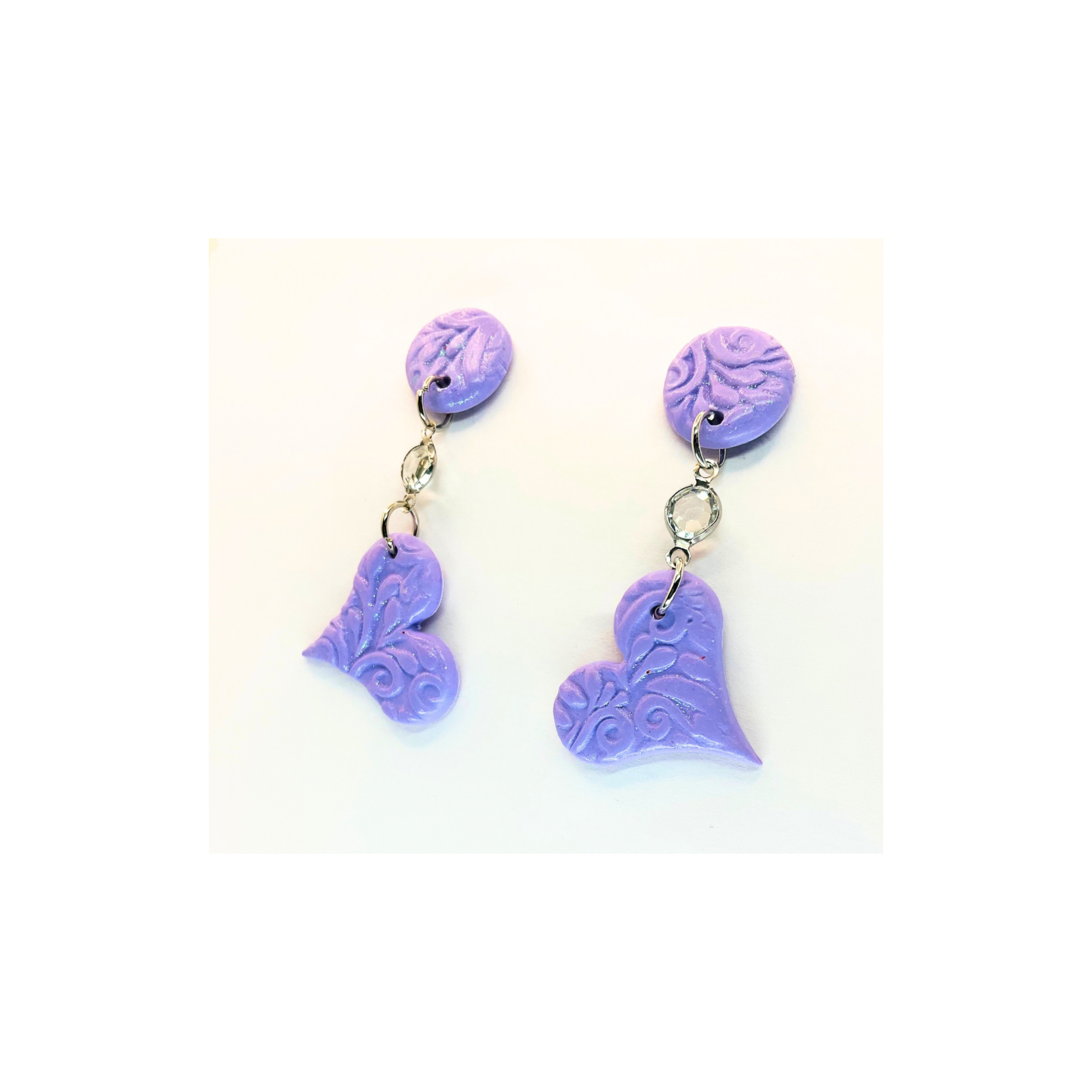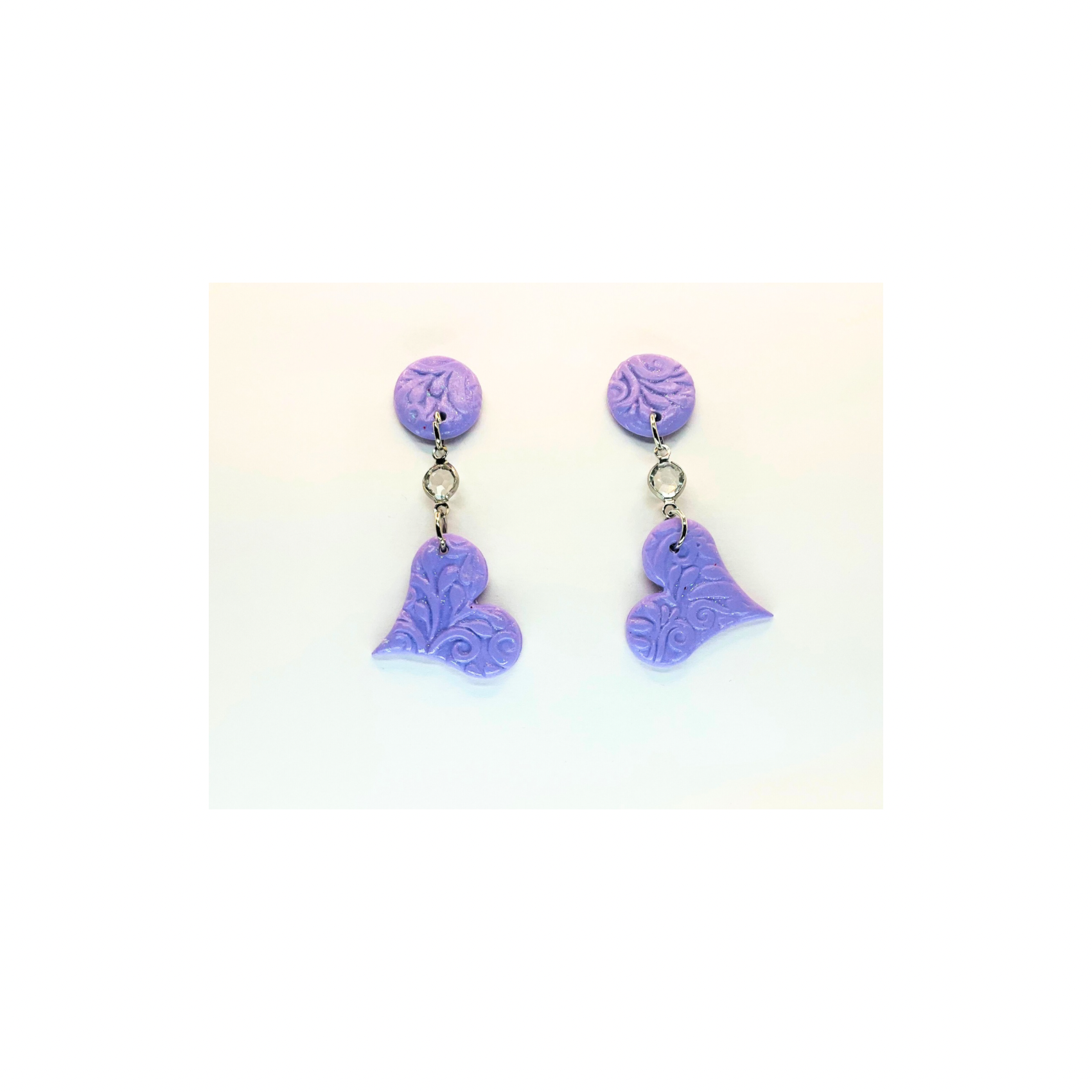 Purple Heart Dangle with Rhinestone and Button Stud Earrings