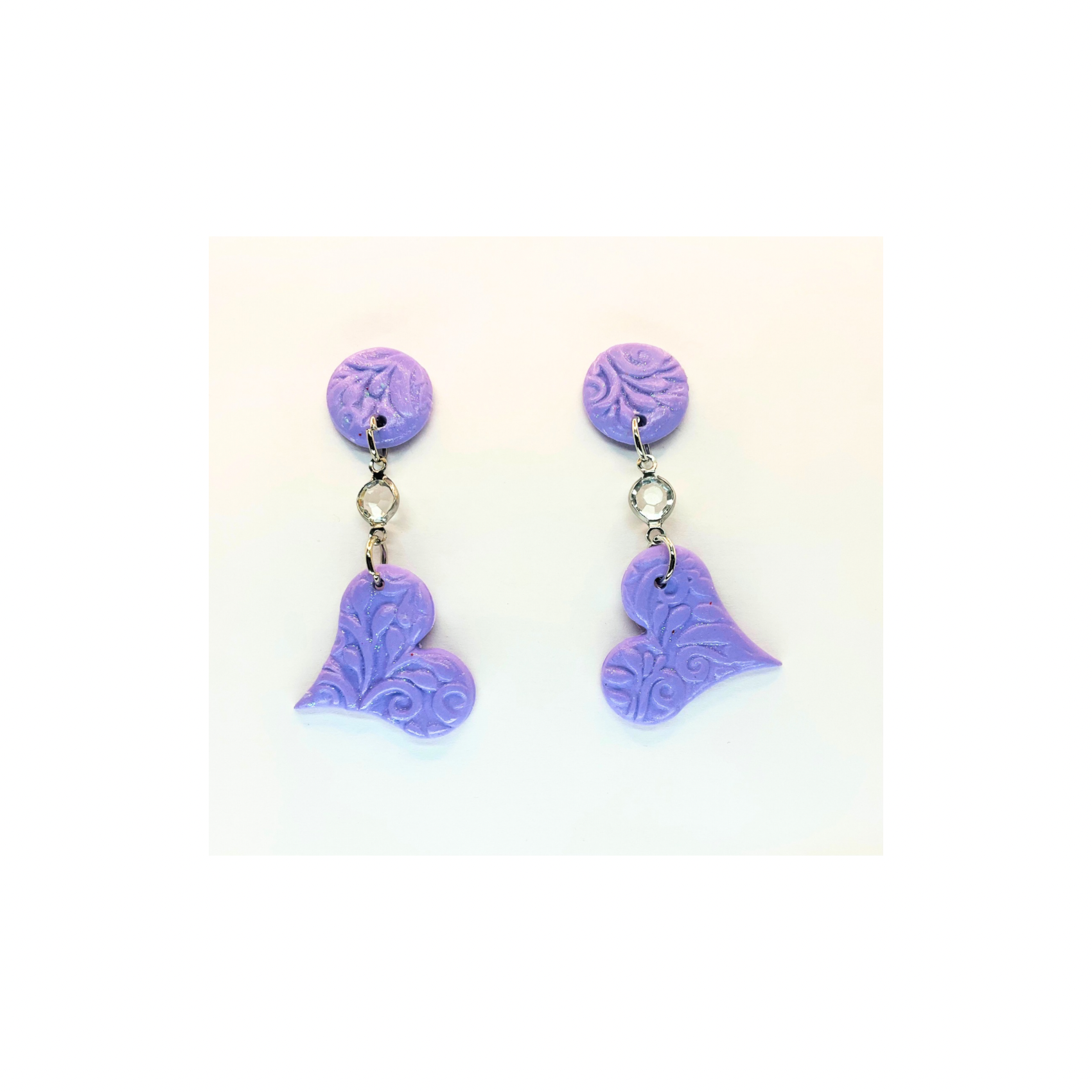 Stud Charm Purple Heart Dangle Earrings with Sparkling Rhinestones and Button Accents, Stylish Accessory for Women, Great Gift Idea