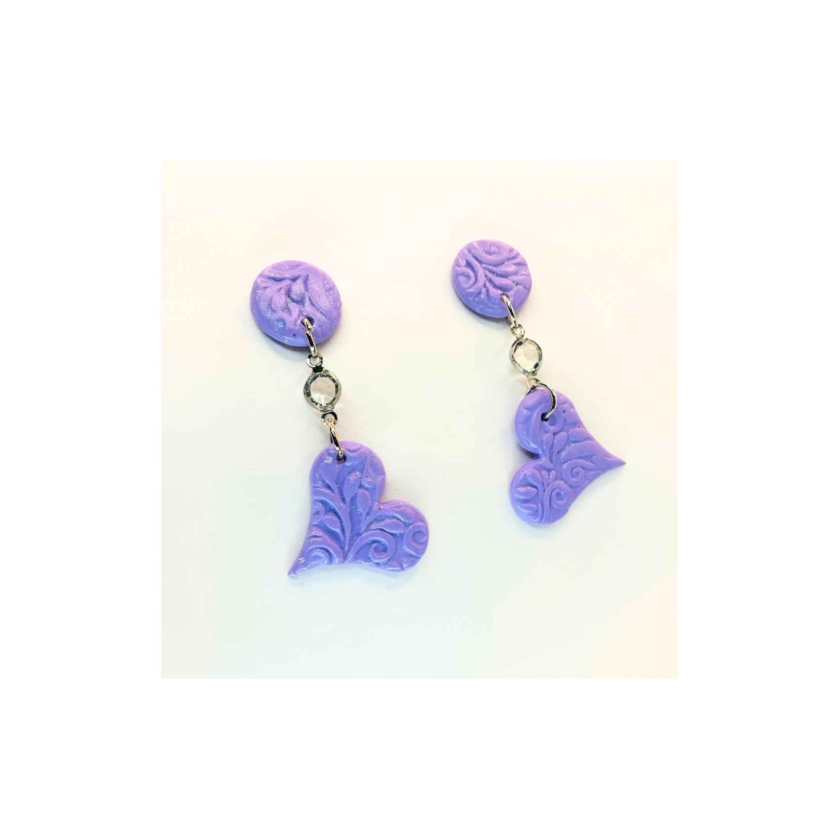 Stud Elegant Purple Heart Dangle Earrings with Rhinestones and Button Details, Perfect for Gift Giving, Ideal for Birthdays and Special Occasions