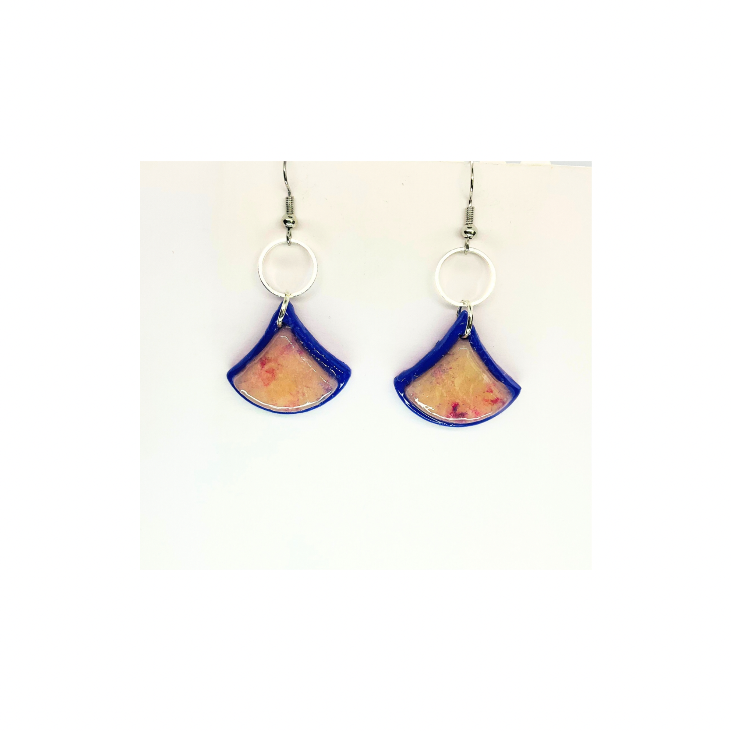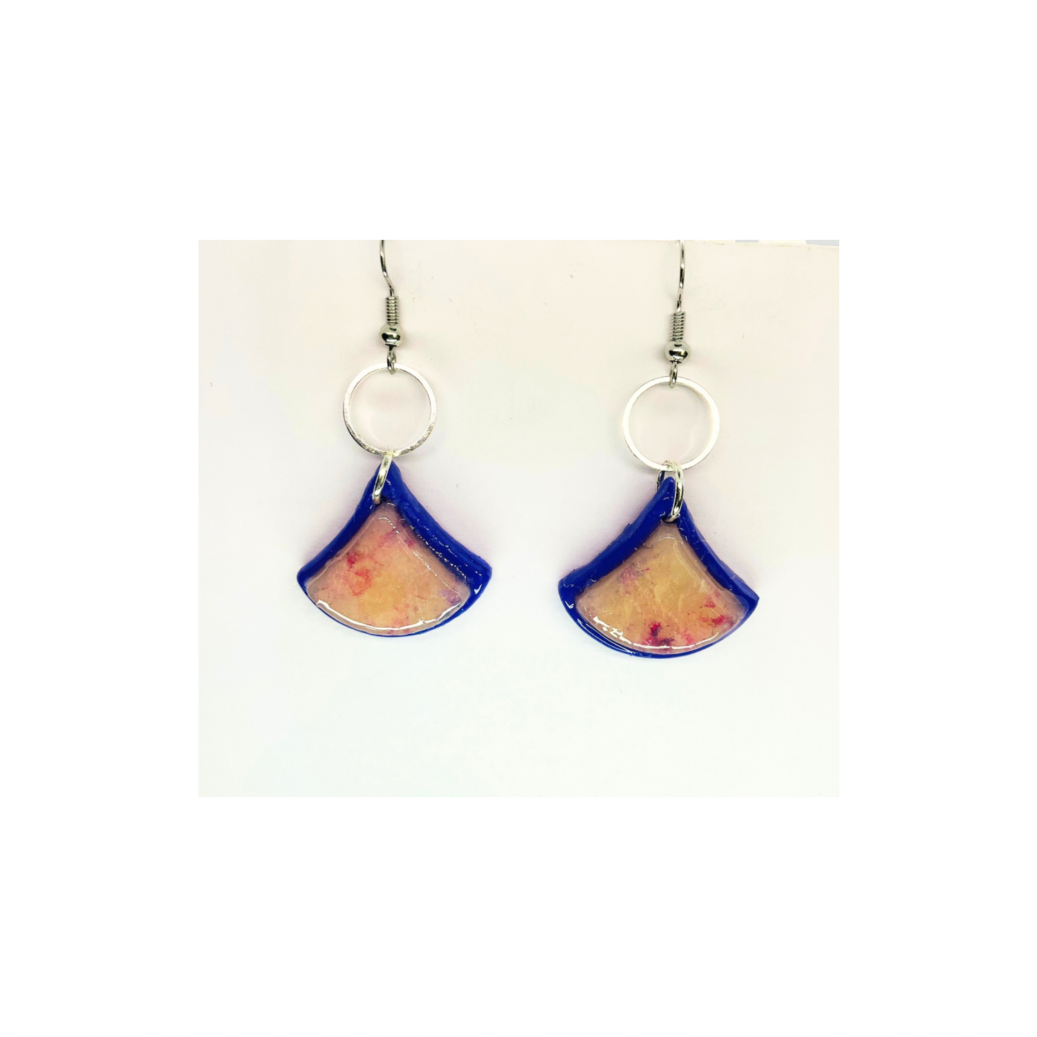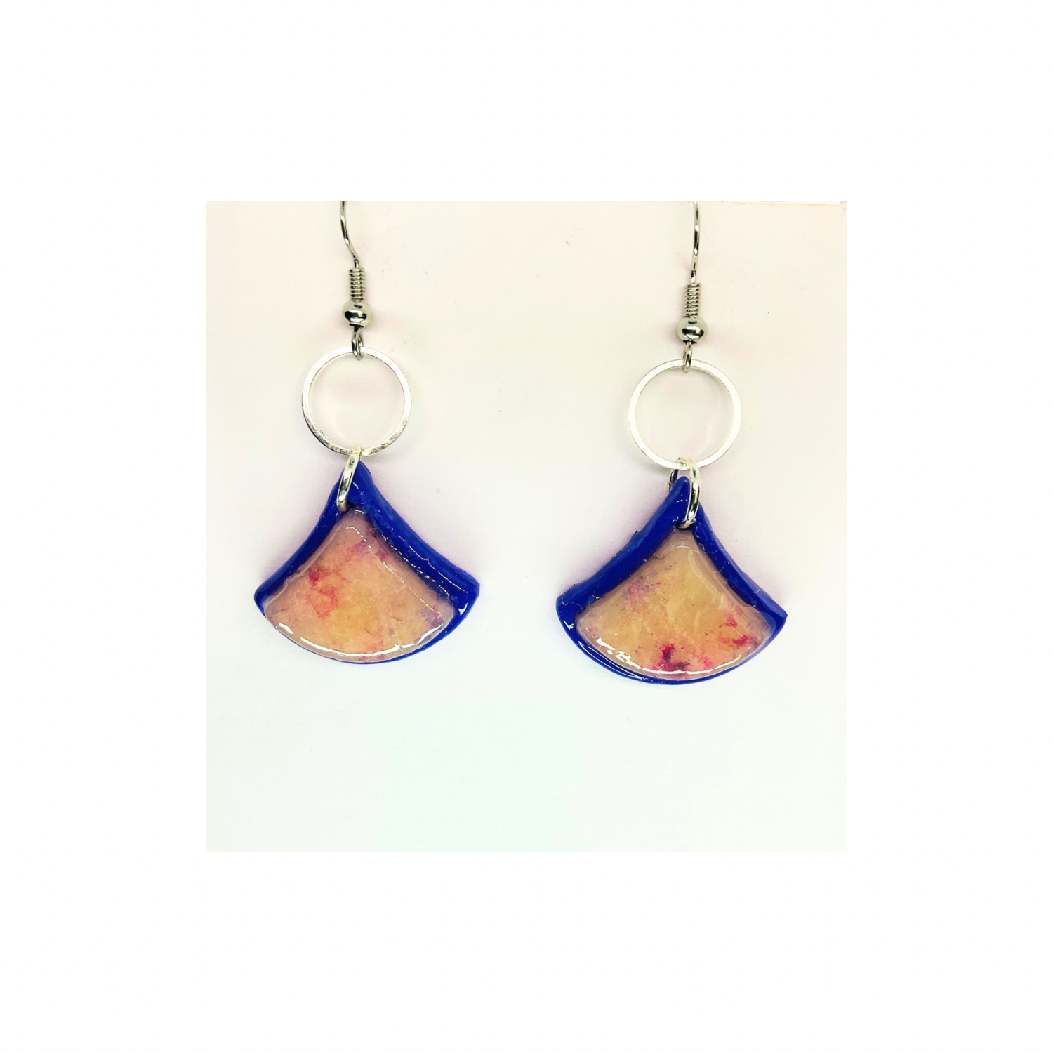 Purple Translucent Layered Fan-Shaped Dangle Earrings with Circular Silver Hooks and Colorful Design for Women's Fashion Jewelry