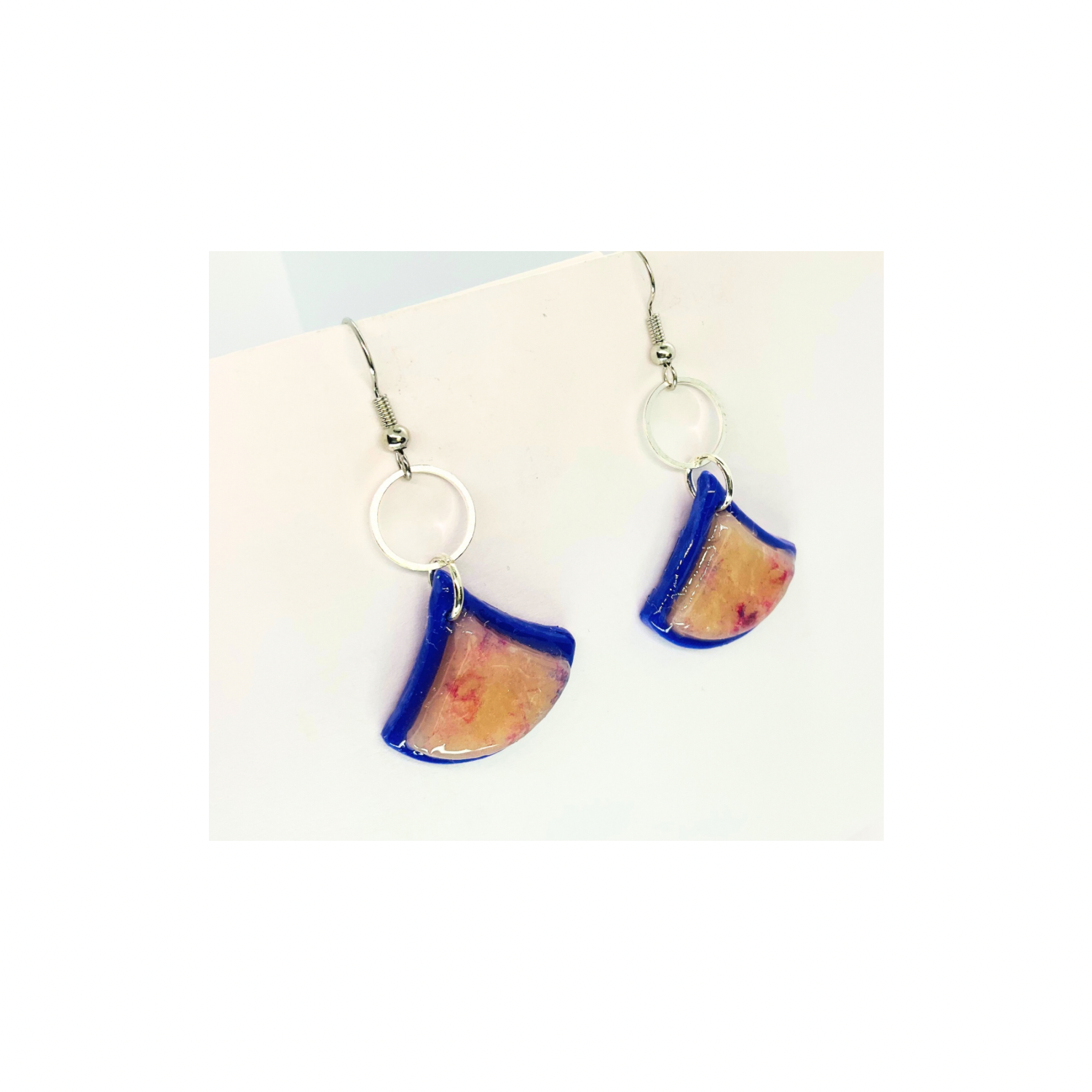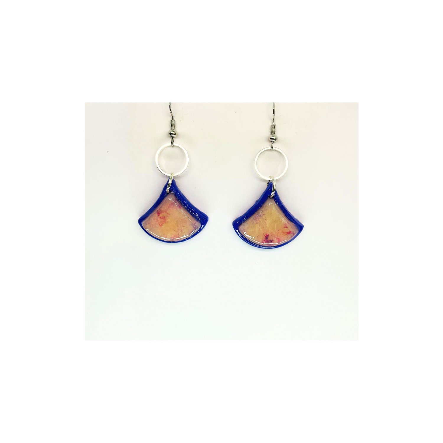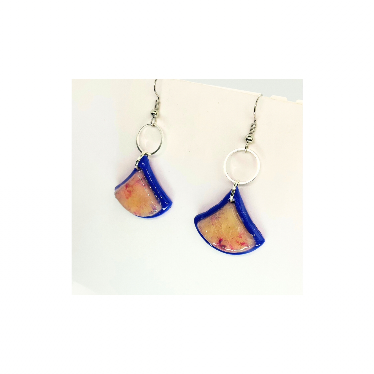 Purple Translucent Layered Fan-Shaped Dangle Earrings with Circular Silver Hooks and Colorful Design for Women's Fashion Jewelry
