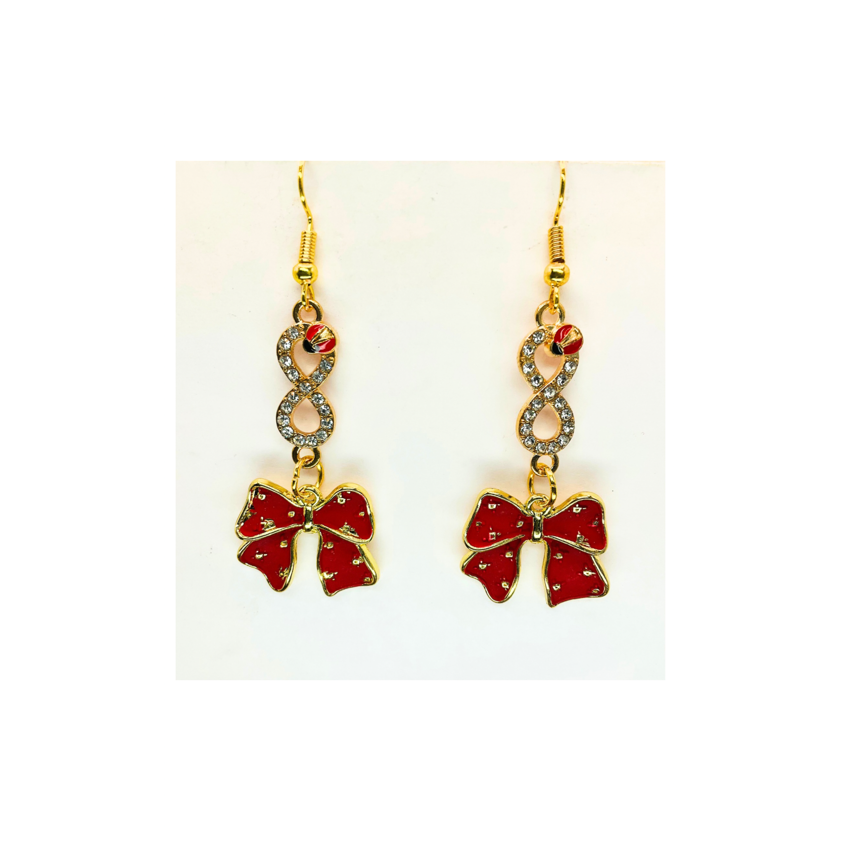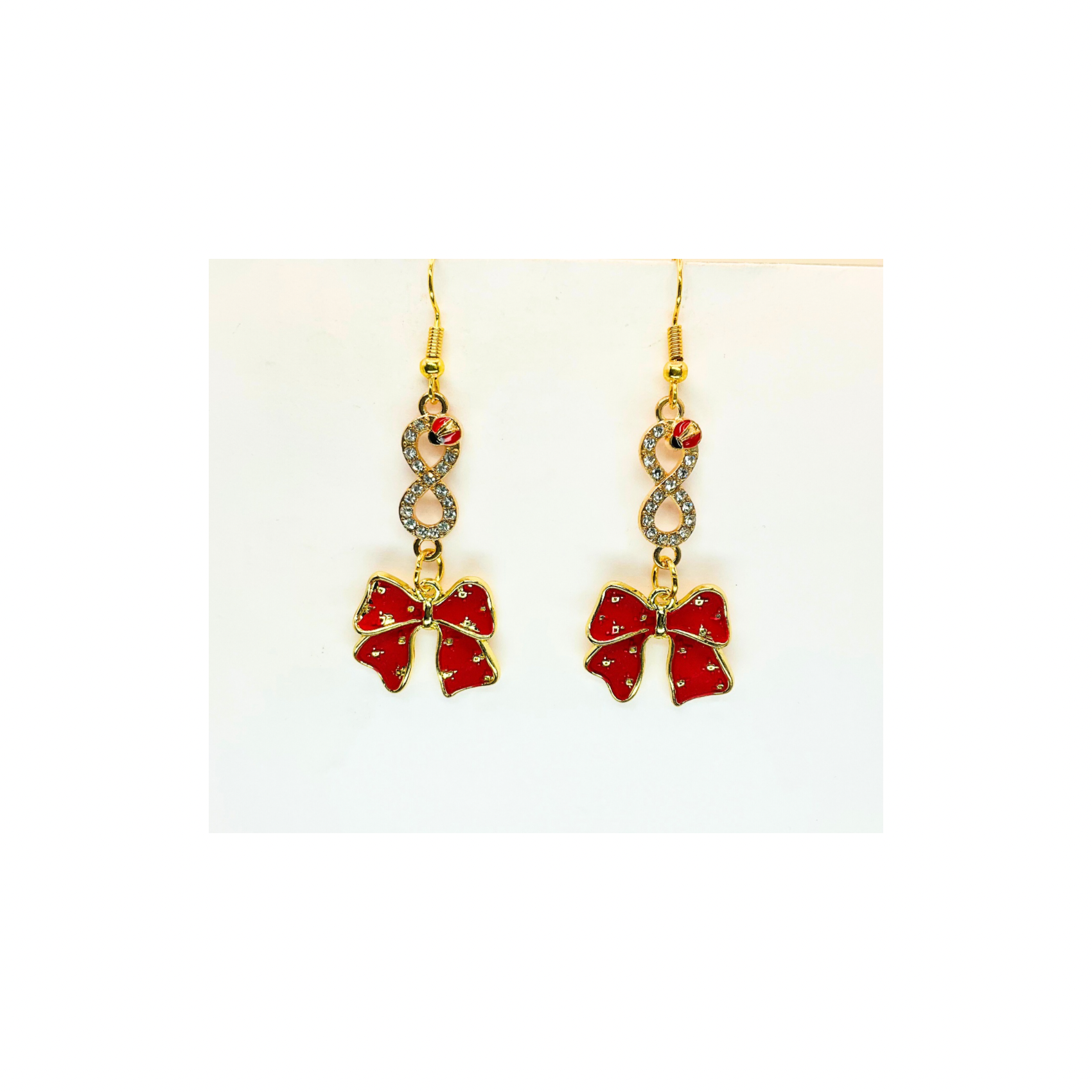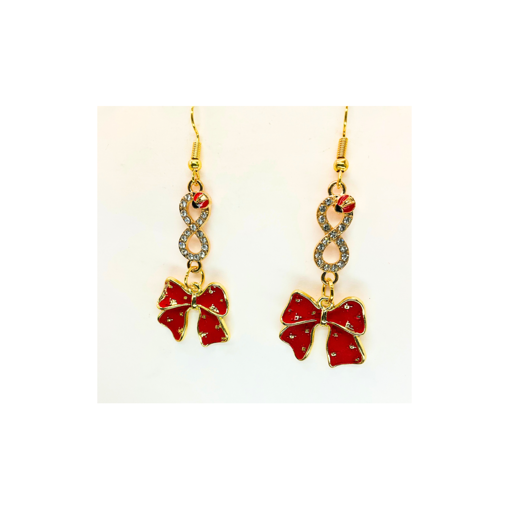 Dangle Earrings Featuring Red and Gold Bow and Rhinestone Ladybug, Fashion Jewelry for Women, Great Gift for Her