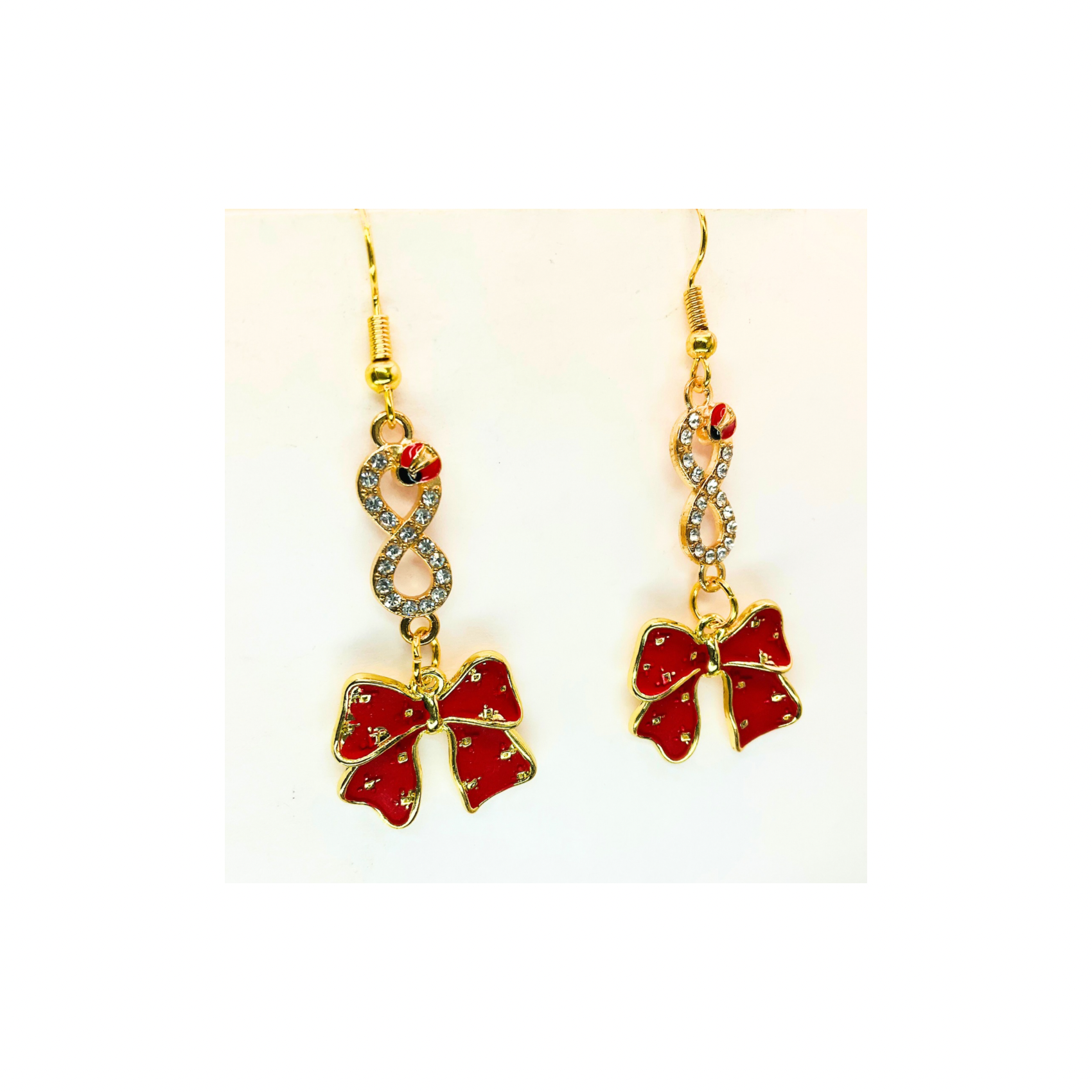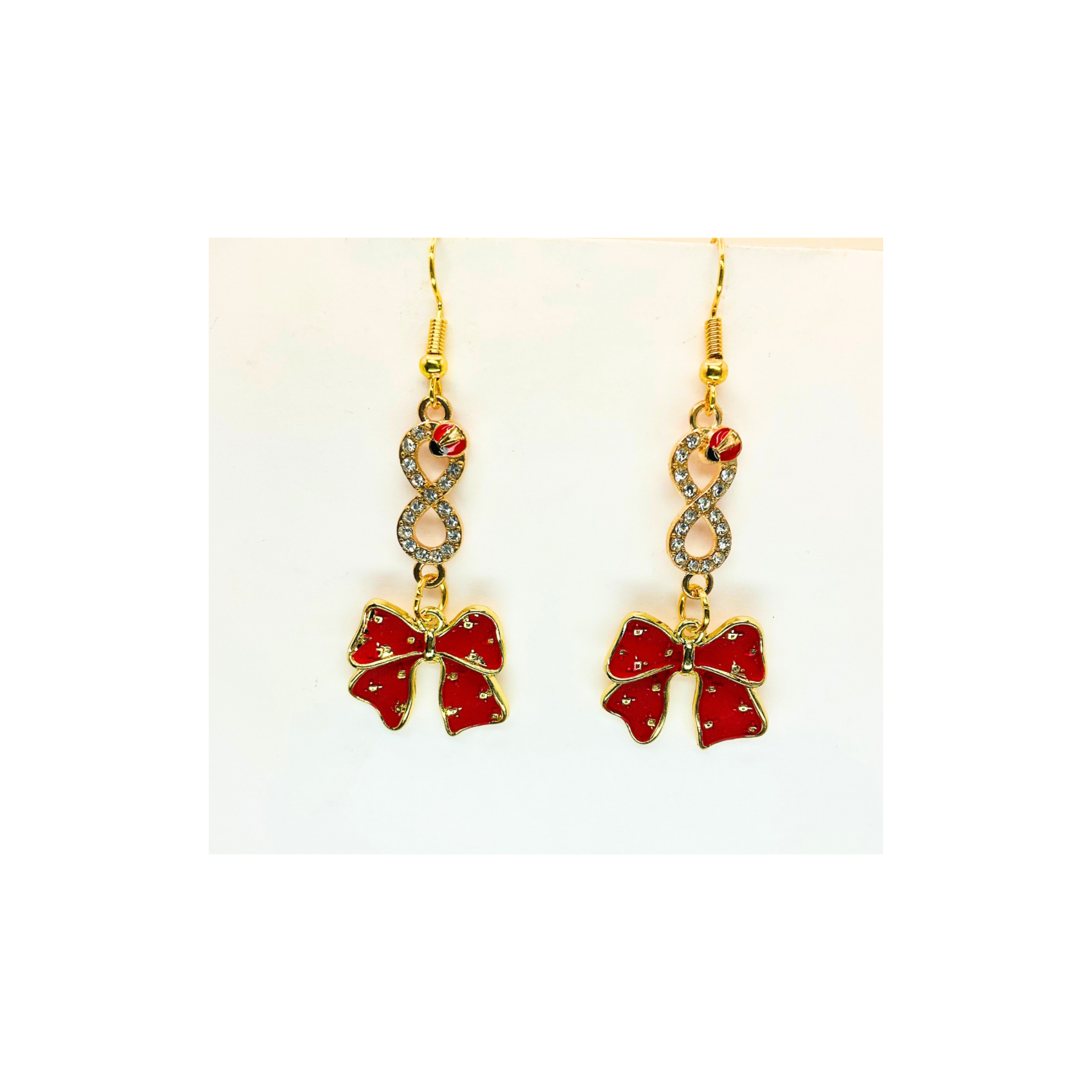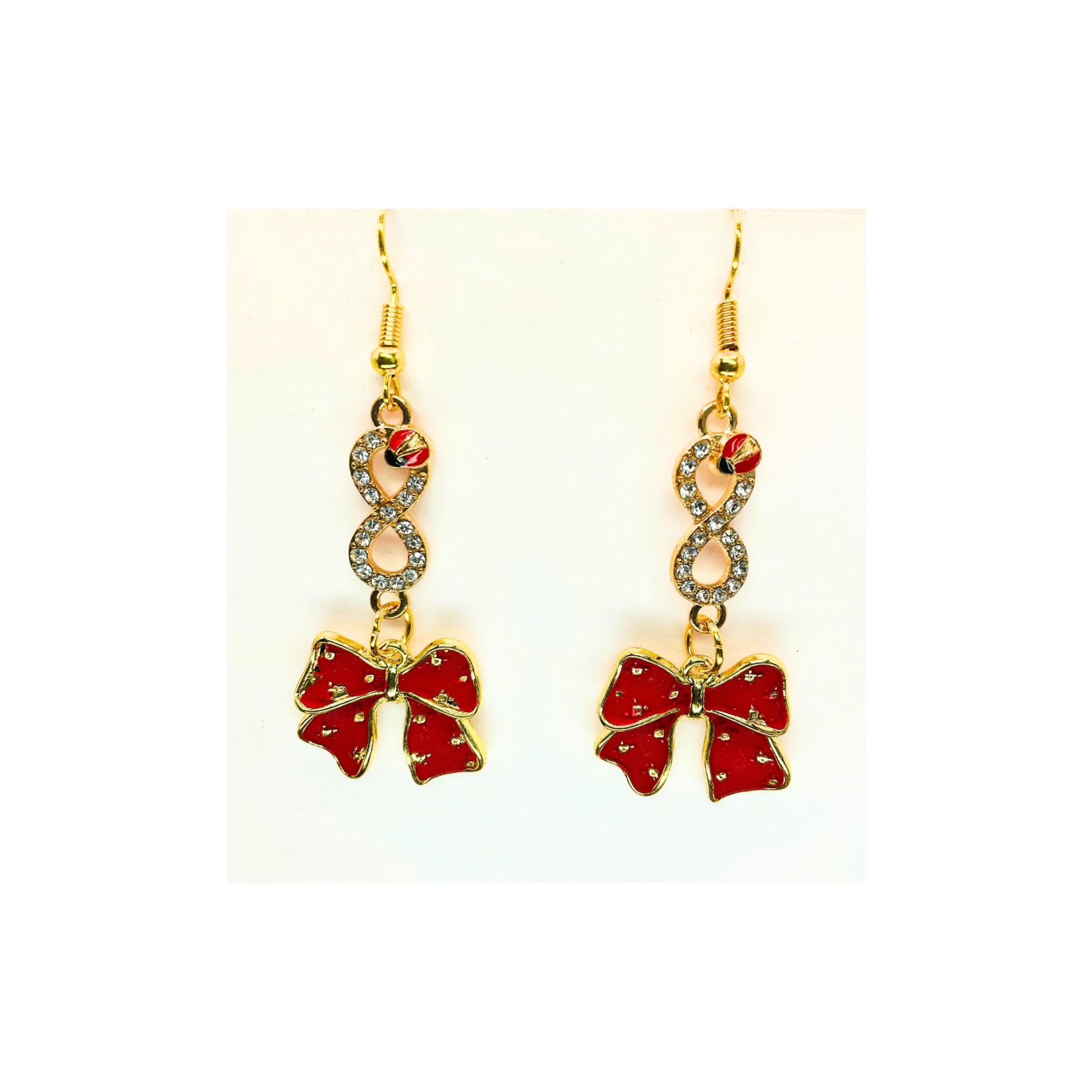 Dangle Earrings Featuring Red and Gold Bow and Rhinestone Ladybug, Fashion Jewelry for Women, Great Gift for Her