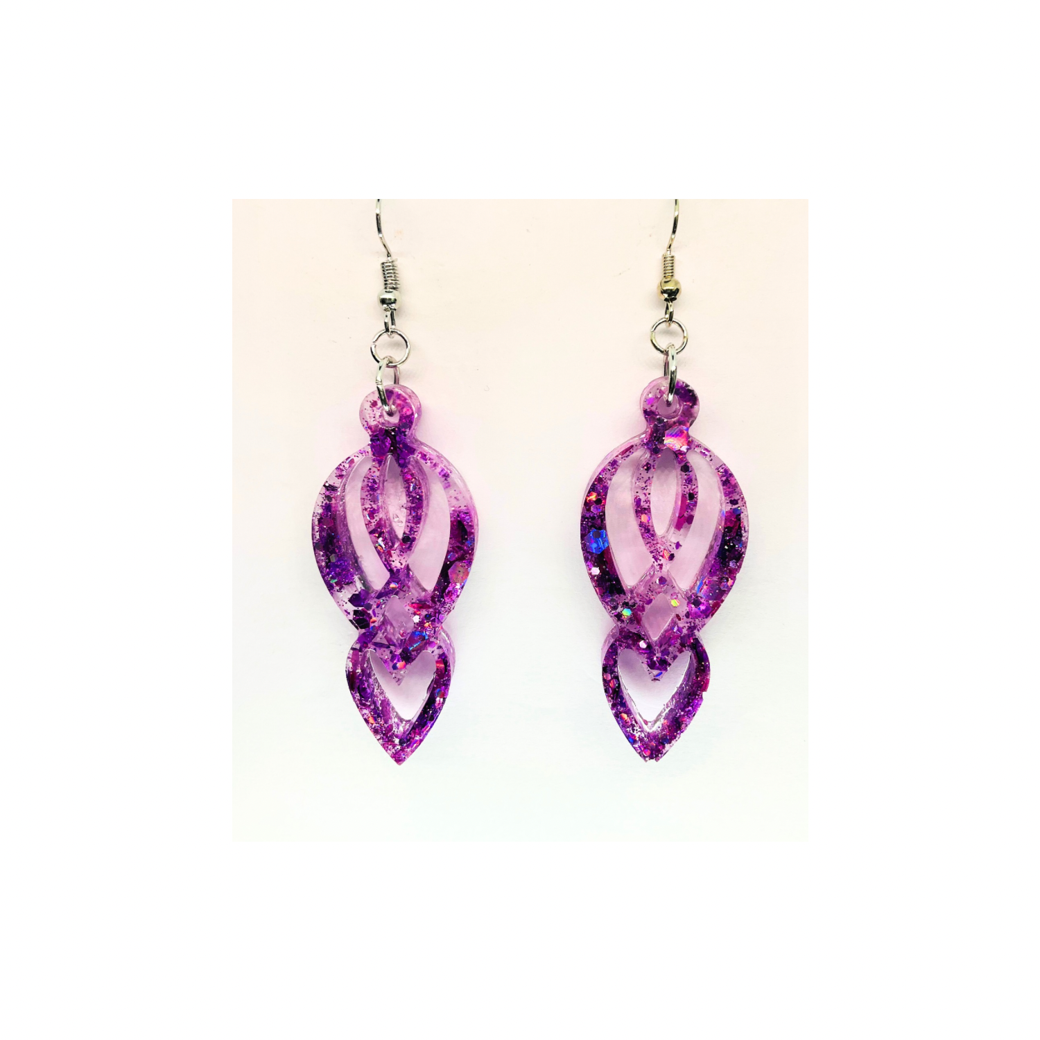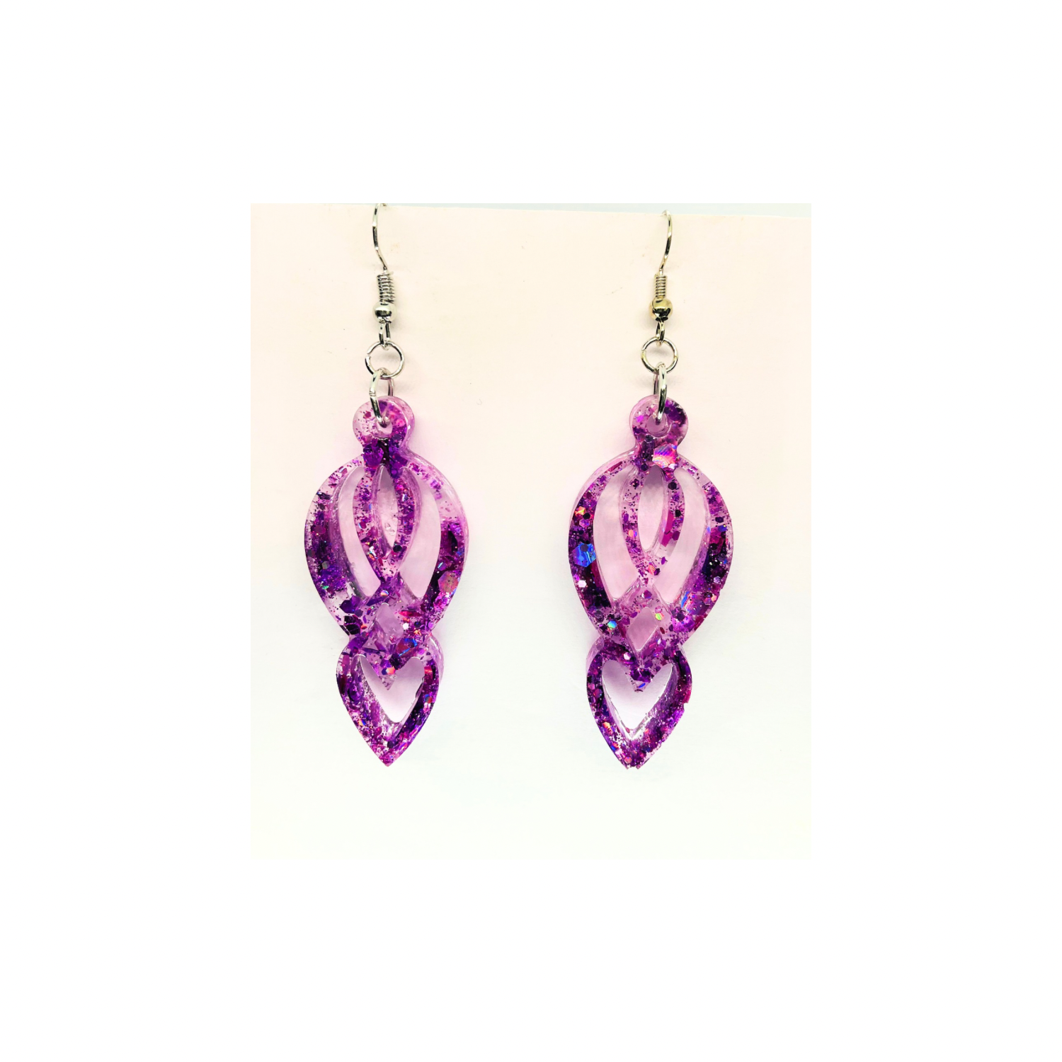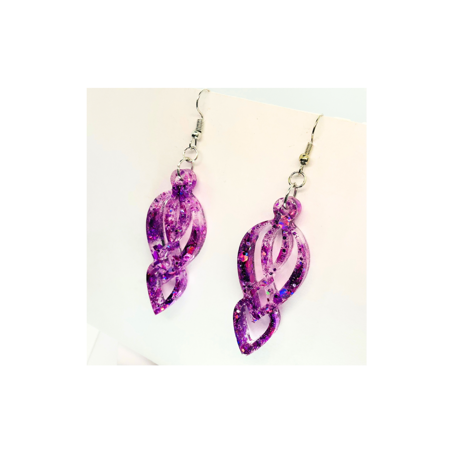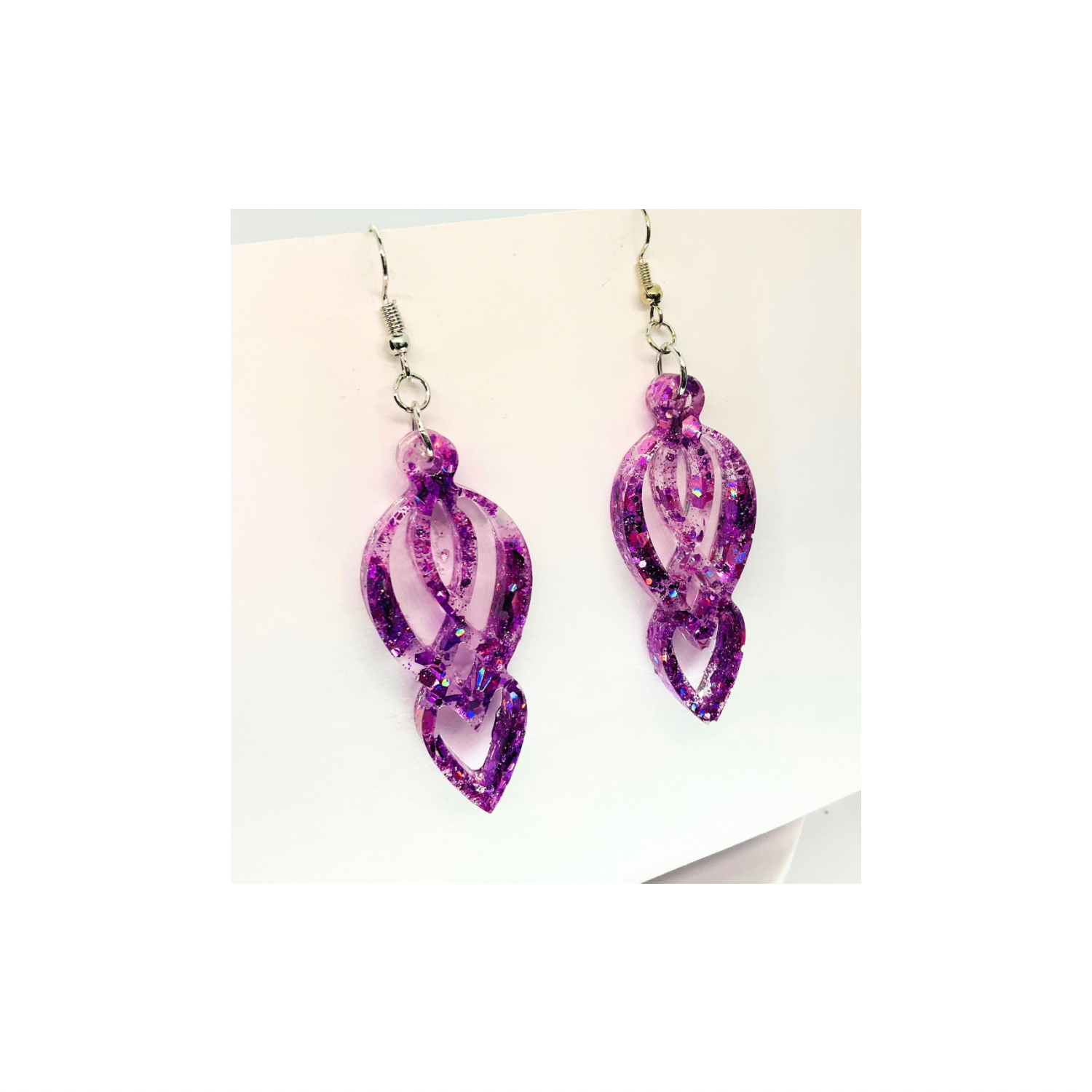 Made from resin and purple holographic glitter, these earrings are handcrafted. Each piece is unique, ensuring no two sets are identical. The silver wire adds a refined finish. Every item is crafted with care, fun, and love.