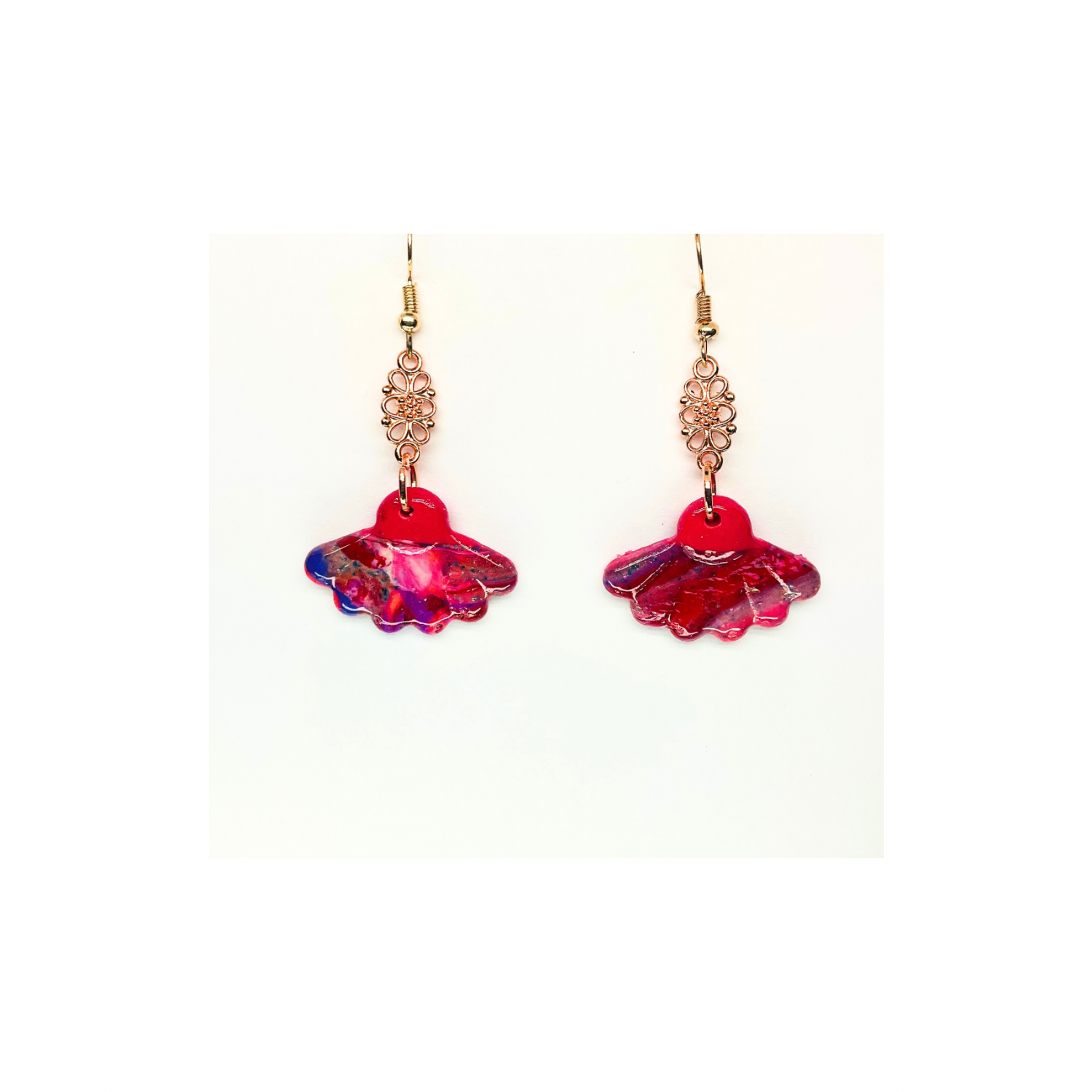 Rose Gold Collection Fan-Style Dangle Earrings for Female - Pink Floral Design Earrings with Elegant Fan Style Dangle