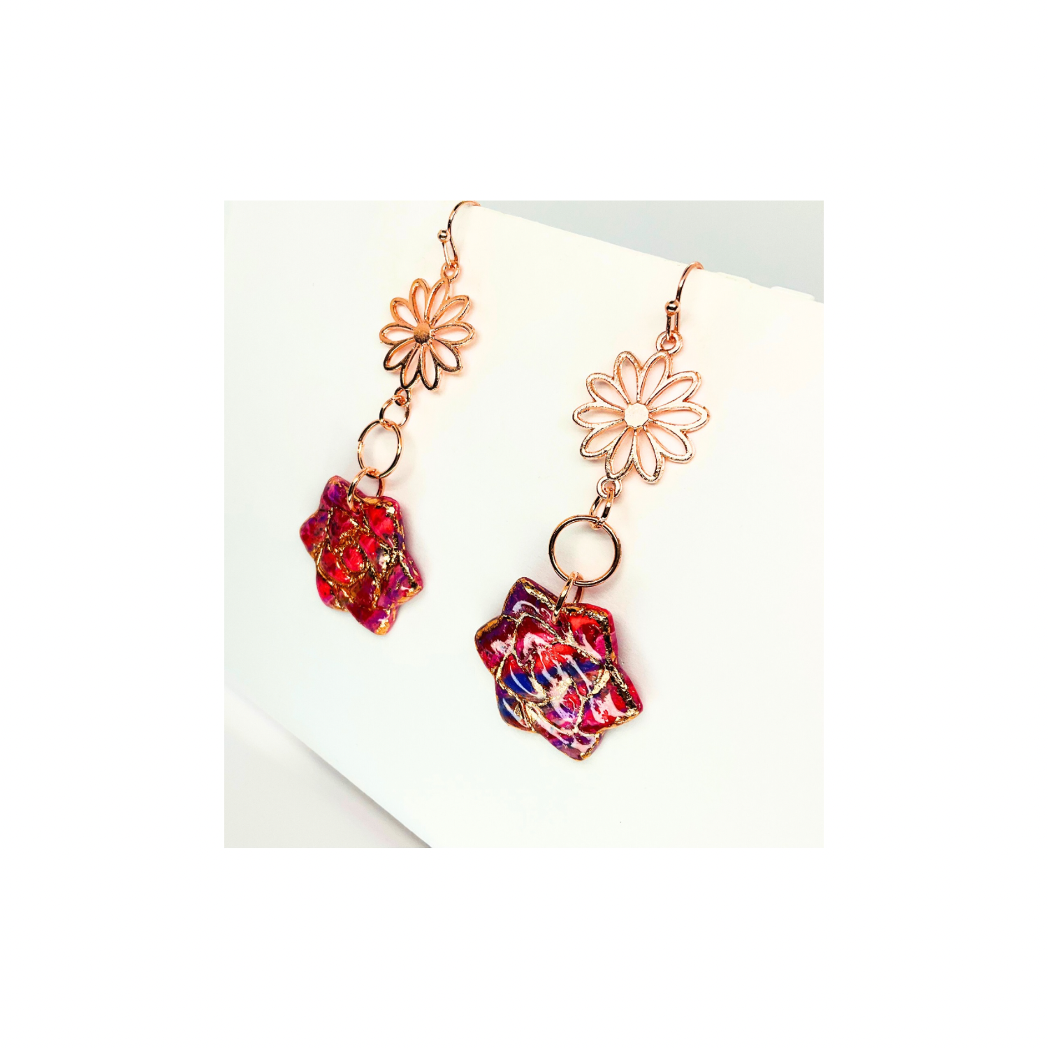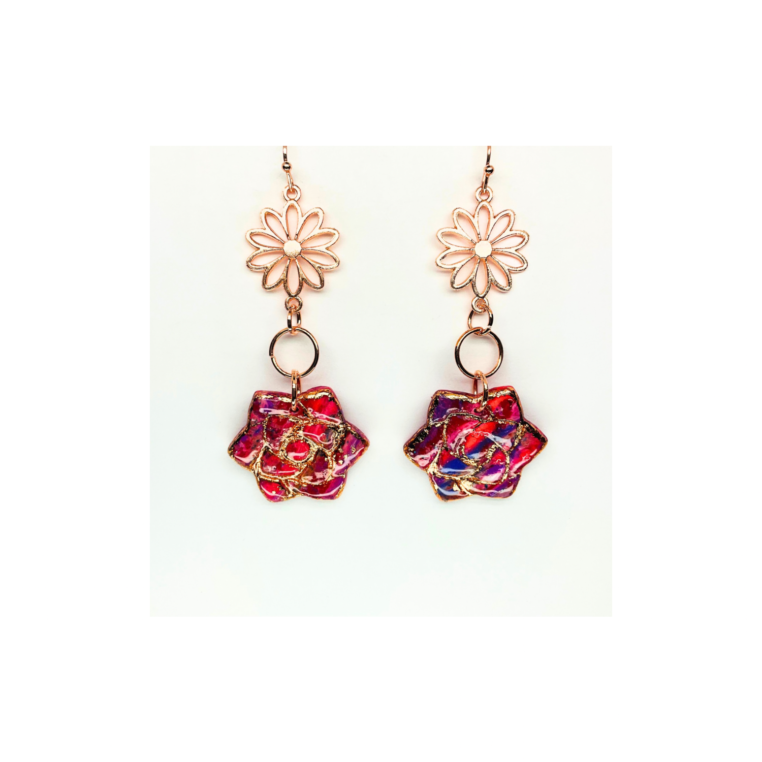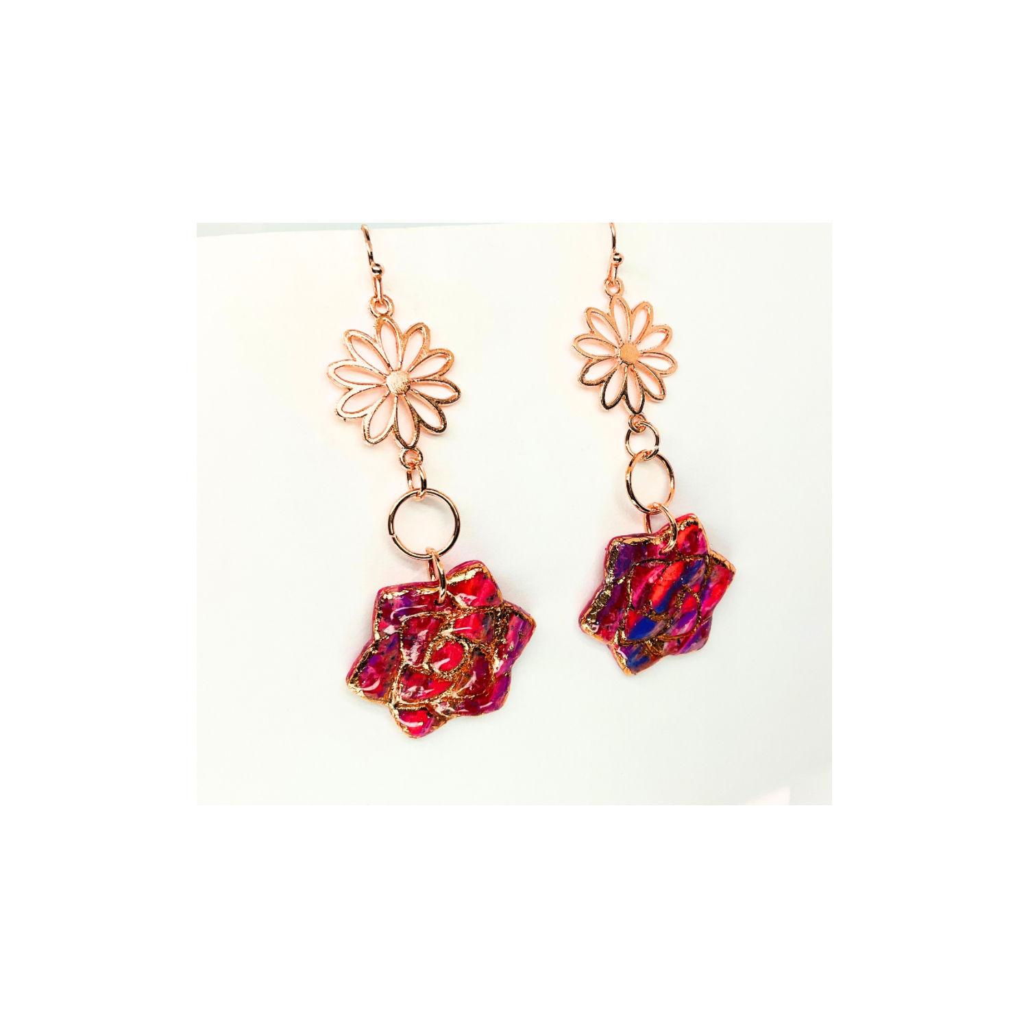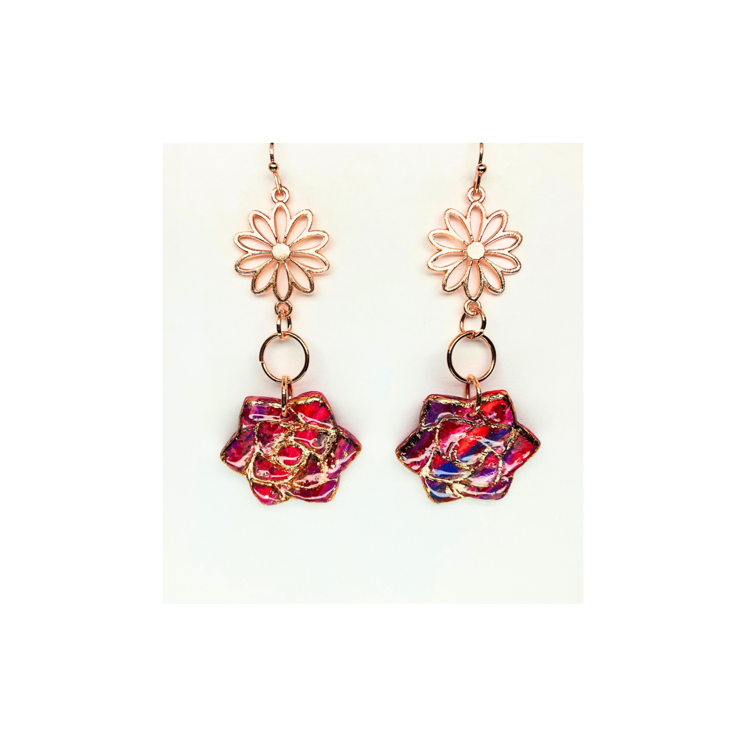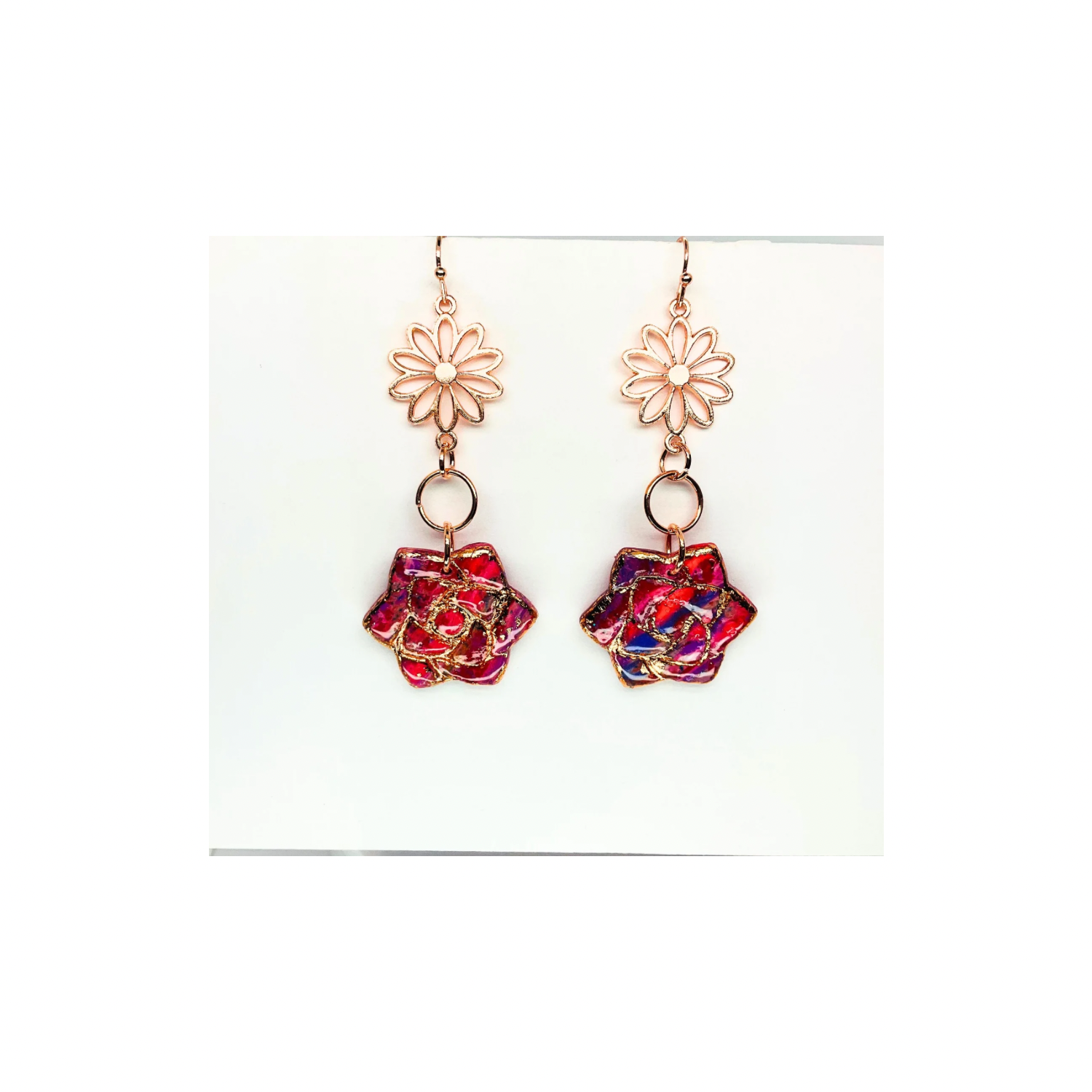 Rose Gold Collection Rose Shape Dangle Earrings with Colorful Floral Design and Elegant Daisy Top
