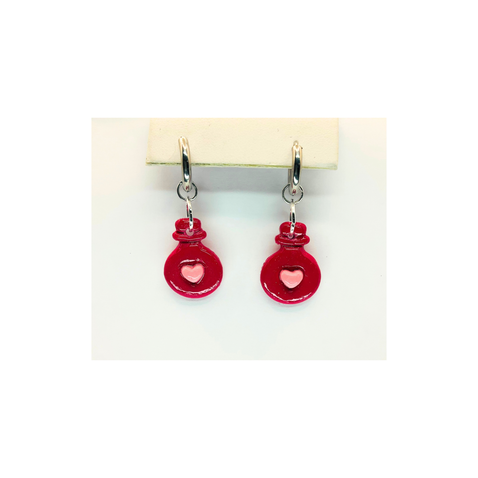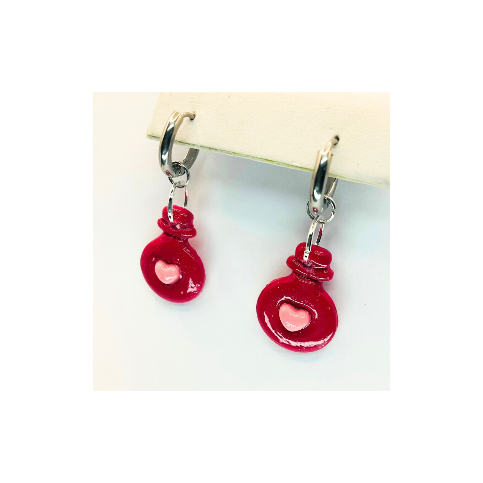 Small Red Globe with Light Pink Heart on Silver Hoop Dangle Jewelry for Casual or Gift Giving