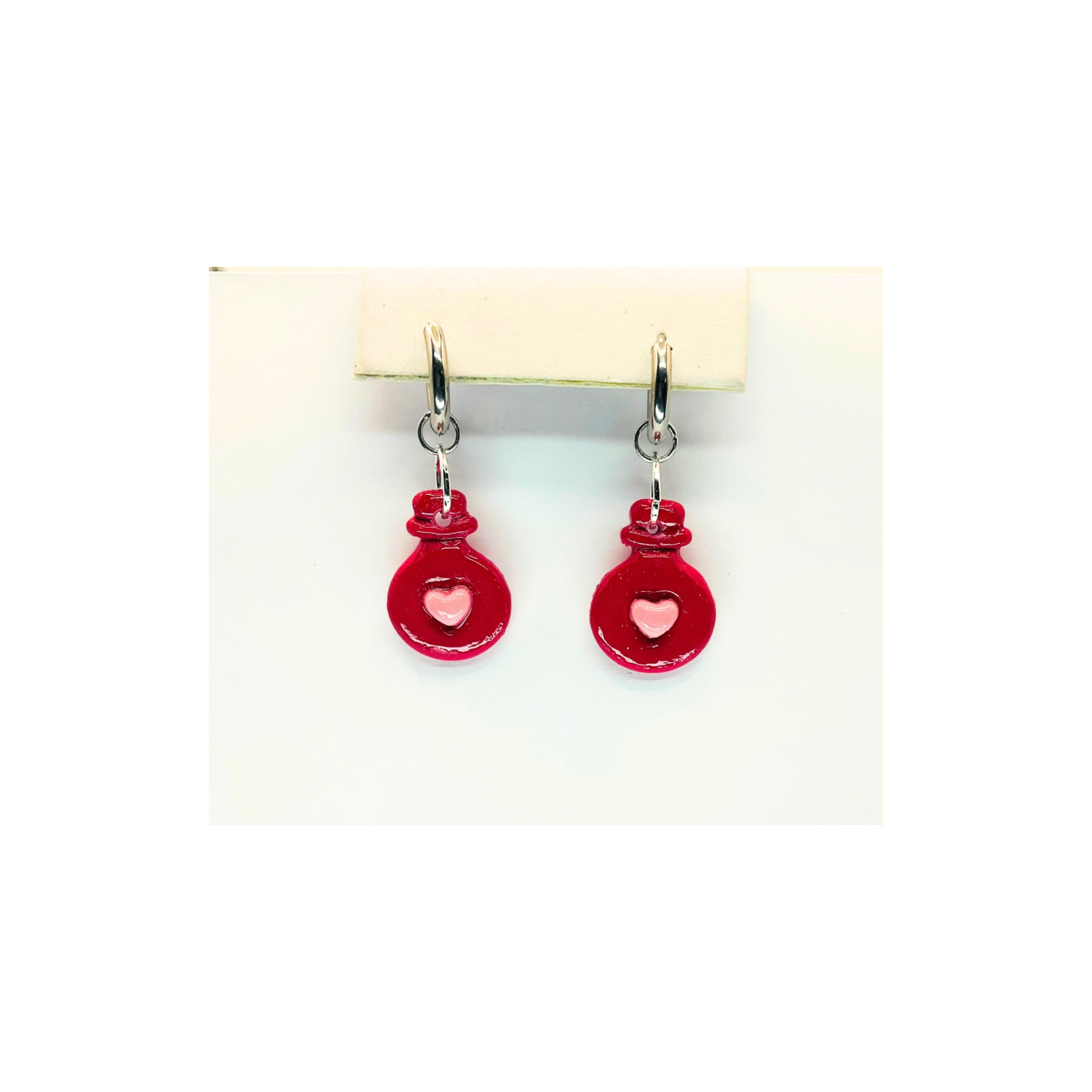 Small Red Globe with Light Pink Heart on Silver Hoop Dangle