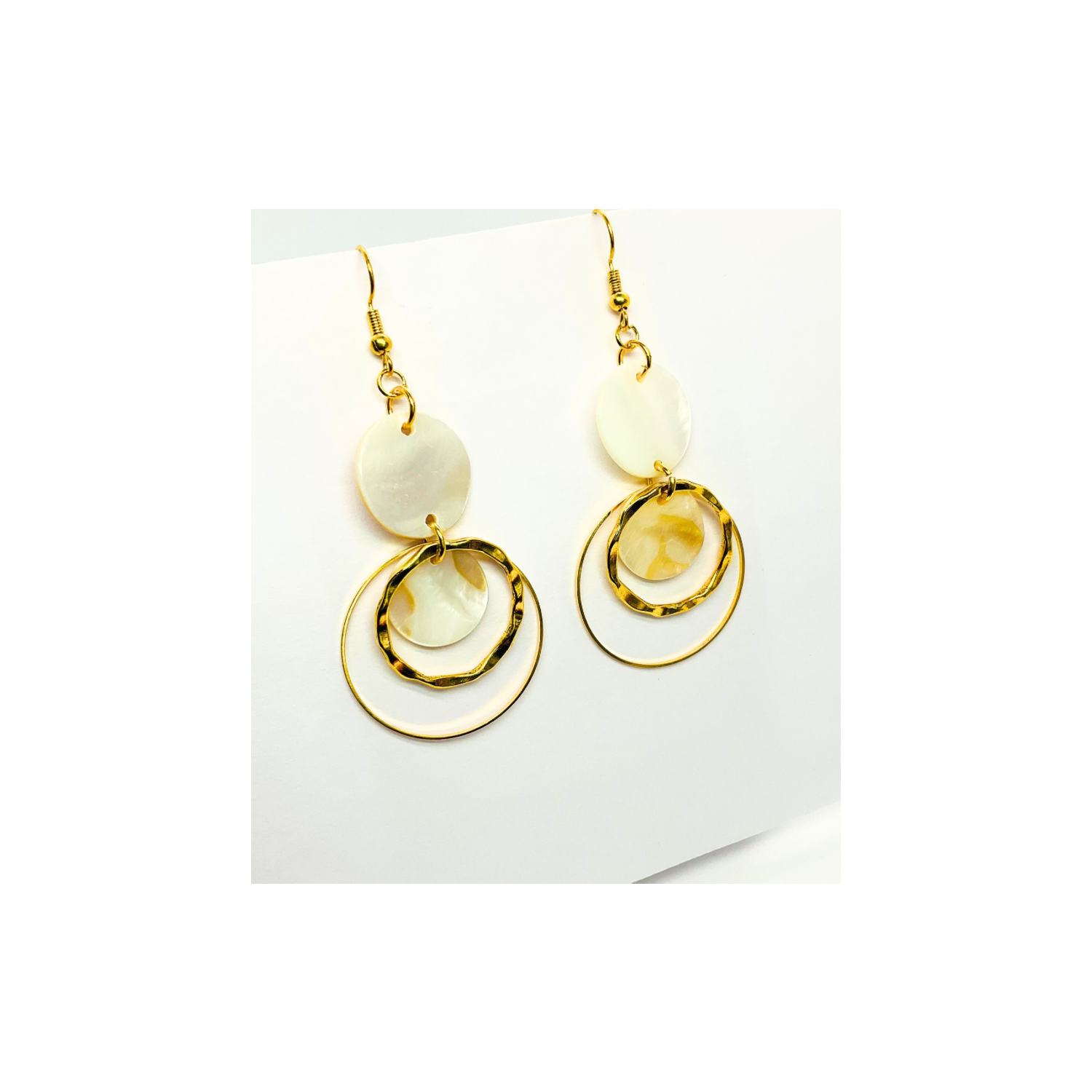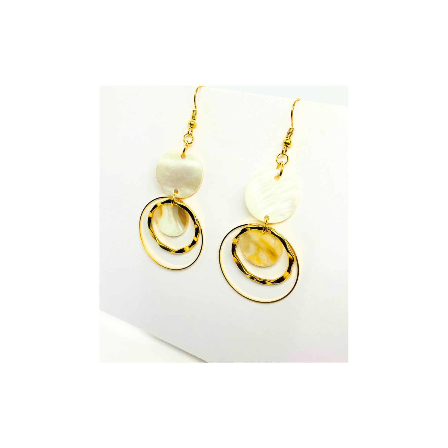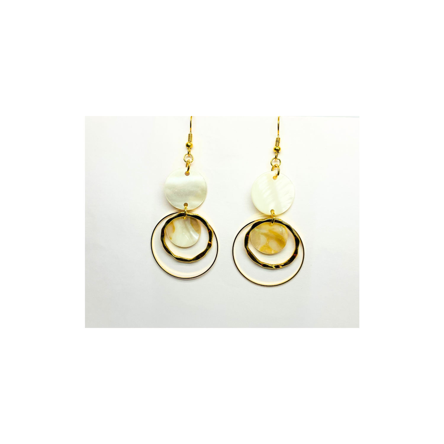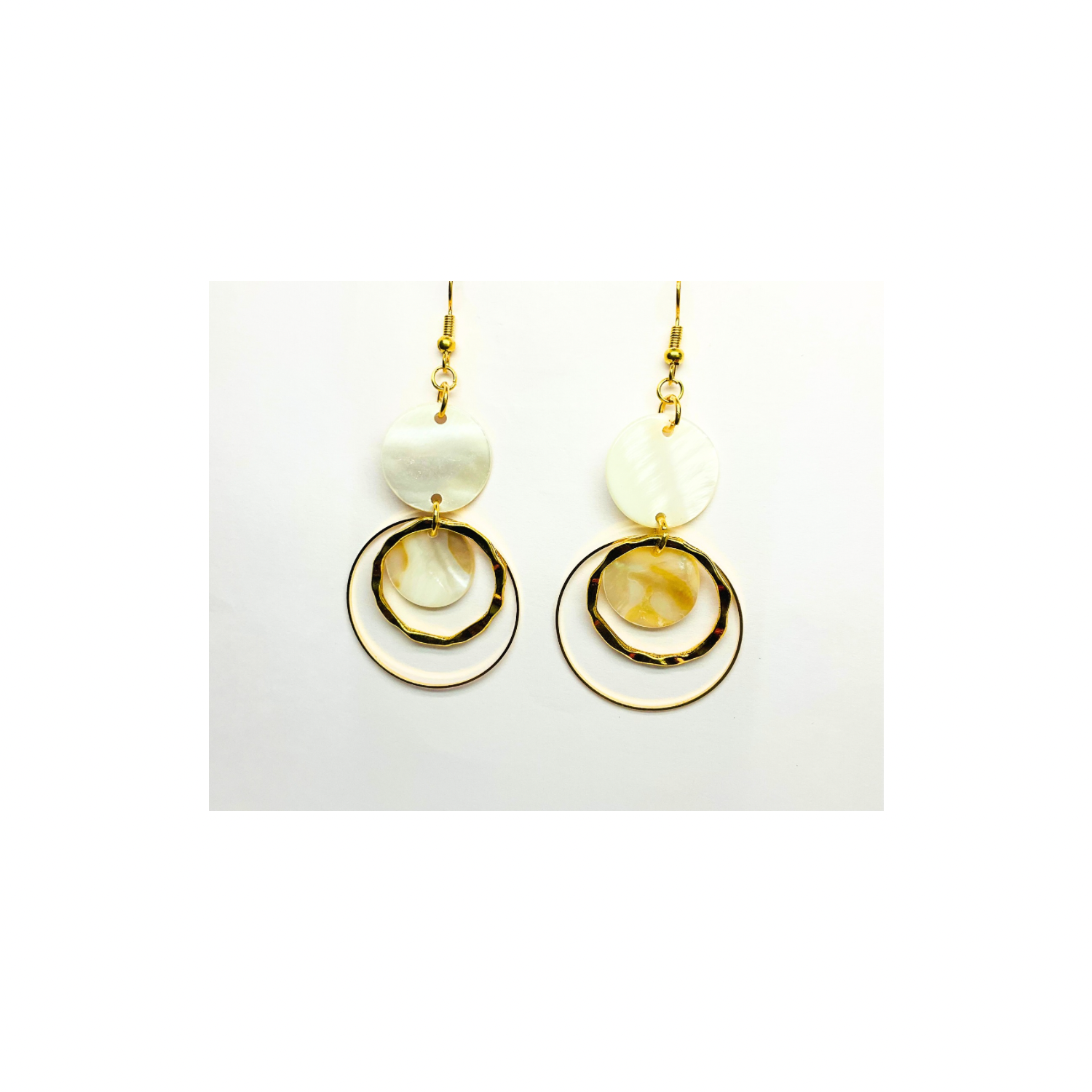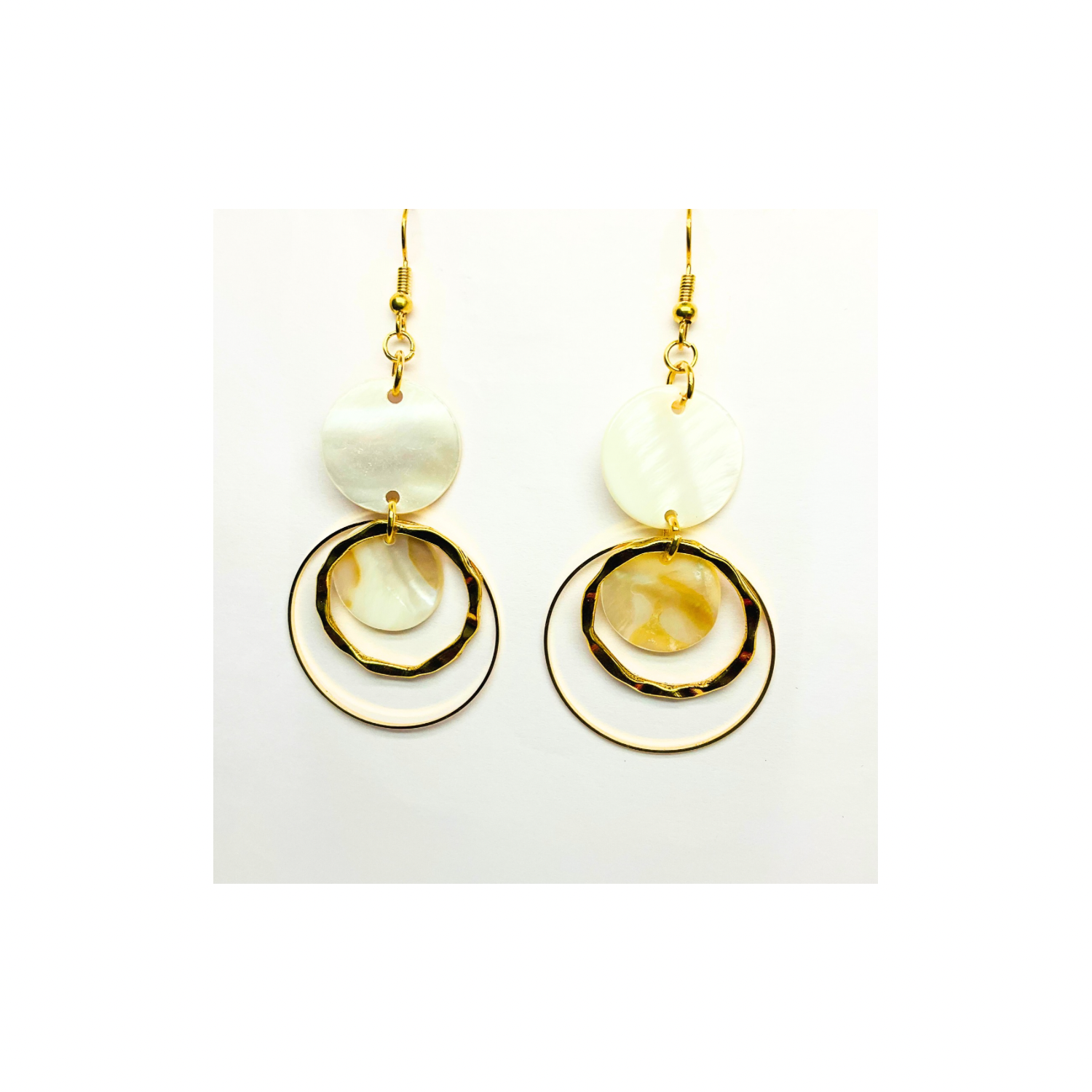 Spot Cream and Gold Collection Circle Dangle Earrings with Unique Design Elements