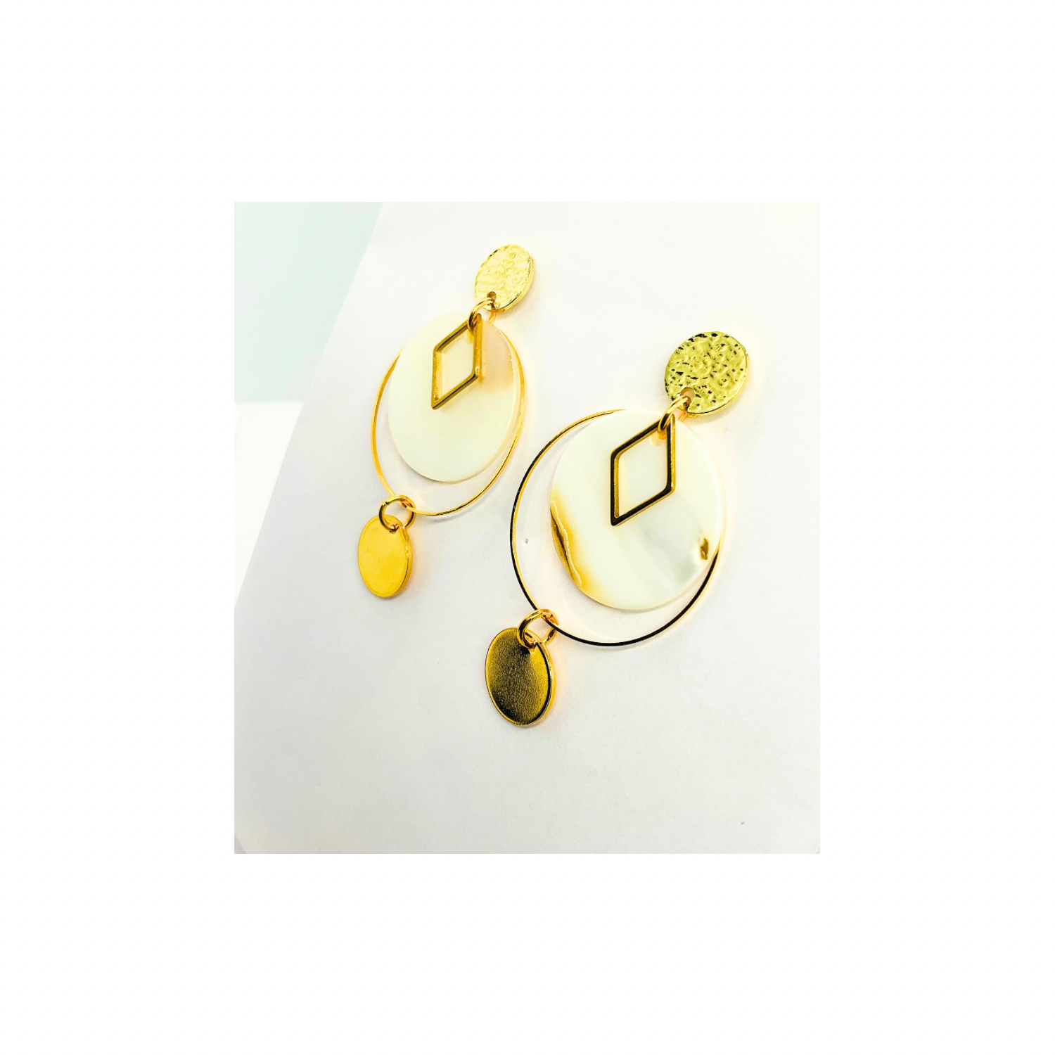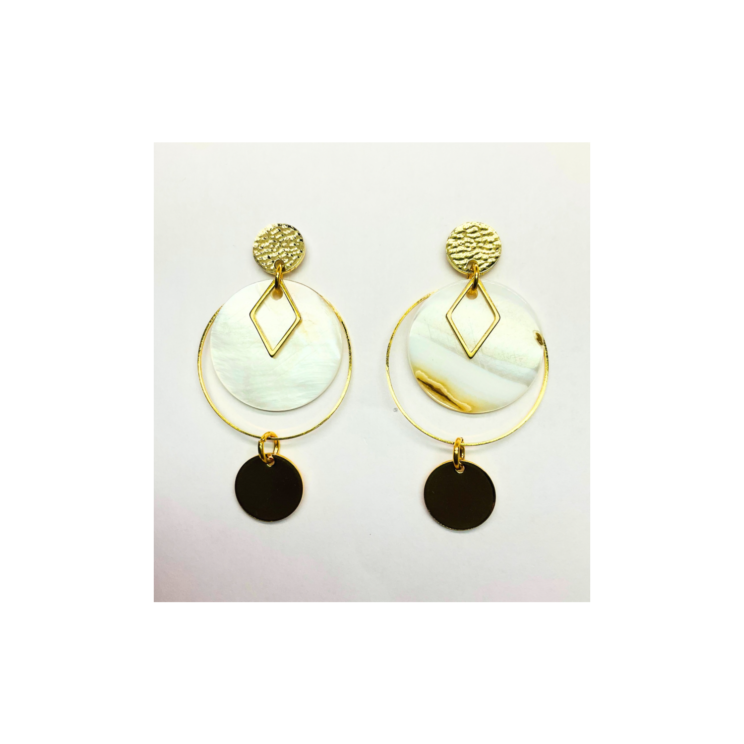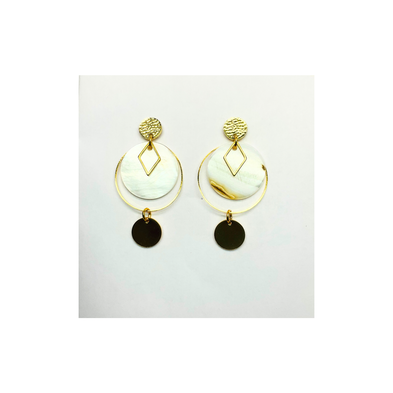 Spot Cream and Gold Collection Dangle Earrings for Female with Geometric Design and Circular Elements