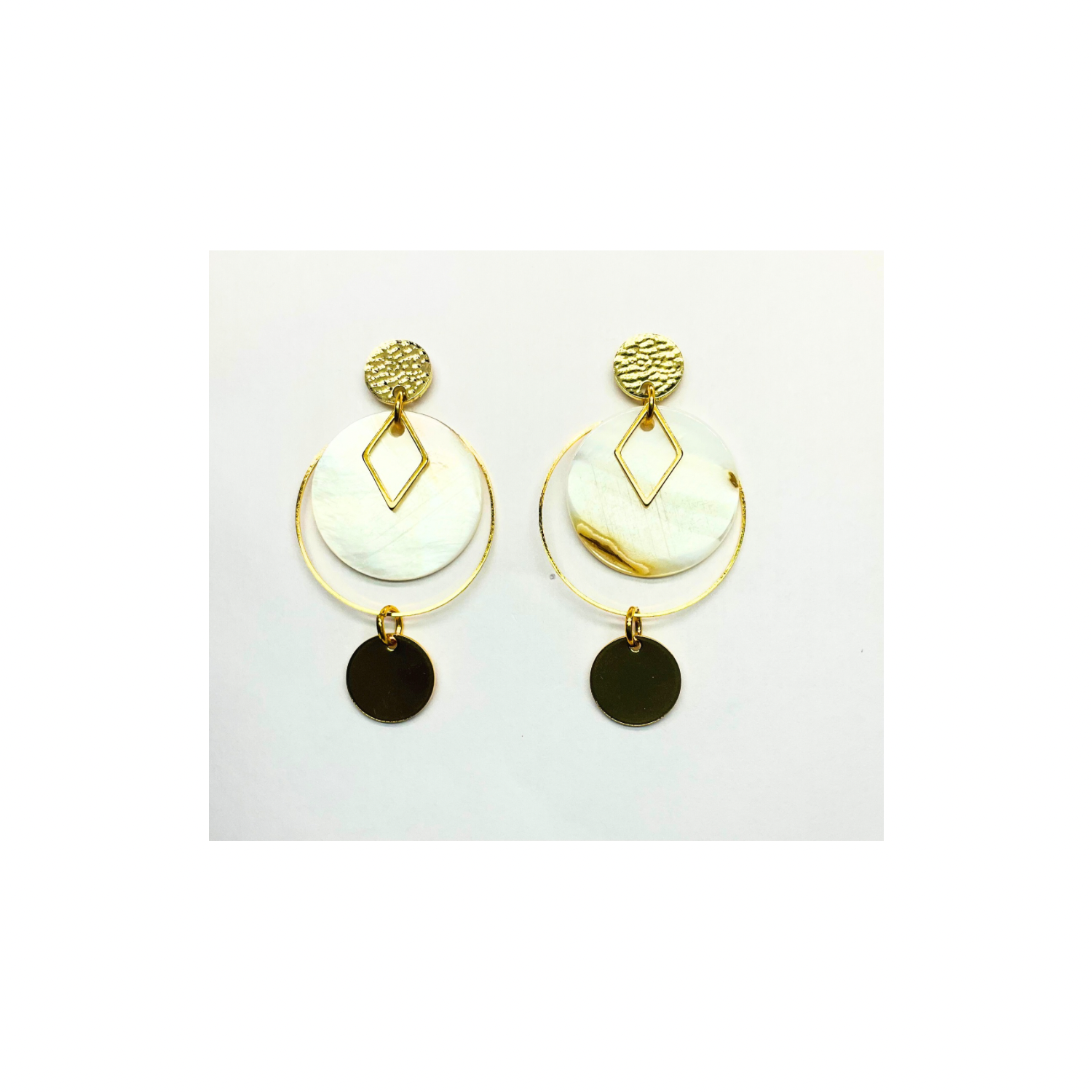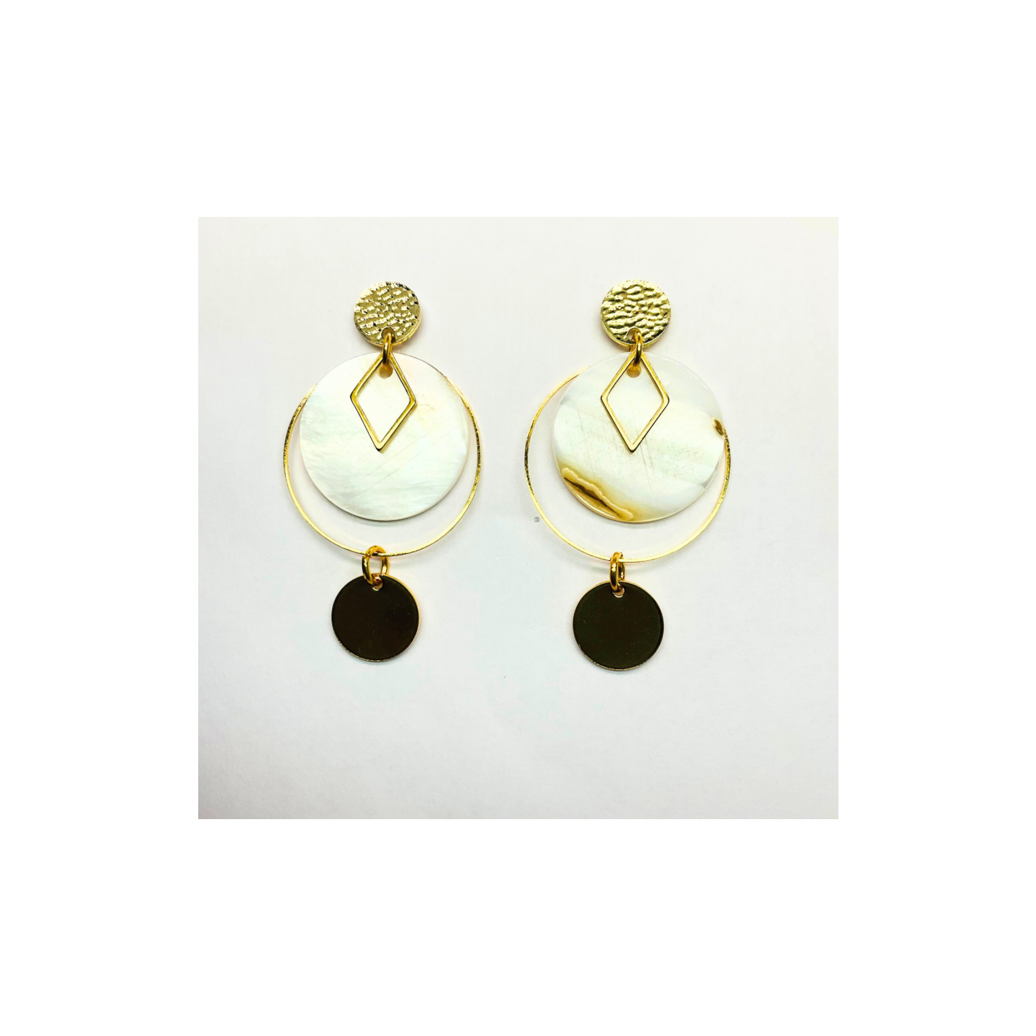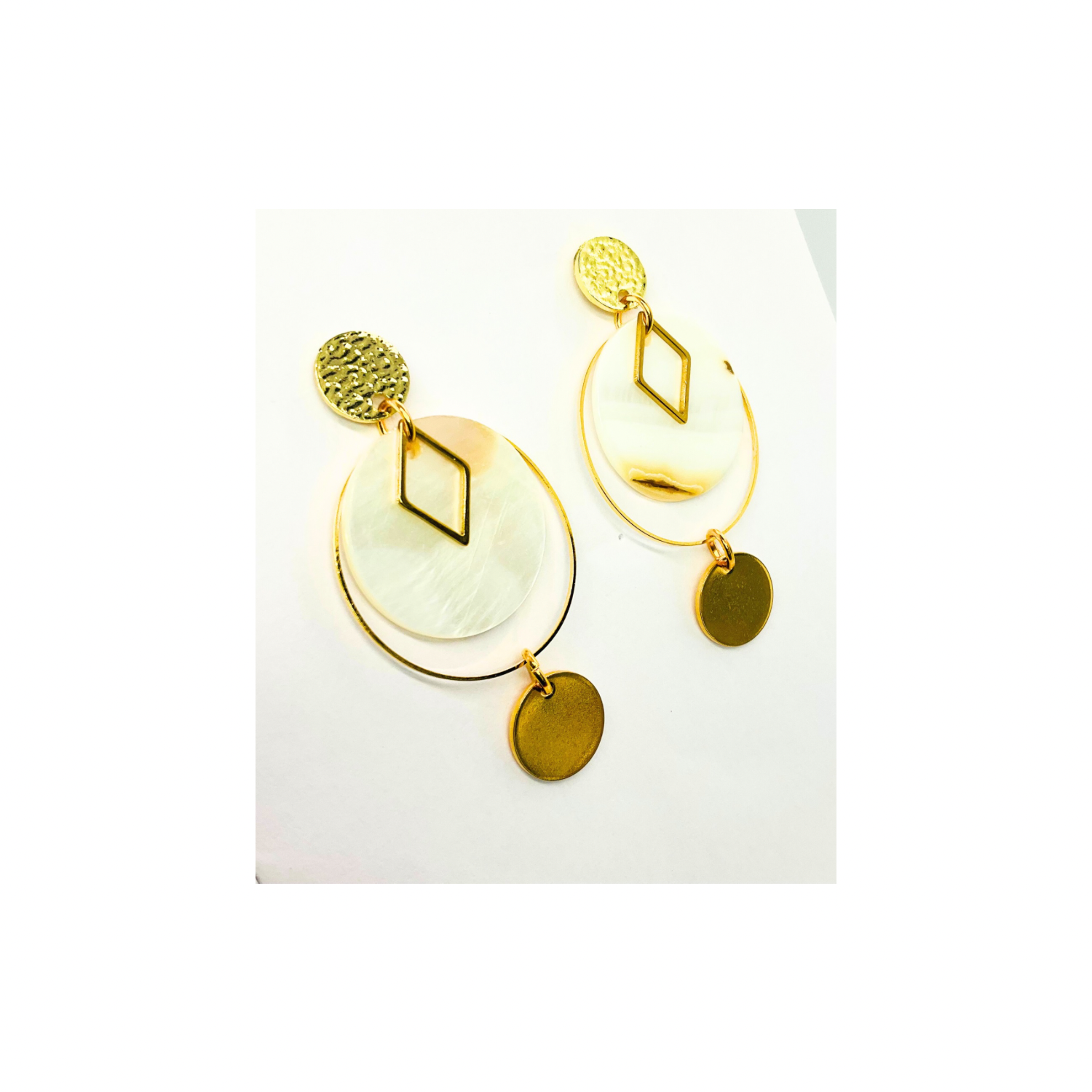 Spot Cream and Gold Collection Dangle Earrings for Female with Geometric Design and Circular Elements