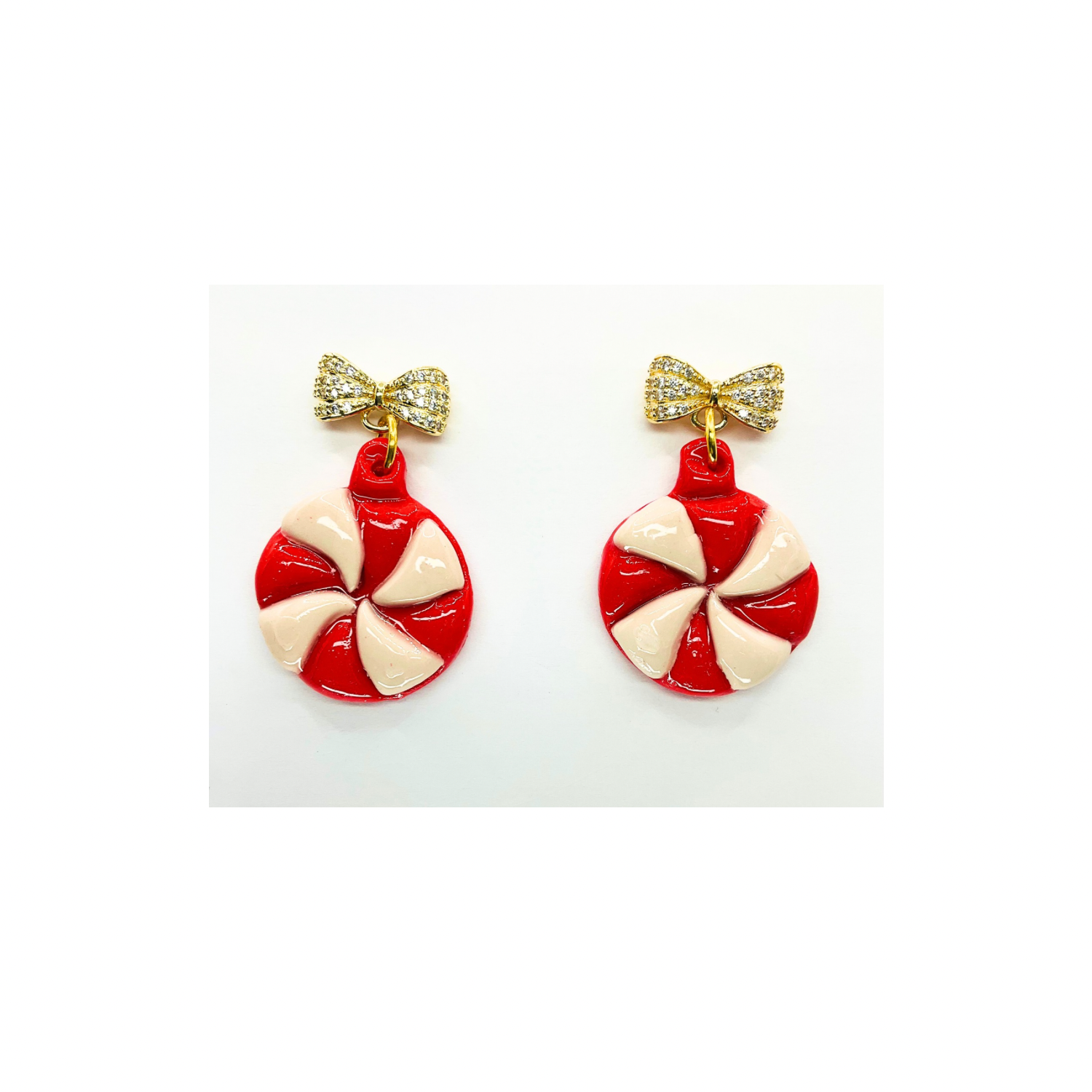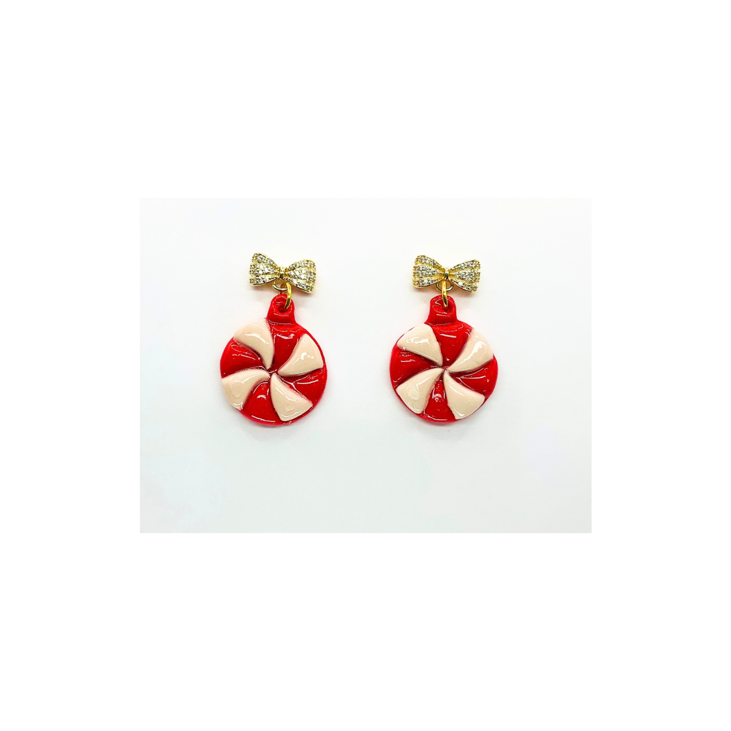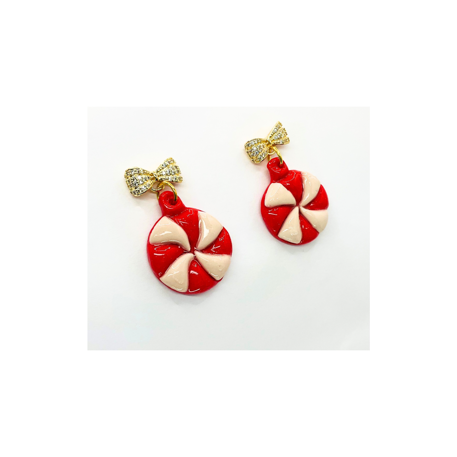 These earrings showcase a red-and-white candy design, ideal for adding a festive touch to any outfit. The unique design makes them a standout accessory. πŸŽ€