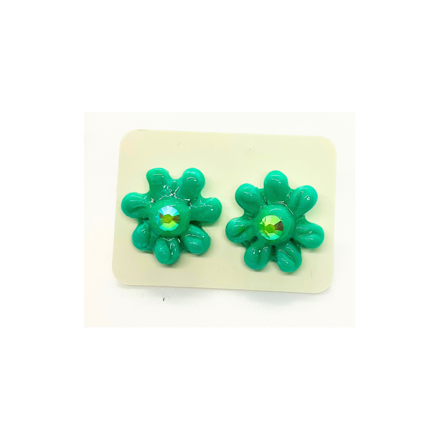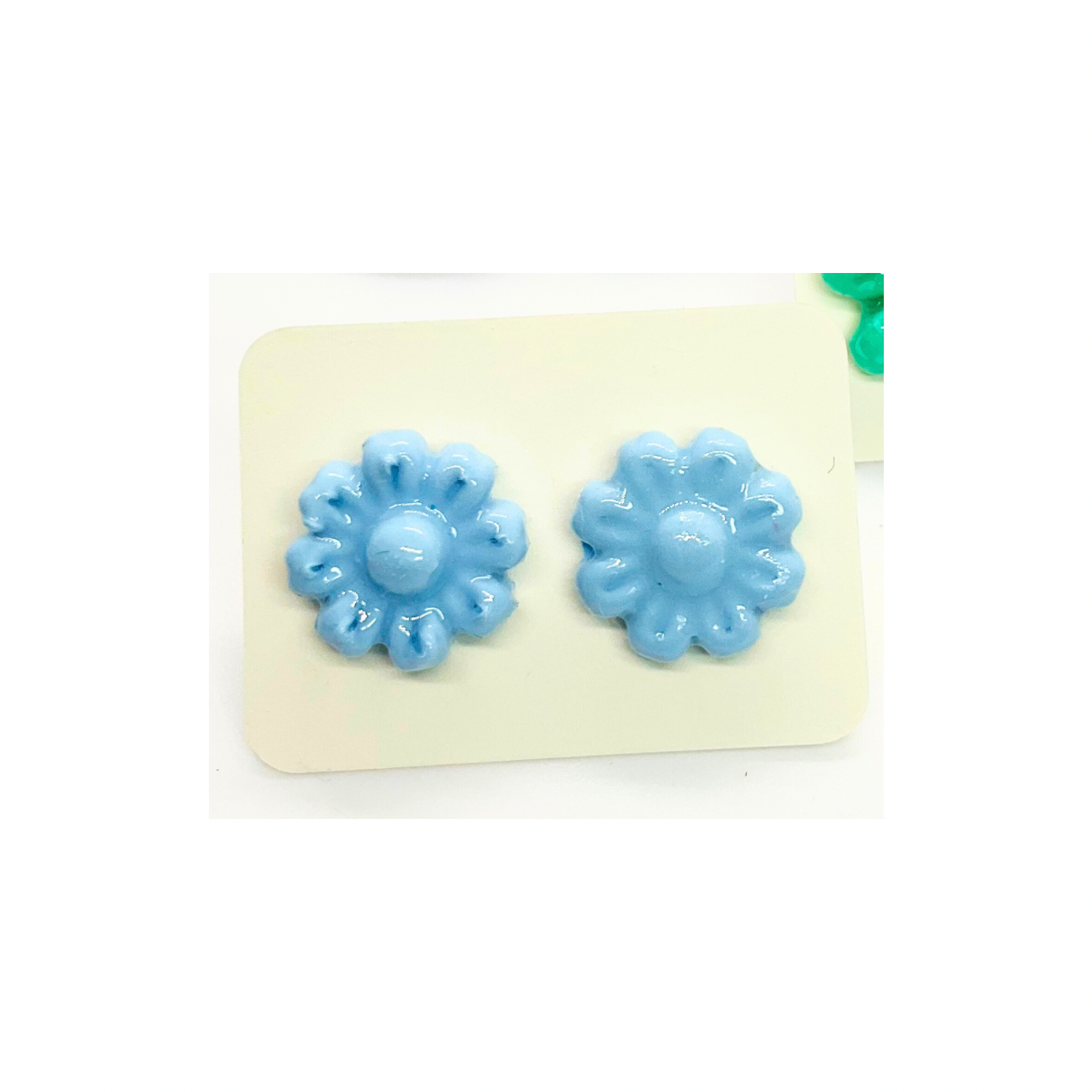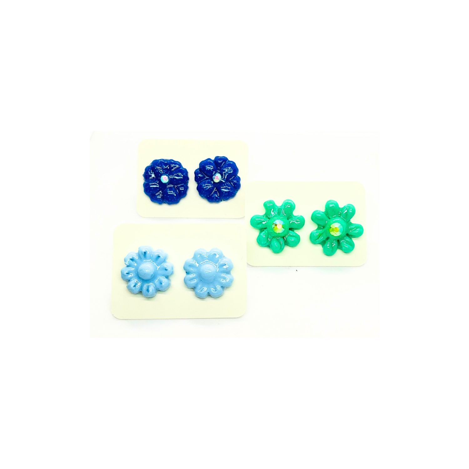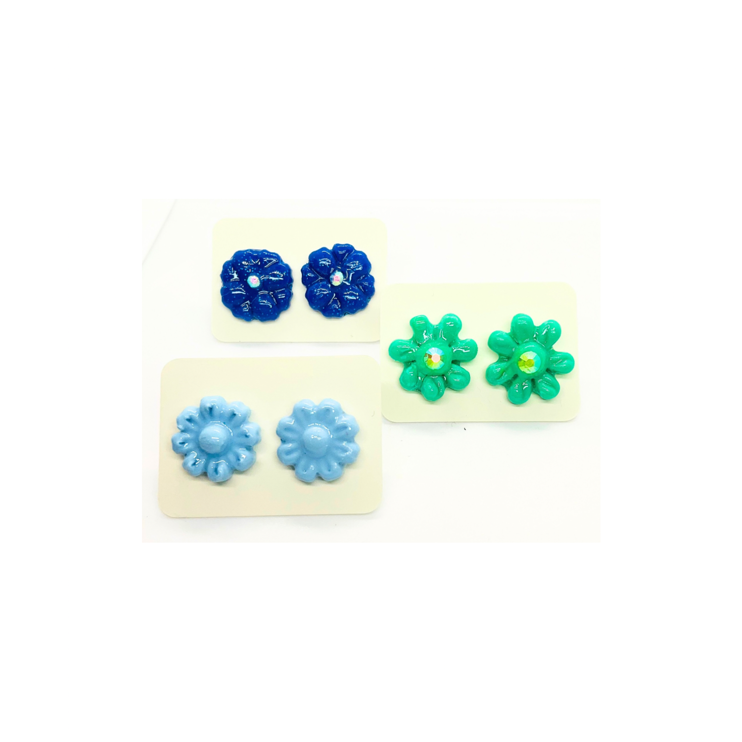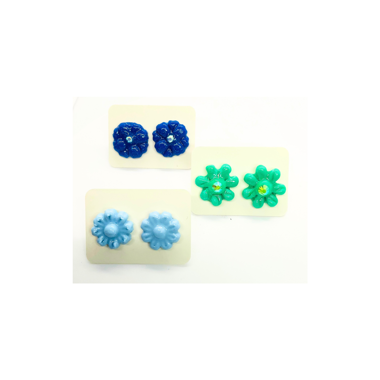 🌸 Stud Flower Earrings in Blue, Green and Navy Blue