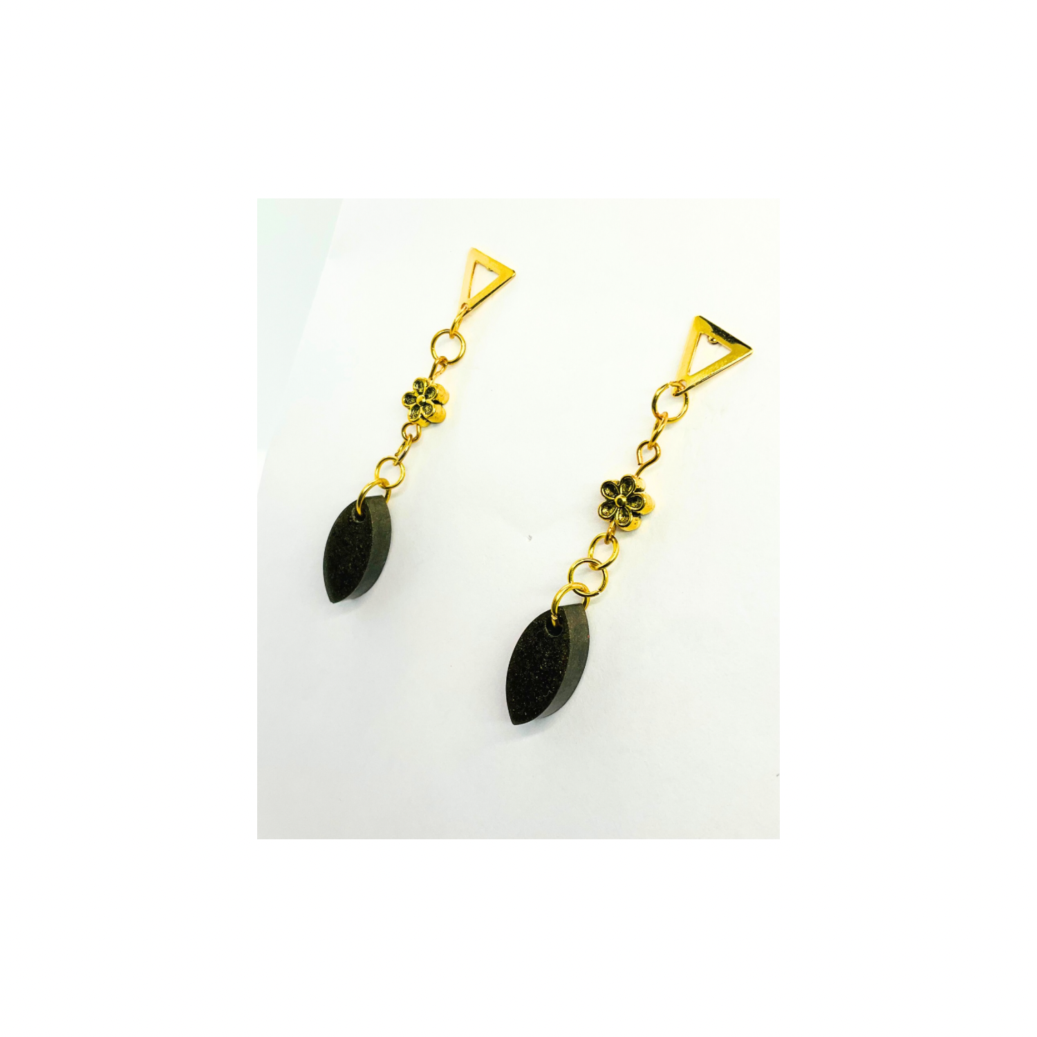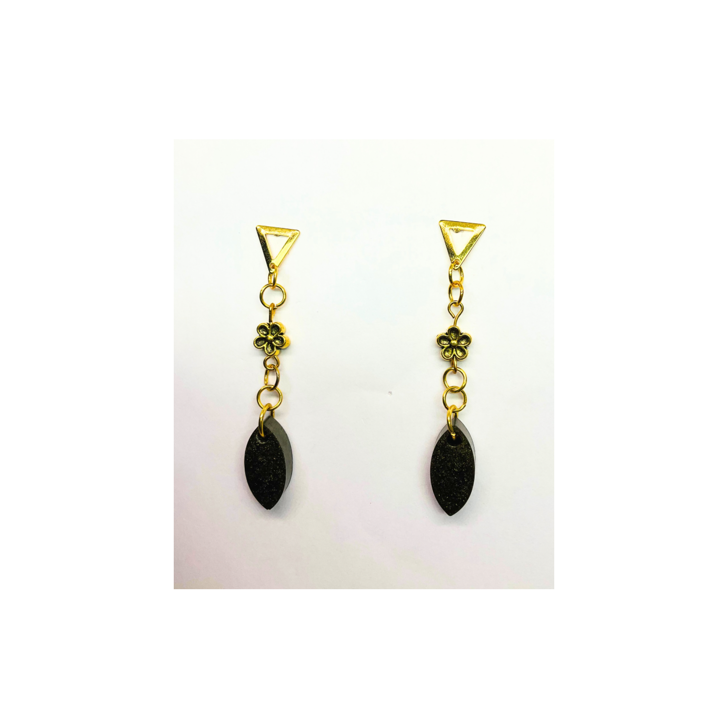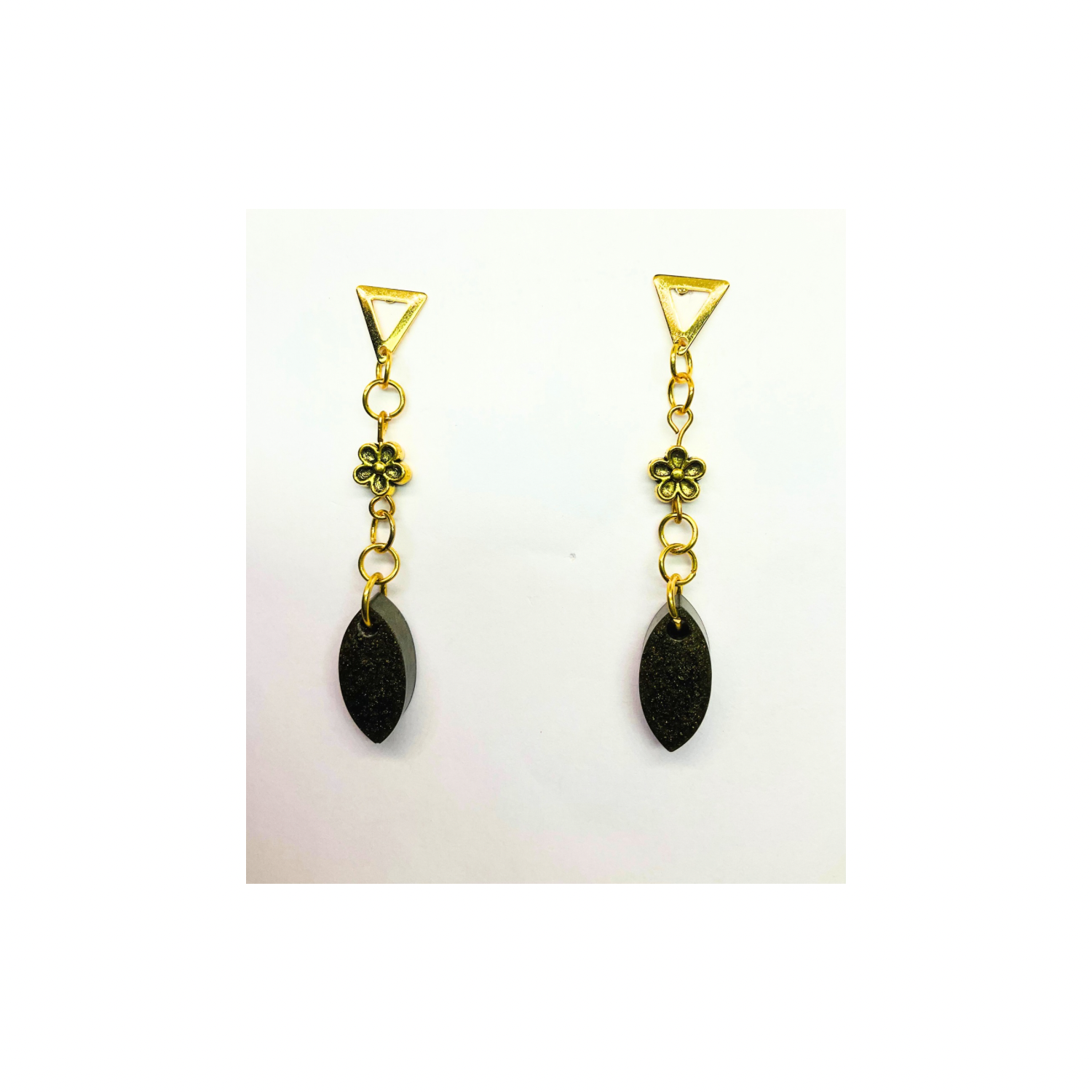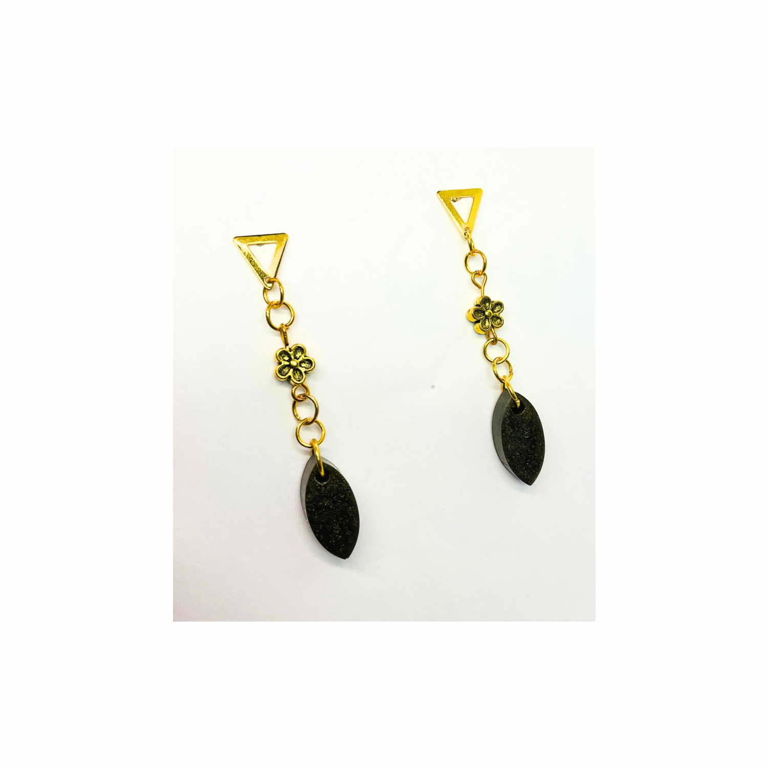 โจ Elegant Design: Copper-colored resin teardrops with gold flowers and gold triangle earstuds create a stunning look. The dangle measures 2 inches, adding a touch of elegance to any outfit. Each piece is handmade, ensuring uniqueness.