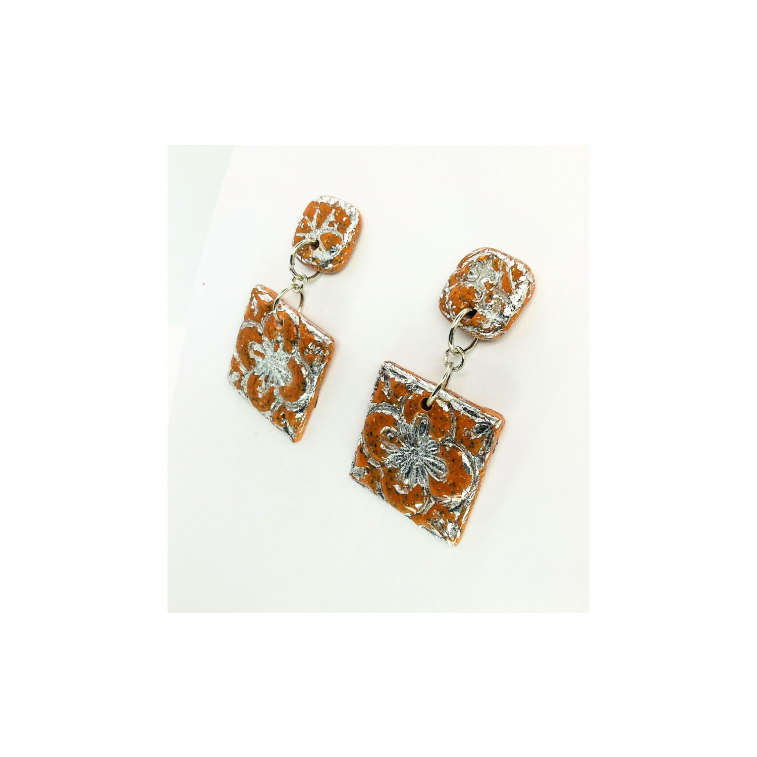 - Terracotta Tile Stud Square with Silver Accents: These earrings feature a unique design that combines terracotta and silver elements. Perfect for those who love a touch of nature's charm with modern elegance.
