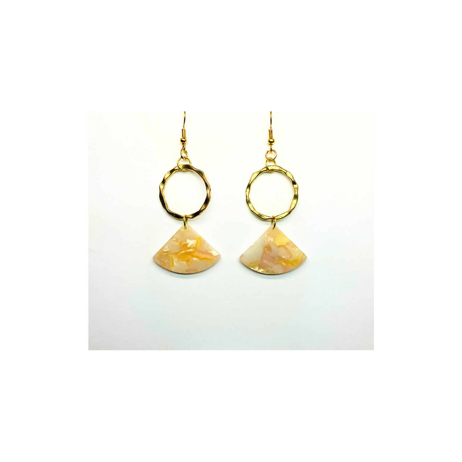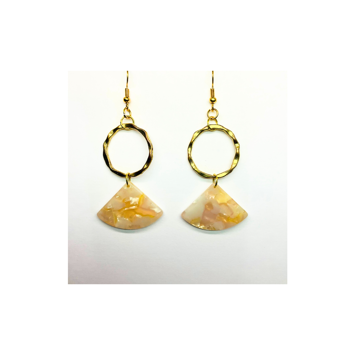 🐢 Tortoise Collection Cream Fan Style with Gold Circle Earrings