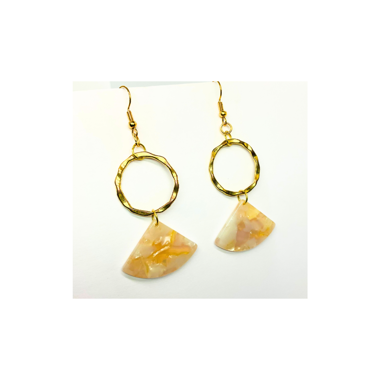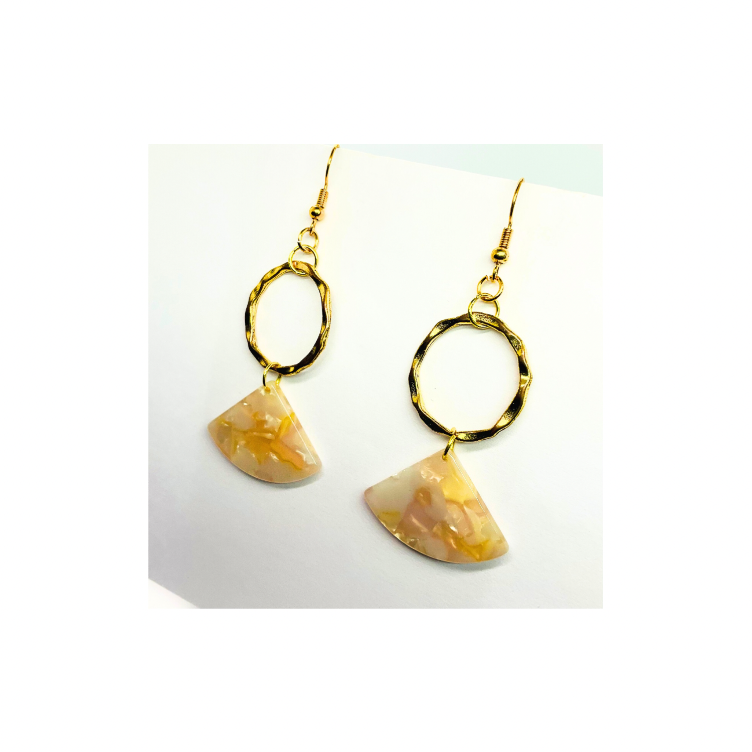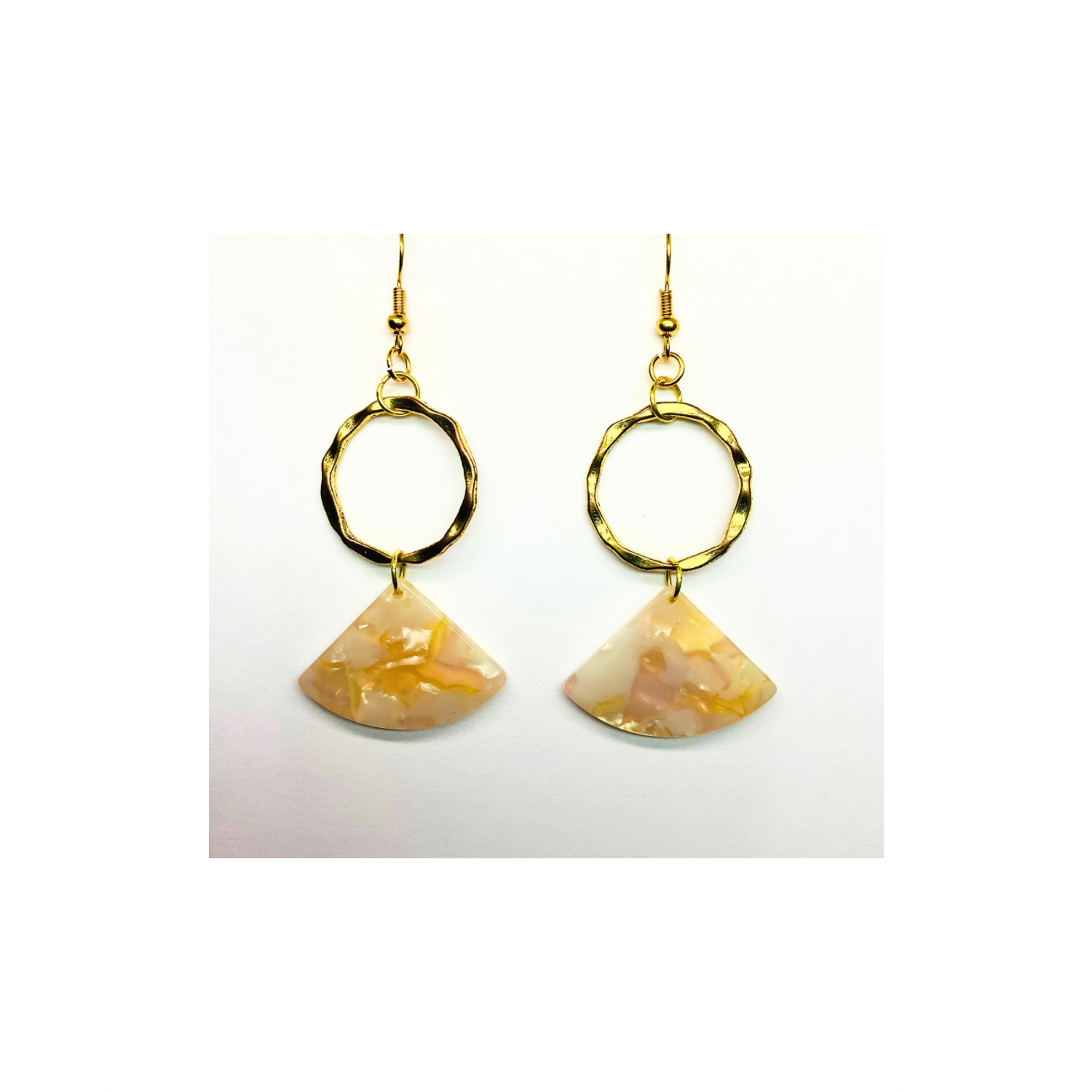 Tortoise Collection Cream Fan Style with Gold Circle Earrings - Unique Design Jewelry Accessory