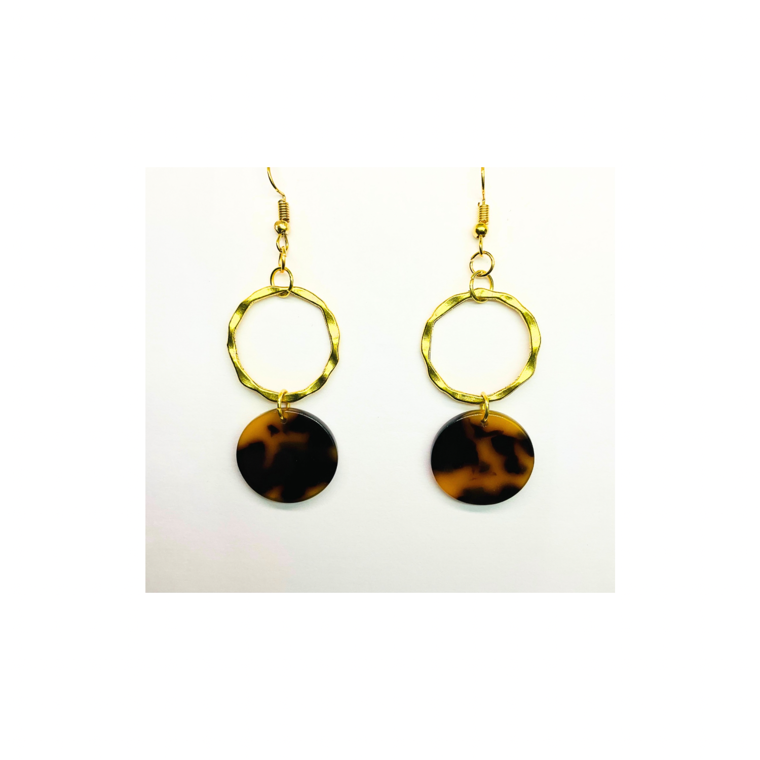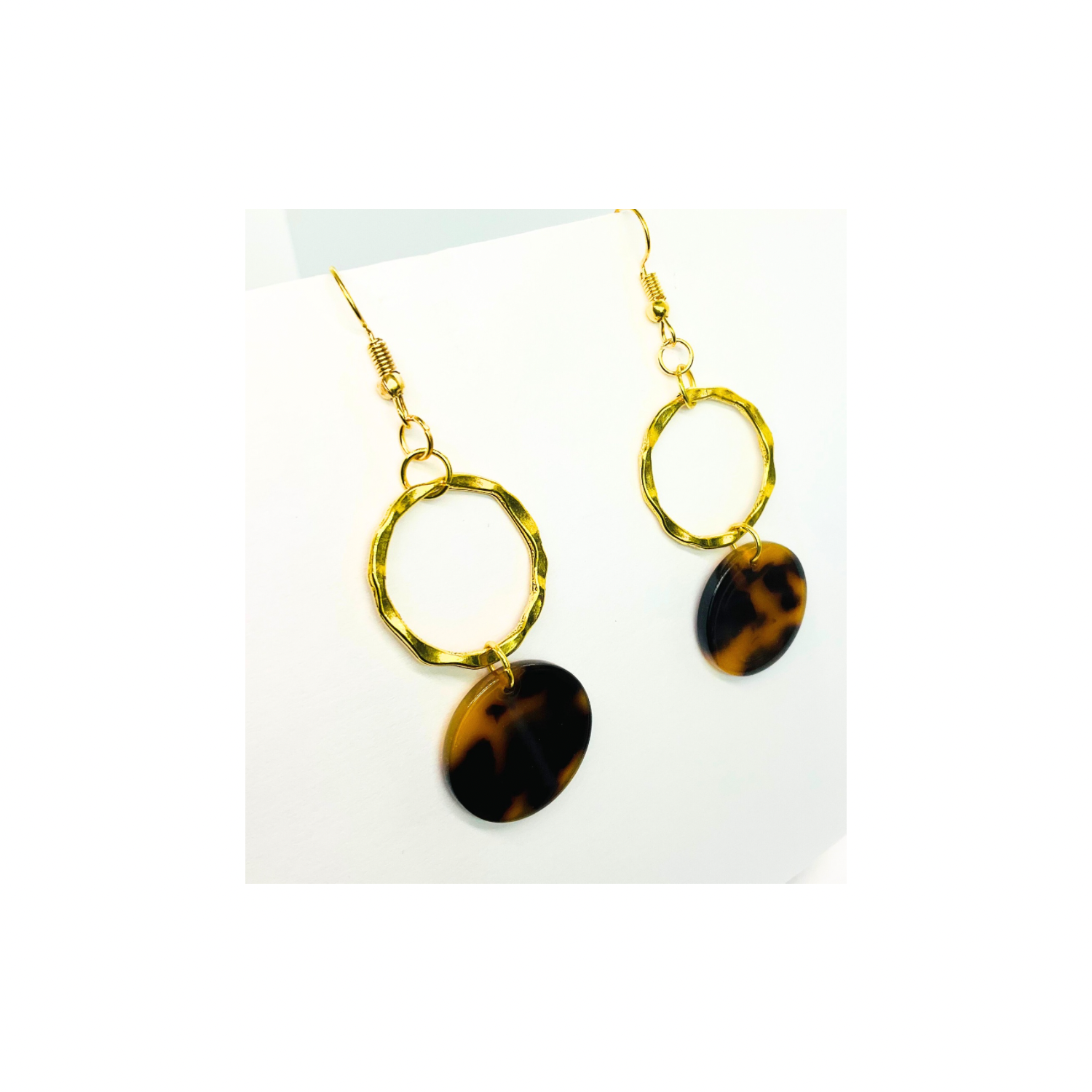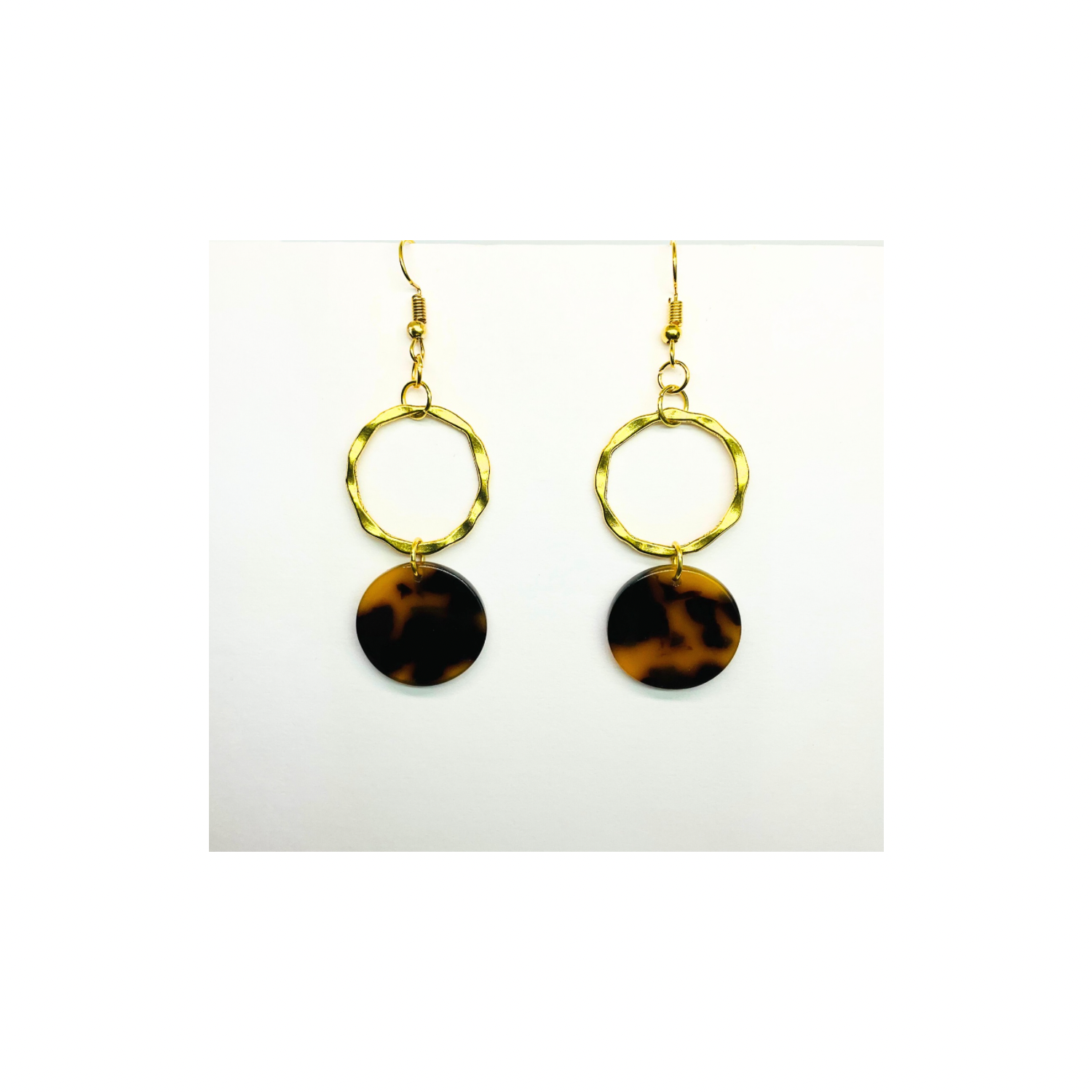 Tortoise Collection Dark Brown Button Dangle Earring - Elegant Gold Hoop & Leopard Disc Design for Women