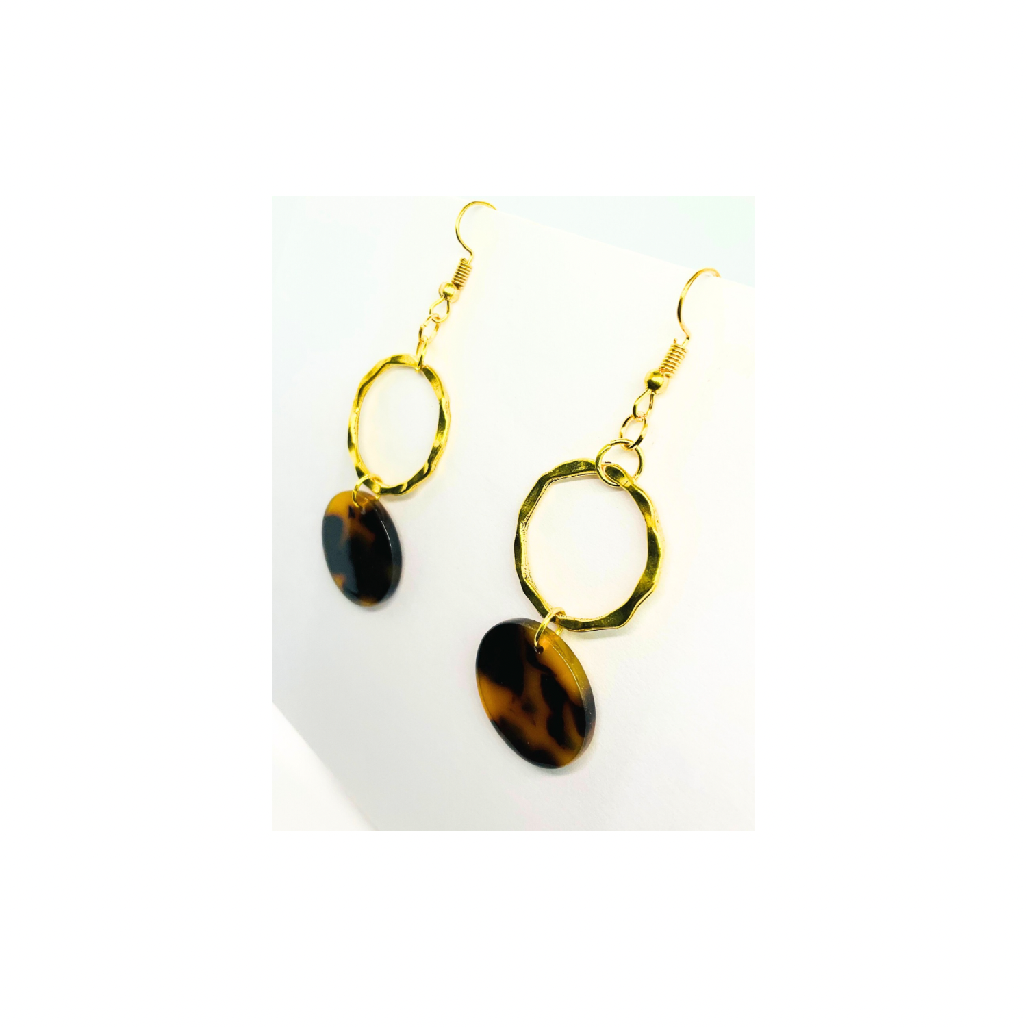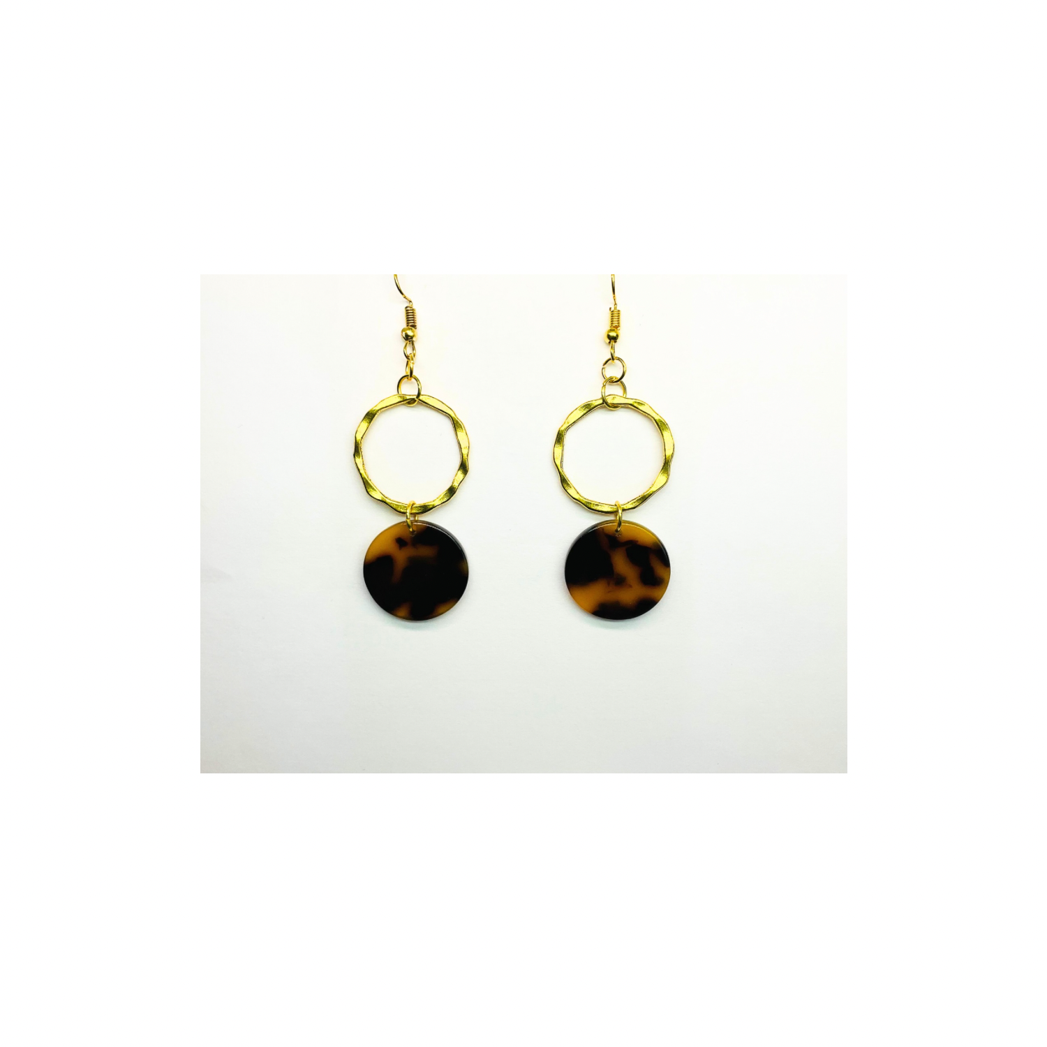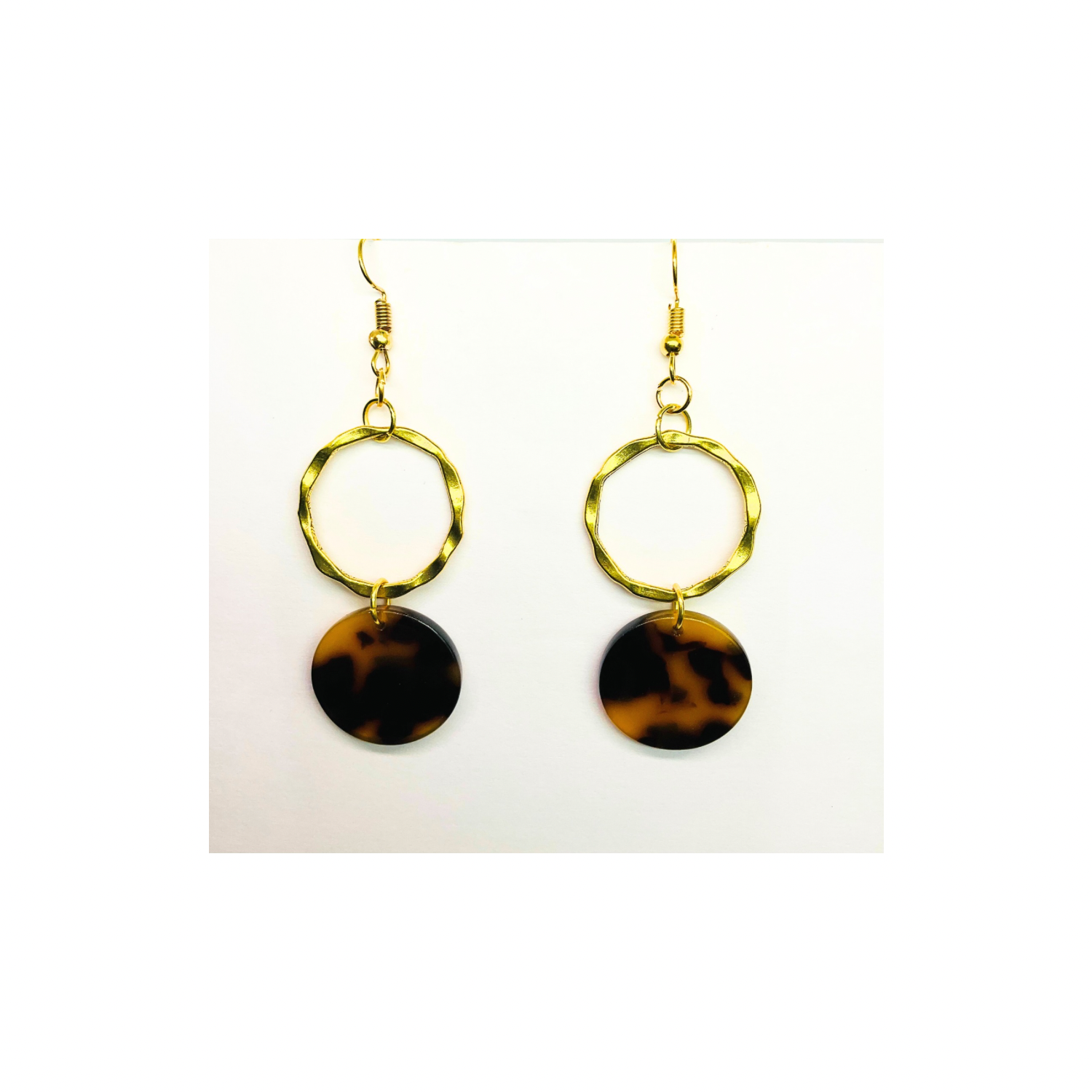 Tortoise Collection Dark Brown Button Dangle Earring - Elegant Gold Hoop & Leopard Disc Design for Women